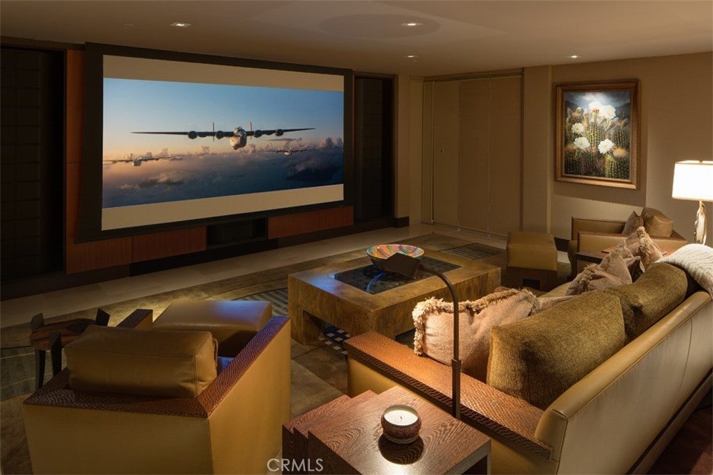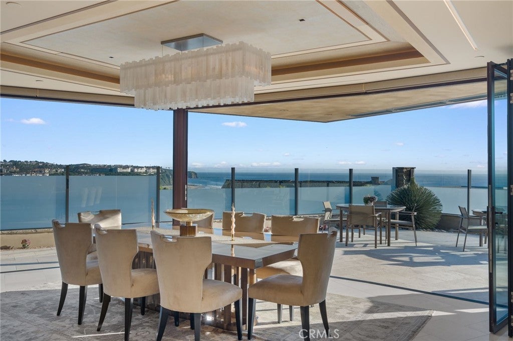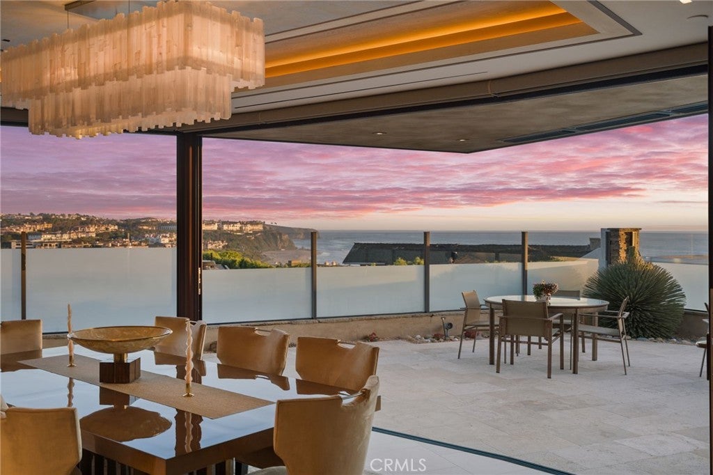 Situated within the prestigious guard-gated enclave of Monarch Bay, 20 Monarch Bay presents an extraordinary coastal retreat showcasing sweeping panoramic views of whitewater ocean, sandy beaches, Dana Point Headlands, the Ritz-Carlton, Monarch Links Golf Course, breathtaking sunsets & sparkling city lights. Completed in 2015 with exceptional craftsmanship, this meticulously designed residence embodies refined coastal luxury with an organic, sophisticated aesthetic. Smooth limestone plaster walls, elegant Crème Marfil marble flooring & curated finishes create a timeless interior, while expansive Nano bifold doors in the living & dining areas open seamlessly to the outdoors, framing spectacular ocean vistas. Custom trey ceilings & a dramatic dual-sided copper & glass fireplace add striking architectural detail. The gourmet chef’s kitchen is both functional & artfully designed, featuring a quartz crystal island with bar seating, sleek Arc Linea cabinetry, Silestone countertops & a full suite of Miele appliances. Designed for relaxation & entertaining, the home includes a soundproof, acoustically engineered theatre & family room with built-in audio, drop-down projection screen & wine storage. A comprehensive Crestron smart home system manages lighting, security, whole-house audio & theatre components, while automated shades, solar power, five HVAC zones & a tankless water heater ensure modern comfort & efficiency. The primary suite serves as a private ocean-view sanctuary with direct patio access, a custom walk-in closet & spa-inspired bath with heated floors & towel racks, oversized walk-in shower, soaking tub & skylight. Secondary bedroom suites feature designer finishes & outdoor access. Resort-inspired outdoor living spaces include multiple entertaining areas, a Wolf-equipped BBQ island, outdoor fireplace, spa with cascading fountains, retractable awnings, outdoor speakers & shower. A landscaped front courtyard with fountain & a finished two-car garage with lift for two additional cars complete this offering. Residents of Monarch Bay enjoy access to tennis & pickleball courts, a community & dog park, playground & the private beach club with indoor-outdoor bar, beachfront dining, firepits & towel, chair & umbrella service. Ideally located near hiking trails, world-class golf & surfing, and premier coastal resorts including The Ritz-Carlton, Waldorf Astoria & The Montage, this property will also benefit from the Dana Point Harbor revitalization project.