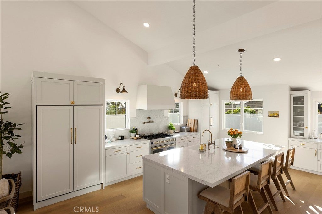 Recently remodeled with attention to detail, this well-appointed Coast District home is absolutely stunning. Upon arrival, the home sits elevated on a quiet side street with recently updated curb appeal. New exterior enhancements include exterior paint, landscaping, handrails, carriage garage door, and a Dutch entry door - all adding to the first impression. Inside, an updated floor plan with ascending ceilings draws you within. Structural walls and interior elevations were carefully modified to enhance the floor plan for modern-day living creating one massive great room - mostly on one convenient level. The formal living room, open kitchen, dining, and family rooms all flow seamlessly together, creating one amazing living space. Finished with a discerning eye for design, the kitchen features all-new cabinetry, Carrara marble counters with massive island, DeVOL brass fixtures, cabinet-faced Fisher & Paykel appliances and newly-added windows all adding to the stylish appeal. A bi-folding window opens to exterior bar seating while a large bi-folding window wall brings the outside inside the fire-warmed family room. A generous grassy yard, large patio with a recently added pergola and elevated ocean-view lounging deck all create amazing outdoor entertaining zones. A wellness garden with a tranquil water feature and Coco wood-fire spa offers a peaceful area to unwind. The outdoor spaces offer a rare sense of privacy from neighboring properties. A sizable bedroom with finished closet, full bathroom, and dedicated laundry room with direct access to the 2-car garage complete the lower level. Upstairs, two well-appointed guest bedrooms share a generous, newly-updated full bathroom. The ocean-view primary suite is simply amazing, with high ceilings, a massive en-suite bathroom and an equipped walk-in closet. Reclaimed wooden doors lead to the tasteful Japanese-inspired wet room, offering a soaking tub, walk-in shower, dual sinks, marble counters, brass fixtures, and privacy toilet. Other values include full PEX re-pipe, new engineered oak wood flooring, solid-core doors, permitted kitchen & bath remodels, paid solar, dual-pane windows & high-end treatments, updated landscaping, new fire sprinkler heads, & EV charging. Reinvented with attention to every detail offering major indoor/outdoor space, ocean views, no power lines, nearby restaurants & shopping, world-class surfing, 2.5 mile beach trail, with close proximity to all San Clemente & Dana Point have to offer.