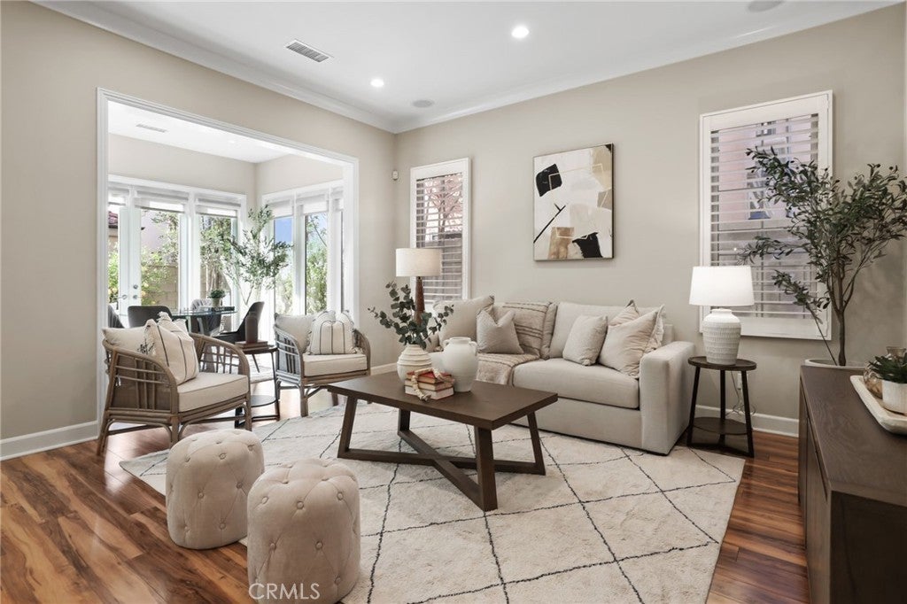 Southern California living at its finest! Welcome to this spectacular Mulberry Plan 1 home in the highly desirable Cypress Village community of Irvine. This thoughtfully designed open floor plan has been beautifully upgraded and features a rare main-floor private Casita with full bedroom and bathroom, ideal for guests, extended family, or a home office. The gourmet kitchen showcases stainless steel appliances, quartz countertops, a large center island, walk-in pantry, and stunning floor-to-ceiling white cabinetry. The kitchen flows seamlessly into the dramatic 10-foot ceiling Great Room and dining area, creating a bright and inviting central gathering space. An added conservatory room expands the living area and brings in abundant natural light. Upstairs, the spacious primary suite offers a luxurious bathroom with dual vanities, soaking tub, separate shower, and a generous walk-in closet. The large upstairs laundry room adds everyday convenience. Additional highlights include beautiful wood flooring, plantation shutters, custom roller shades, crown molding, surround sound system, whole-house water softener, and reverse osmosis drinking water system. The professionally landscaped backyard is an entertainer’s dream, featuring a soothing waterfall, fire pit, and mature fruit trees, providing the perfect space for relaxation and outdoor gatherings. The property also offers a two-car garage plus a private driveway with two additional parking spaces. Smart home features include a smart garage door opener with HD camera and myQ app integration, along with Google Nest outdoor cameras. Enjoy the resort-style amenities of Cypress Village, including pools, spas, parks, sports courts, and access to top-ranked Irvine schools, all within walking distance to the scenic Jeffrey Open Space Trail. A beautiful home in a prime location, this one won’t last!