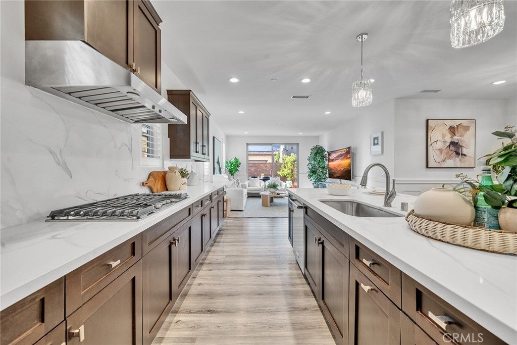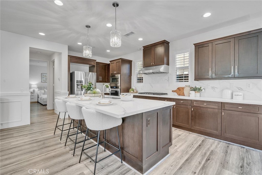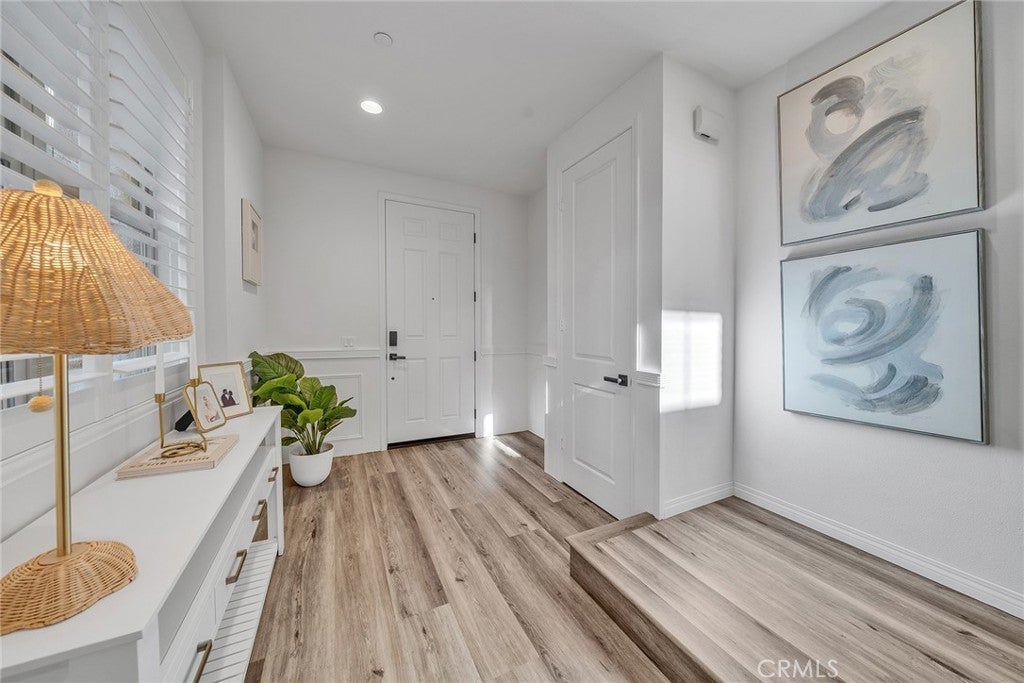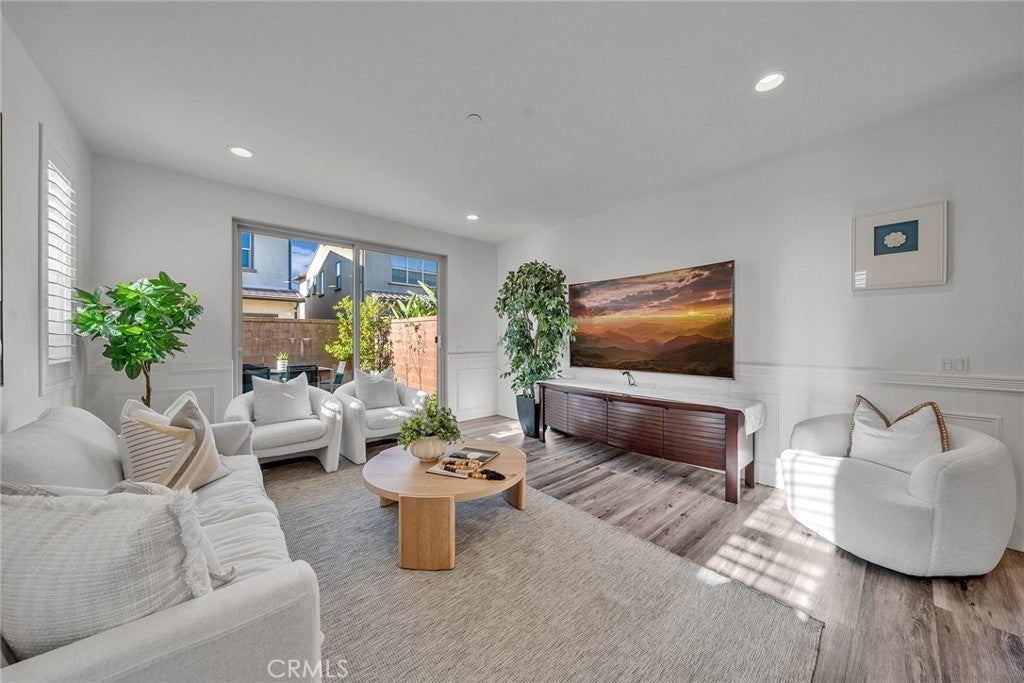 Beautiful detached home with a full-size driveway in the highly desirable Portola Springs community of Irvine. The bright and inviting interior features brand-new vinyl flooring in the main living areas and upgraded wainscoting on the first floor, adding both style and durability. The functional floor plan offers 1 bedroom downstairs and 3 bedrooms upstairs. The spacious primary suite includes a large bathroom and walk-in closet, while one secondary bedroom features a private balcony. Bedrooms are finished with plush carpeting for comfort. The backyard is thoughtfully landscaped with newly installed pavers, creating a low-maintenance patio ideal for outdoor dining and entertaining. Mature fruit trees and flowering plants add natural beauty and a peaceful garden setting. Conveniently located near parks and scenic walking trails, and served by top-rated Irvine schools including Loma Ridge Elementary, Jeffrey Trail Middle School, and Portola High School. An exceptional opportunity to own in one of Irvine’s most sought-after communities.