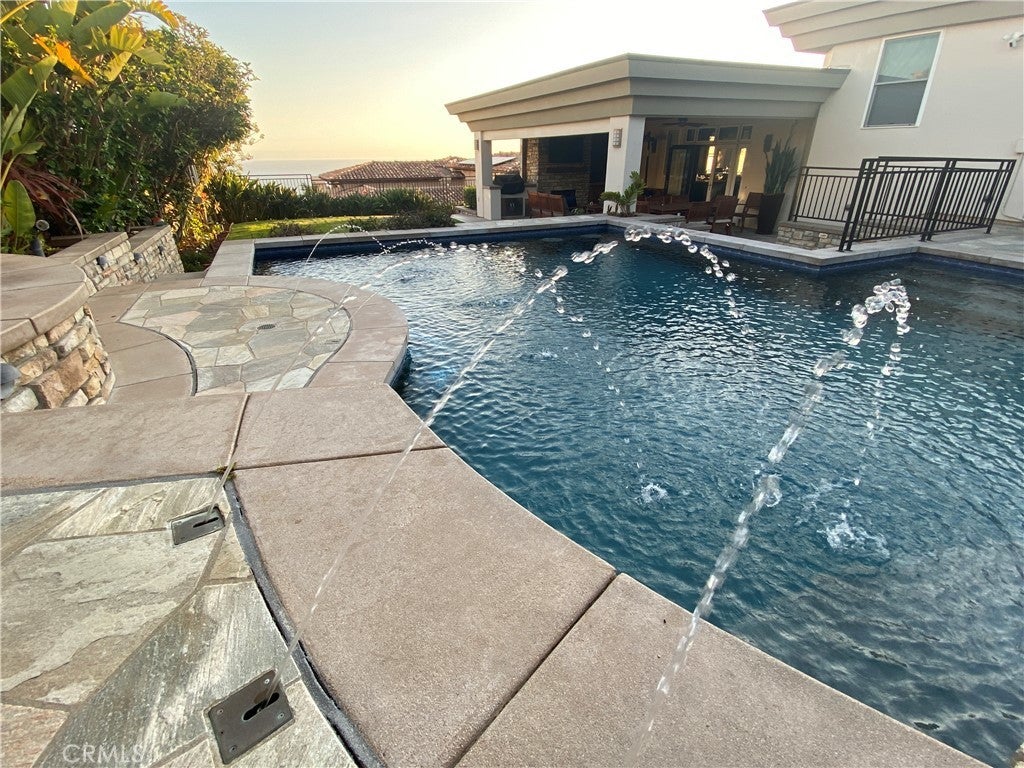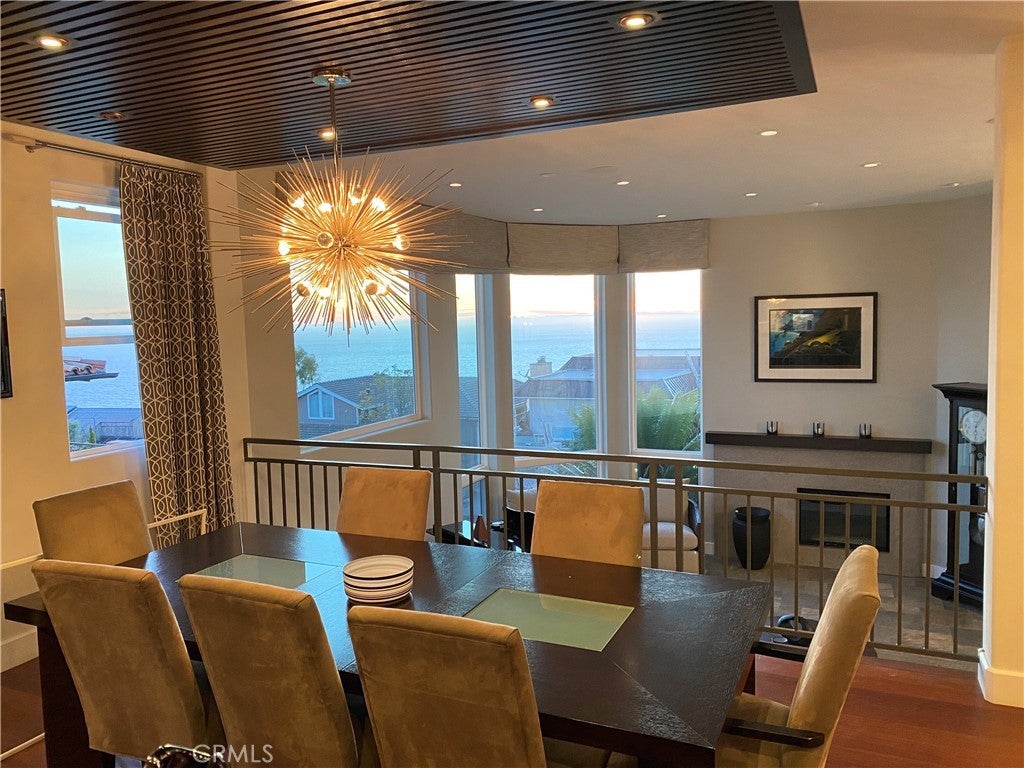 Situated above Victoria Beach this Custom build home has everything you are looking for. The moment you enter this home you can tell it has been meticulously cared for. The owners have made this retreat a “fully inclusive” lease option. A weekly gardener maintains the vast mature plantings that surround the home, and weekly pool and spa service ensure that you enjoy the salt water pool and spa that is heated by rooftop panels with the flip of a switch. Plus, monthly housekeeping comes to dust, vacuum and clean…and we haven’t even started to talk about the house. Upon entering your eye soars up to the cathedral ceiling and the enormous corner, floor to ceiling window that captures the sun sparkling on the Ocean, with views of Catalina, it’s breathtaking. Up the steps to the living space with an open floor plan that seamlessly connects the living and dining room to the kitchen, all which lead to the outdoor loggia, the perfect blend of Coastal Living and Contemporary Design. The Chef’s Kitchen has high end built-in stainless steel appliances, marble and corian countertops, water filtration & softener systems, a 6 burner Thermador gas range and griddle with double ovens below and a vented range hood. Continue through the kitchen to the outdoor entertainment space where friends and family will gather. Enjoy an afternoon swim & jacuzzi, followed by a BBQ under the loggia, fireplace going, all while streaming your favorite TV programs. After lunch lay in the sun on the expansive lawn, or sit around the gas fire pit on the upper level overlooking the pool and the Ocean. Up a short staircase from the living room is the large Primary bedroom suite with Ocean views, a gas fireplace, walk-in shower, soaker Jacuzzi tub and a separate large walk-in closet. Also on this level are the 3 other large bedrooms with generous closets, the laundry room and the other 2 fully updated bathrooms. On the ground level you will find the 2 car garage with Tesla Charger, and a home gym system. This home has everything you are looking for and is perfectly located up Nyes Place, and just a 5 minute walk to Moulton Meadows Hilltop Park with scenic views, tennis and basketball courts, a playground, fitness area, and yes, dogs are allowed. Easy access to downtown Laguna, Newport, Dana Point Beaches, The Waldorf Astoria, The Montage, The Ritz Carlton, Pelican Hill all one hour north of San Diego and an hour south of Los Angeles. Peak season price, June - September available upon request.