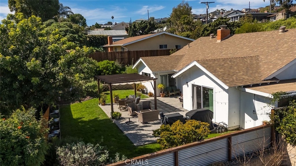 Discover the charm of this fabulous MidCentury Modern single-story home, just one mile from beautiful Doheny Beach, Dana Point Harbor, and the ocean. Nestled in the desirable Dana Knolls neighborhood, this home offers a seamless indoor-outdoor living experience with its full size sliding glass doors that open to a large, private, fully fenced yard and patio with a view of the nearby hills. The bright and inviting living room, featuring a remodeled fireplace with a handmade mantle, provides a versatile space that can be transformed into a child or adult work area, display space, or cozy seating nook. The kitchen is a chef’s dream, boasting white quartz countertops, an island, stainless steel appliances, and recessed lighting. It includes an area for a family table, and an additional tv and seating space, making it ideal for entertaining. Privacy is a key feature of this home, with the primary and secondary bedrooms located in separate wings. The en-suite primary bedroom at the back of the house offers large sliding glass doors bathing the space in natural light. The updated master bath includes dual sinks, a shower with seamless glass doors, modern fixtures, and low-flow toilets. The children’s wing is equally impressive, featuring a window seat in the front bedroom, ample closet space, and a remodeled bathroom with pale oak cabinetry and stunning tile. The home is equipped with newer dual-pane windows throughout, ensuring energy efficiency and tranquility and central A/C keeps the house cool in the summer months. Situated on a quiet single-loaded street, it is close to parks, restaurants, downtown Dana Point, and the Ocean Institute. Embrace the beach lifestyle in this exceptional home!