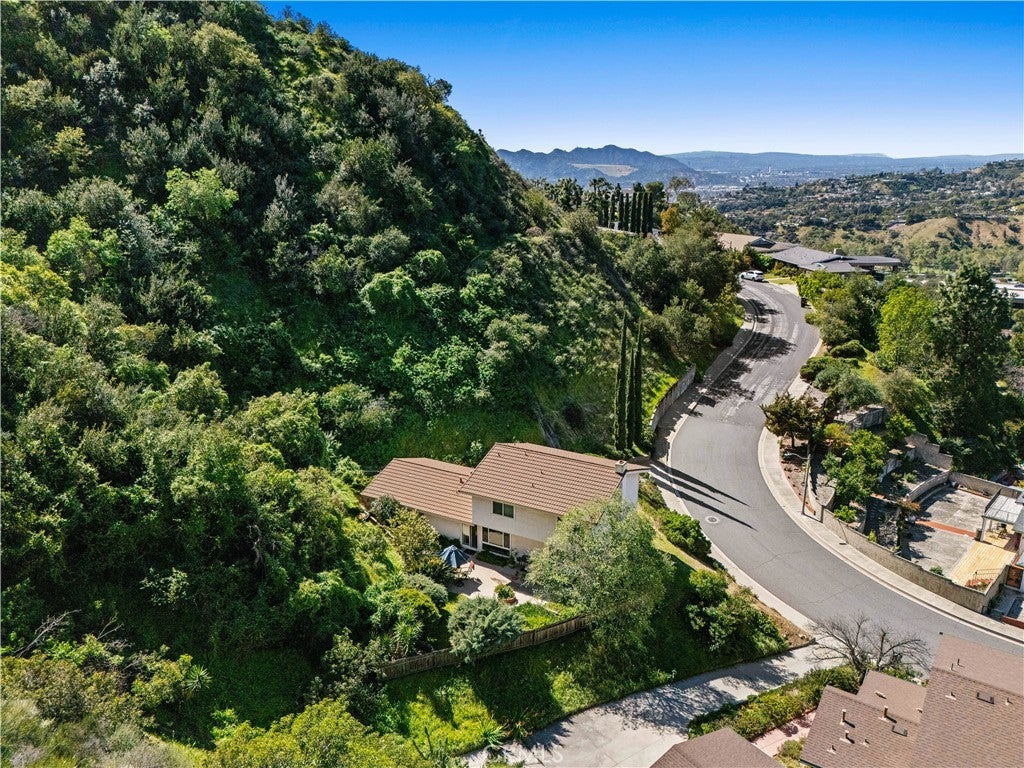 Nestled in the serene Verdugo Mountains of Glendale, this charming single-family home offers a peaceful retreat with breathtaking hillside views and a spacious, highly private almost ¾ acre lot . Tucked away on a secluded hillside, the property is enveloped by lush greenery and natural landscapes, providing exceptional privacy and a sense of seclusion from neighbors while still being conveniently accessible. The residence features 4 bedrooms and 2 ½ bathrooms, providing ample space for comfortable living. Step inside to a bright and inviting living room anchored by a cozy brick fireplace, perfect for gatherings. The room is bathed in natural light from large windows framed by elegant valances and sheer curtains. Adjacent is the functional kitchen, complete with warm wood cabinetry, a refrigerator, and appliances including a dishwasher and oven, and space for a dining area, ideal for family meals. The home includes a bedroom that is currently a dedicated office or library space with built-in wooden bookshelves, offering great potential for remote work or quiet reading with views through the window. Bedrooms are cozy and well-appointed, with large windows providing glimpses of the lush surroundings. Outside, the property's expansive and private lot embraces the natural landscape, with a concrete driveway leading to a two-car garage. The backyard patio is an entertainer's delight, featuring space for outdoor seating and a barbecue grill, all set against verdant hills and distant mountain vistas, enhanced by the lot's secluded positioning amid the mountainside foliage. Located in a desirable neighborhood with access to top-rated schools like Verdugo Woodlands Elementary (high API score)—this home is a canvas for personalization while enjoying unparalleled privacy and proximity to urban amenities. Perfect for those seeking a hillside haven with room to grow.