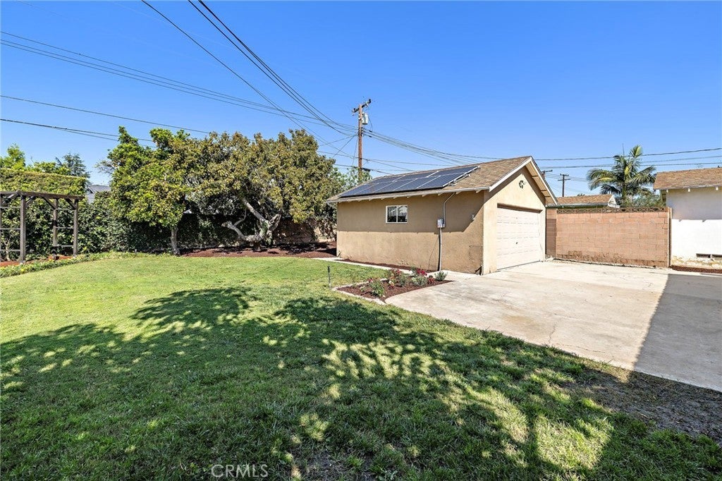 Nestled in the heart of Orange, this charming single story offers a welcoming open floorplan with owned solar panels and new windows. Recently painted interiors, original hardwood floors, and brand new blinds create a bright and inviting atmosphere. A spacious living room featuring a classic brick fireplace can serve as a generous standalone living area or be configured as an open-concept living and dining space. The kitchen includes granite countertops, a gas range, built in microwave, and a casual eat in dining area. The large backyard offers both hardscape and lawn areas and is enhanced by mature fruit trees, including fig, lemon, orange, and avocado. Additional features include a separate laundry room with storage and a detached two car garage. The space behind the garage offers potential for a future workshop or studio by adding a second garage door at the rear. This home combines comfort, character, and opportunity—all in one of Orange’s most sought after communities.