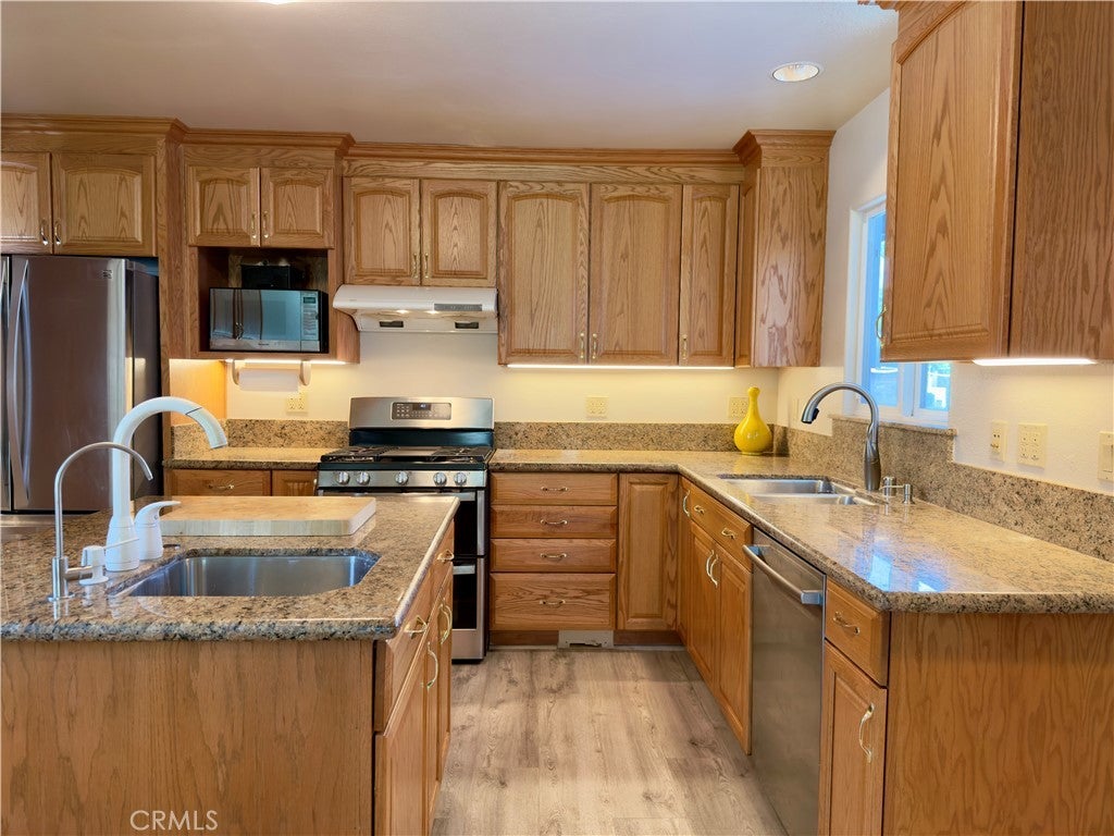 Thoughtfully updated and meticulously maintained, this Covina home blends modern functionality with comfortable everyday living. Updated and expanded in 2002 with all work fully permitted, the home features upgraded plumbing, an expanded layout connecting the house and garage, and numerous practical enhancements throughout. The kitchen showcases quality Kraftmaid cabinetry, abundant storage, and a large island with an additional prep sink. A wine refrigerator and laundry appliances are included, and the space flows seamlessly into the dining and living areas—ideal for entertaining and daily life. The walls were opened and insulated to keep house cool, you can really feel the difference! Designed with convenience in mind, the home includes a whole-house vacuum system, Cat 5 hard wiring, ceiling fans in every room, and energy-efficient LED lighting throughout. The hallway bath is brightened by solar tubes and equipped with high-CFM, ultra-quiet ventilation. The private primary suite features dual closets, including a walk-in closet within the bathroom. The insulated garage offers exceptional versatility, featuring a vinyl floor, window, dedicated A/C ducting, wiring for surround sound and electronics, a utility sink and additional attic storage with a plywood floor provides even more practical space. Outside, the backyard creates a peaceful retreat with mature citrus trees—including navel oranges, limes, lemons, and juicing oranges—alongside rosemary, peppermint, spearmint, and lavender that attract butterflies, hummingbirds, and bees. Entertain with ease thanks to the gas-piped BBQ, outdoor sink with cold water, ample landscape lighting, and established drainage. Footings are already in place should you wish to expand the patio cover. Additional highlights include a 200-amp electrical panel, rooftop A/C and furnace, WiFi-controlled Orbit irrigation, and fresh exterior paint completed in summer 2025. A rare combination of thoughtful upgrades, practical storage, and inviting outdoor living—this Covina home is ready to be enjoyed.