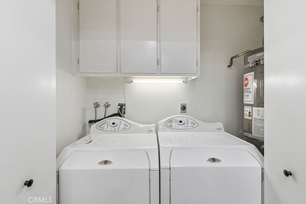 Fantastic Greenbrier Terraces Condo with a 2 car garage! This pool level location features a large kitchen with loads of cabinets, recessed lights, smooth ceilings, vinyl flooring, spacious living room with fireplace, central A/C and Heating, indoor laundry, large primary bedroom with patio slider, large walk in closet, dual sink bathroom and roman tub, guest bedroom with mirrored closets and adjacent bathroom, entertainer's size patio just steps to the pool and spa area, water and trash paid by HOA in this wonderful gated community!