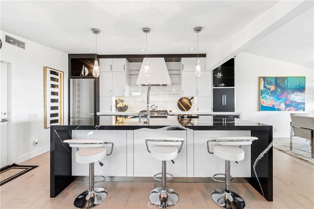 Panoramic 180 Degree White Water Ocean Views from Catalina Island to La Jolla. Monarch Summit I. Stunning Ocean Views of the Coastline. Expansive Ocean Views throughout. Highly upgraded remodeled home, extraordinary high end upgrades including Custom Open Kitchen with raised kitchen ceiling to 10FT. Quartz Cambria Island with Waterfall Design & Double Ogee Edging Countertops, Kitchen Semi Chef PRO Faucet, Franke two compartment sink, Miele Appliances, Miele six burner gas stove, Miele refrigerator built in & microwave built in cabinet. Custom walk-in pantry with glass doors. Large open living room with Ocean View, has custom built in cabinets, desk and Grasscloth Wall with built in TV. Swarovski Knobs throughout the home. Kitchen and dining area with incredible Ocean Views. Master Bedroom Suite offers Ocean Views, new dual pane Milgard picture window, accented wall with slatted wood behind headboard with accent color and remote shades. Master Bathroom has custom vanity, two sinks, custom porcelain floors, Quartz Countertop and custom Travertine tiled shower, three jets and water temperature control, crystal lighting in shower with Sapphire glass doors, Toto toilet & two Solar Skylights. Newer Ceiling fan and custom closet systems throughout the entire home. Secondary Bedroom with Bath Solar Skylight & custom closet organizer. Slider opens onto enclosed patio courtyard. Light toned engineered hardwood floors from Canada throughout. All new closet doors and French doors throughout. All new and upgraded recessed lighting throughout. Lighted dimmer system in all the rooms and crystal lighting fixtures throughout. Contemporary baseboards and door moldings. New HVAC System put in 2024. Living room has masonry fireplace. This home has several more extraordinary custom upgrades.