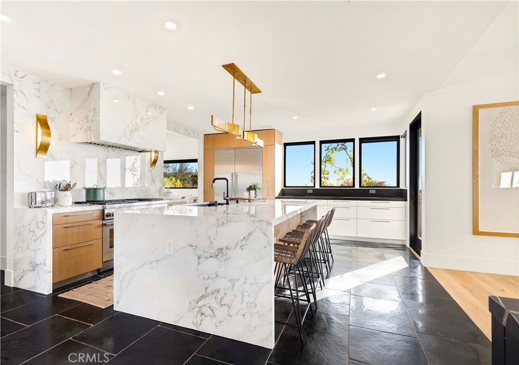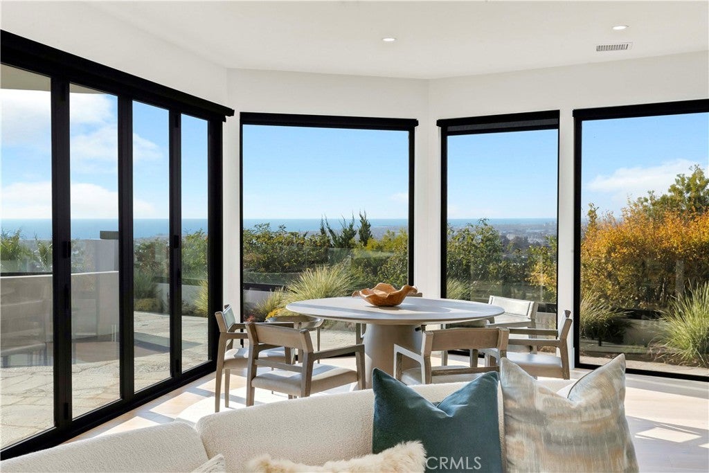 This fully remodeled Harbor View Hills estate offers some of the most breathtaking panoramic views in all of Newport Beach and Corona del Mar. From the Pacific Ocean and Newport Harbor to the iconic Balboa Pier and Pavilion, Fashion Island, and even the Los Angeles skyline on a clear day, the vistas from this rare property are simply unforgettable. A gated walkway lined with fragrant lemon trees leads to a tranquil courtyard where a sparkling pool and spa create a private resort-like setting. A grand entry welcome you inside, where expansive living spaces are designed to capture the home’s extraordinary coastal views from the moment you enter. The main residence features four spacious bedrooms, three full bathrooms, and a guest powder room. Above the three-car garage, a versatile fifth room with its own full bathroom and walk-in closet offers the perfect space for a guest suite, office, gym, or recreation room. At the heart of the home is a chef’s kitchen with top-of-the-line finishes, a built-in breakfast nook, and a butler’s pantry complete with an additional gas range—ideal for entertaining. The formal dining room and a separate casual dining area near the wet bar both showcase sweeping views, making every meal feel like a special occasion. Designed for effortless entertaining, the full wet bar features elegant seating and a wine refrigerator, creating the perfect space to host guests while enjoying the spectacular backdrop. The spa-inspired primary bathroom serves as a private retreat, highlighted by a stunning centerpiece soaking tub and luxurious finishes throughout. Additional conveniences include a spacious laundry room with a sink and an extra refrigerator/freezer. Situated on an expansive lot, this extraordinary property combines thoughtful design, unmatched views, and a premier location—making it one of the most coveted homes in Harbor View Hills. Spend the summer enjoying the ultimate Newport Beach coastal lifestyle in this remarkable residence.