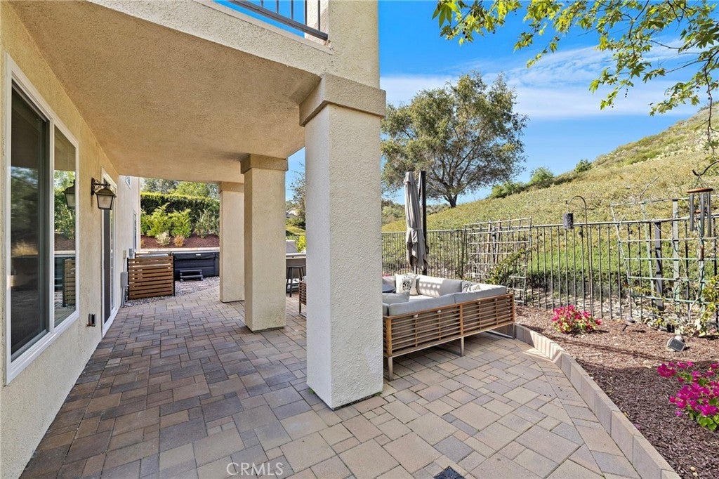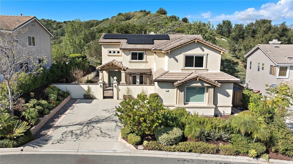 Situated in the gated community of Stonecliff this home is upgraded throughout with new gourmet kitchen, French Oak wood flooring, owned solar panels, new windows, new roof and new HVAC to name a few. This home blends modern comfort with quality finishes. French oak hardwood flooring runs throughout the downstairs, creating a warm and cohesive feel. The kitchen showcases a recent complete remodel featuring custom cabinetry and premium appliances, including a JennAir gas range, Miele dishwasher with built-in water softener, and sleek Kraus sinks—combining both functionality and style. Situated between the kitchen and formal dining area, a beautifully designed bar or coffee station features a prep sink, mini-refrigerator, and spacious pantry—ideal for everyday convenience and entertaining. The spacious family room, open to the kitchen, showcases a stunning rebuilt fireplace with a marble surround and custom tiled built-ins with floating shelves. A built-in surround sound system and dedicated AV cabinet complete an exceptional entertainment experience. Dining room open to the formal living area features French doors to a charming front patio featuring a pergola with integrated lighting—an ideal spot to relax and unwind after dinner. The upstairs showcases the primary suite and four generous secondary bedrooms, one of which is large enough to serve as a bonus room. The primary suite features French doors opening to a balcony with serene canyon views, and an updated bathroom with new vanities, quartz countertops, and two custom closets. The private backyard offers a peaceful retreat with pavers, mature lemon trees, and a spacious eight-person jacuzzi with quiet filtration and dual pumps. Backing to a serene canyon with no homes behind, the setting provides exceptional privacy and tranquil views. Additional upgrades include a rare finished utility room (previously the 3rd car garage), tankless water heater, whole-home WiFi wiring, integrated security cameras, upgraded lighting with dim-to-warm switches, enhanced under-stairs storage, garage with epoxy flooring, abundant storage, and EV charger. Ideally located across from the community pool and near parks, scenic trails, and highly regarded Wagon Wheel Elementary School and Tesoro High School, the home also offers convenient access to the 241 Toll Road. A rare opportunity to own a home where thoughtful upgrades, comfort, and setting come together seamlessly.