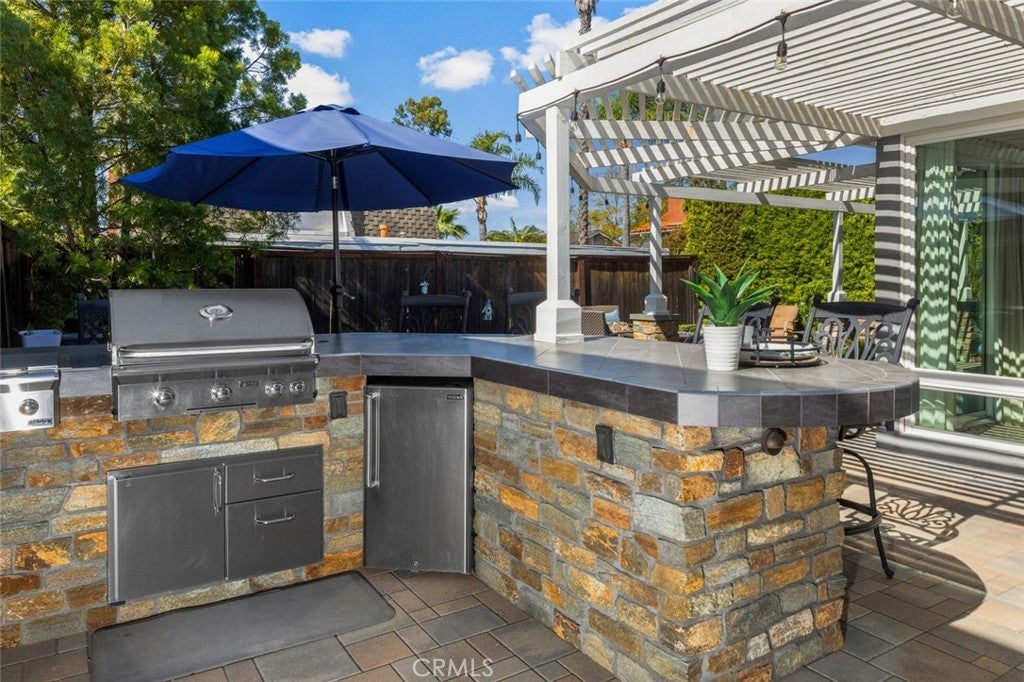 Set behind lush landscaping and warm architectural lighting, this thoughtfully designed lakeside residence blends timeless architecture with effortless California indoor-outdoor living. Inside, the main living areas are defined by soaring windows that draw in an abundance of natural light, creating an airy and inviting atmosphere throughout the home. The open layout flows seamlessly between the living and dining spaces into a beautifully appointed kitchen, where classic cabinetry, stone countertops, and an oversized island create a setting that feels both elegant and highly functional for everyday living and entertaining. The backyard extends the home’s living experience outdoors. A spacious setting features a built-in kitchen, multiple lounge and dining areas, and a private jacuzzi beneath a pergola, creating the perfect environment for relaxed evenings or effortless entertaining. Upstairs, the primary suite serves as a private retreat with tranquil lake views captured through expansive windows and a private balcony. A built-in coffee bar adds a thoughtful touch to the morning routine, while the spa-inspired bathroom offers generous space and refined finishes. Two additional bedrooms are also located upstairs and share access to a massive balcony that stretches across the home, creating an elevated outdoor space overlooking the surrounding neighborhood. A fourth bedroom is conveniently located on the main level, ideal for guests or a private office. The result is a home that feels both welcoming and refined, where natural light, peaceful views, and thoughtfully designed indoor and outdoor spaces come together to create an atmosphere perfectly suited for everyday living and effortless entertaining.