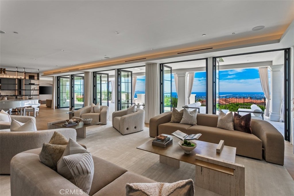 A Triumph of Modern Elegance in Pelican Hill, Presenting 7 Sailview, a newly completed architectural masterpiece within the revered guard-gated enclave of Pelican Hill in Newport Coast. Completed in late 2024, this custom estate is a rare fusion of international craftsmanship, timeless design, and uncompromising quality — a true jewel along Southern California’s most coveted coastline. Commanding a prominent position on an expansive premium parcel, the residence offers unobstructed views of the Pacific Ocean, Catalina Island, Newport Harbor, and twinkling City lights from nearly every room. A sweeping circular motor court sets a tone of arrival, leading into interiors that exude understated opulence and architectural integrity. No detail has been overlooked from stunning custom chandelier systems, custom three story steel staircase, as well as exceptional architecture boasting a true open concept. A curated palette of globally sourced natural stones — including exotic Italian Calcutta and quartzites — complements artisan-crafted inlaid wood flooring, hand-applied Roman clay walls, and bespoke ironwork and millwork throughout. Expansive Fleetwood motorized pocket doors seamlessly connect interior living spaces to the resort-style exterior, offering a lifestyle of effortless indoor-outdoor living. Spanning over ~10,600 square feet, the home is thoughtfully designed with 7 lavish bedroom suites and 9 impeccably appointed oversized bathrooms. The residence is highlighted by a dream primary bathroom clad in Calcutta stone featuring a solid Calcutta stone floating bathtub, owners private outdoor terrace, and bespoke designer dual closets. Amenities rivaling the world’s finest resorts include a state-of-the-art theater, professional-grade gym, executive office, and full-service hair salon. Outdoors, the grounds are a private sanctuary — featuring a sleek zero-edge pool and spa with Rolls Royce themed Starlight bottom, outdoor kitchen, multiple fire features, lush landscaping, multiple covered loggias + terraces, and balcony spaces all framed by panoramic coastal views and the golden hues of Southern California sunsets. Moments from world-class Pelican Resort and Golf Club, beaches, luxury resorts, fine dining, and exceptional schooling options, 7 Sailview represents a once-in-a-generation opportunity to own one of the region’s most distinguished newly built estates — where every element is elevated and perfectly executed, where no compromise has been made.