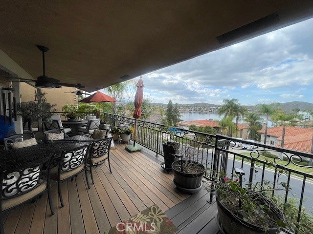 Views! Views! Views! Canyon Lake Single-Level Gem with Panoramic Views! Prepare to fall in love with this stunning single-level home offering sweeping views of Canyon Lake! Featuring 3 bedrooms and 2.5 baths, this residence combines comfort, security, and the ultimate resort lifestyle. Enter through a charming arched gateway into a private, covered extended living area—perfect for entertaining or relaxing with family. Step inside the rich wood front door to a bright, open living space where panoramic lake views greet you from nearly every window plus 2 beautiful designer-stone fireplaces warming the two living areas. The galley kitchen is ideal for the home chef, offering a streamlined workflow and seamless connection to the formal dining area with built-in hutch. Enjoy serene mornings or afternoon gatherings on the expansive deck, sipping coffee or watching the sun set across the lake. Additional highlights include plantation shutters, solar panels for energy efficiency, fruit trees, a 2-car garage, RV parking, and a whole-house water filtration system. Located in Canyon Lake, a private, gated community with 24/7 security, residents enjoy unparalleled amenities: a waterski and fishing lake, parks with beaches, basketball courts, baseball fields, tennis and pickleball courts, equestrian center, 18-hole golf course, community pools, dog park, golf cart-friendly streets, slalom course, ski jump, restaurants, and vibrant community events—and so much more! This home isn’t just a place to live—it’s a lifestyle. Don’t miss your chance to call this Canyon Lake paradise your own!