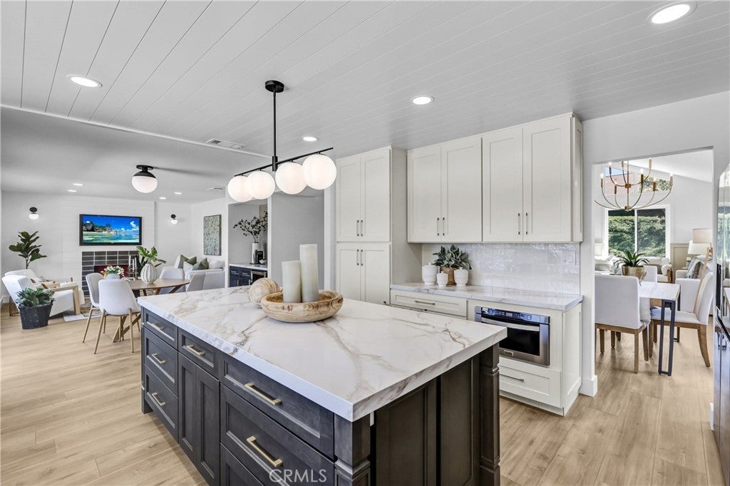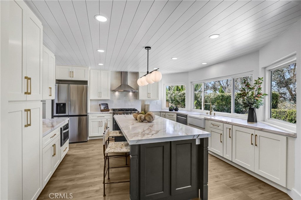 Experience the pinnacle of Mission Viejo living in this meticulously renovated 4-bedroom, 2.5-bathroom home, nestled in the prestigious Madrid neighborhood of Baha Oso. Perched high above the Mission Viejo Country Club, this 2,559 sq ft residence has been completely transformed into the area's premier property with uncompromising craftsmanship and high-end design. Set on a spacious 8,000 sq ft lot along a quiet, single-loaded street, this home offers breathtaking panoramic views. Inside, enjoy a brand-new dream kitchen designed for modern living, flowing into a brightly lit, open floor plan. The master suite features a luxurious, spa-like bathroom, offering a serene escape. Every detail has been addressed: new windows and exterior doors, a complete PEX repipe, new solid white oak interior doors and luxurious wood accents throughout, and a newer roof. The exterior boasts a brand-new oversized driveway and an expansive back patio perfect for entertaining, complemented by fully mature and manicured landscaping. Come experience the absolute best of Mission Viejo.