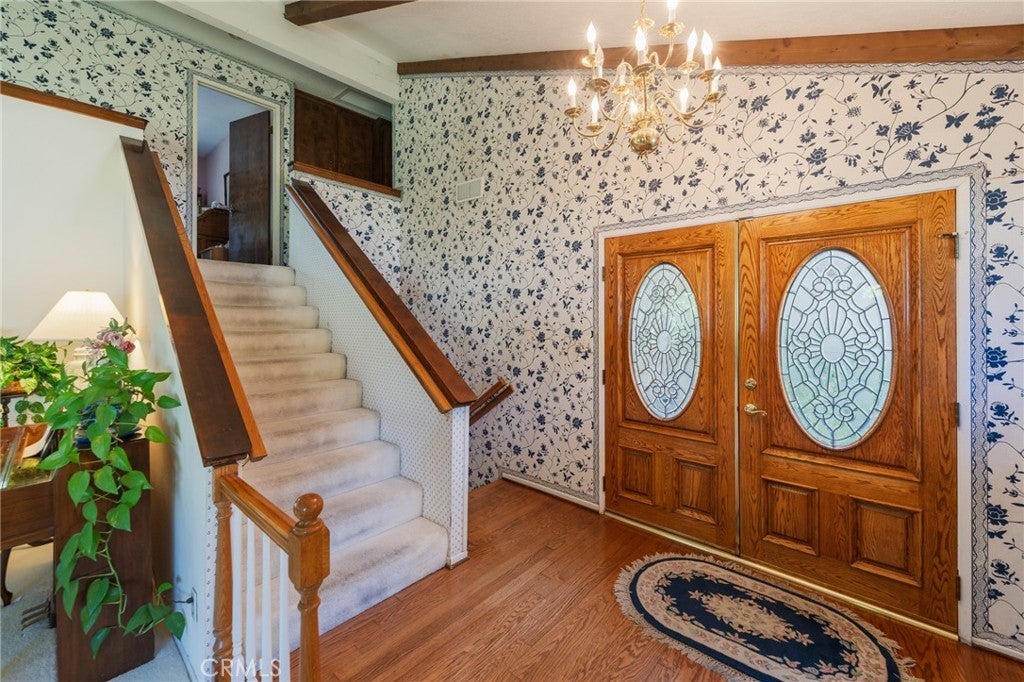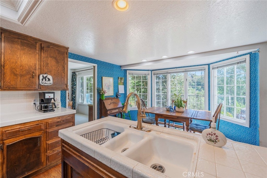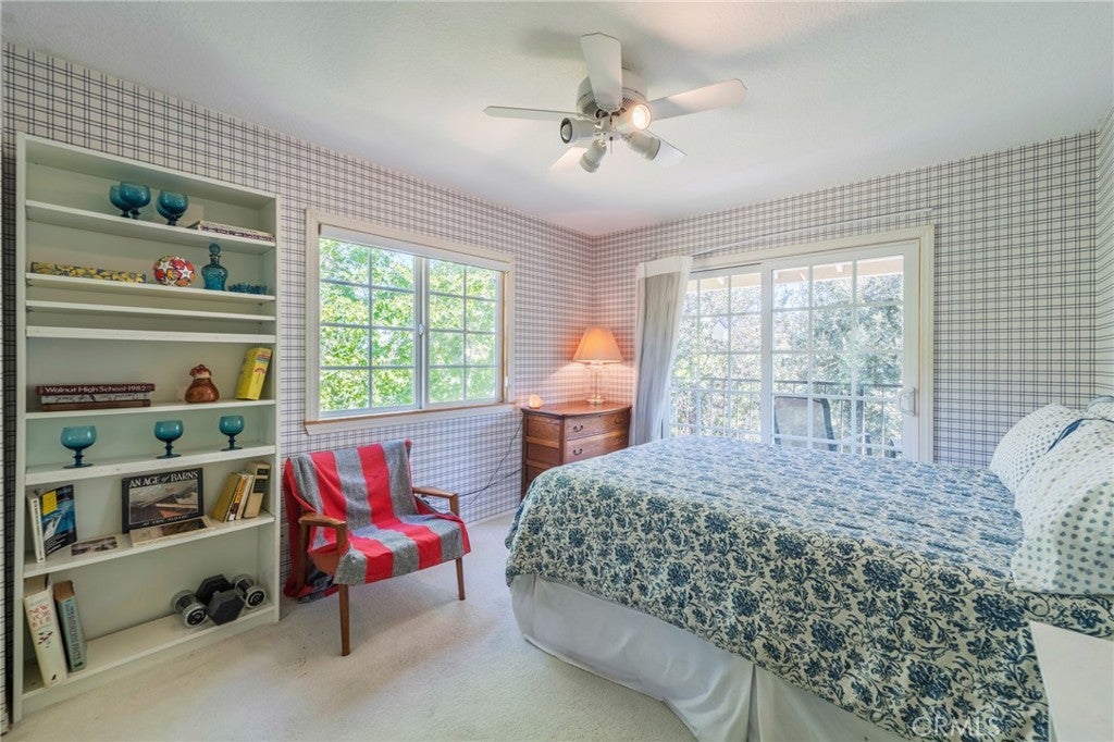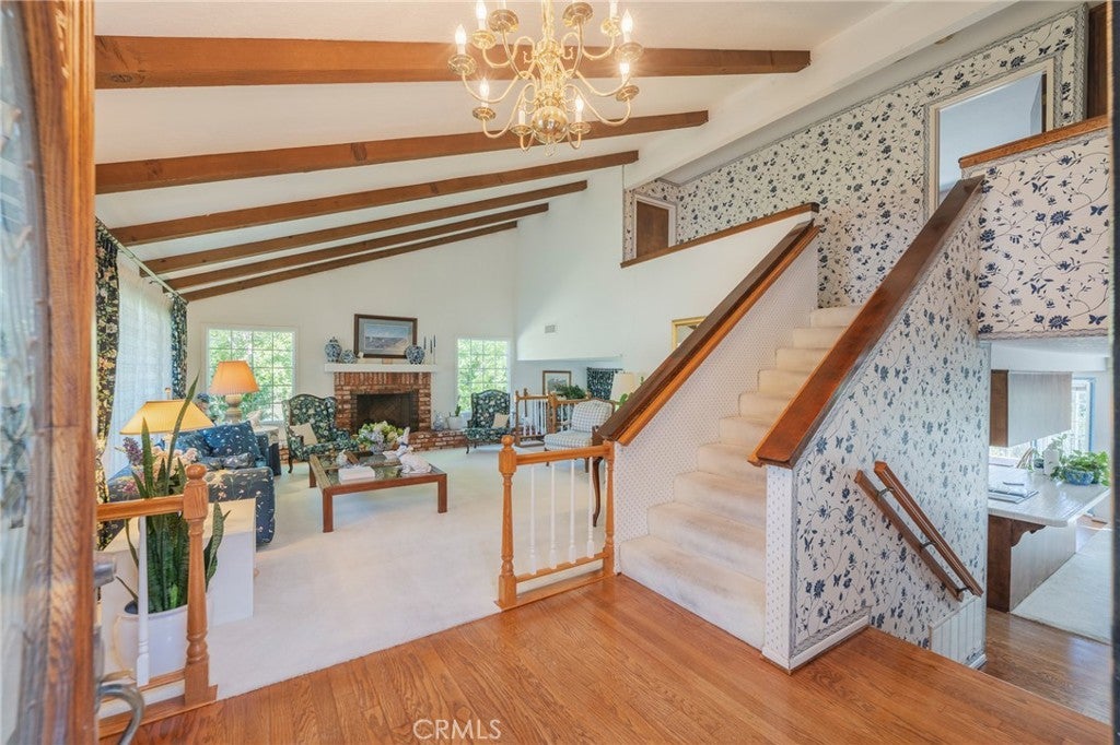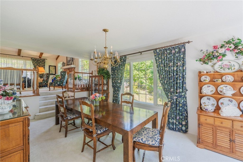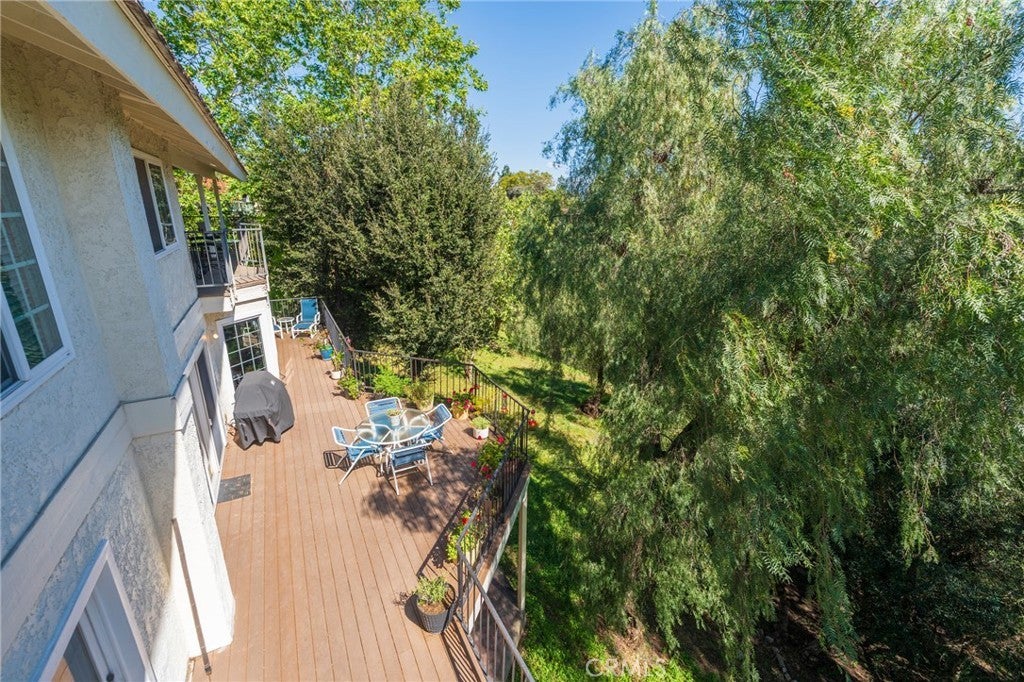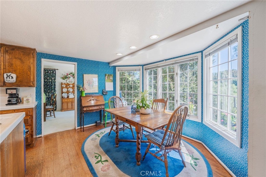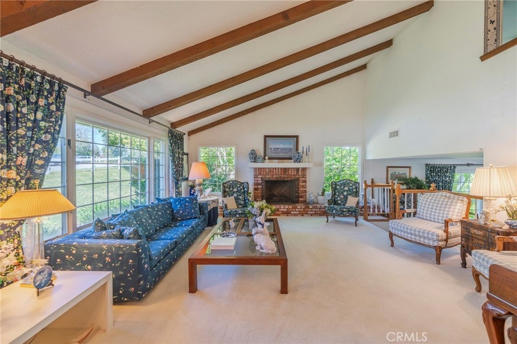 Nestled among the rolling hills of Diamond Bar’s Country Estates, this 3,378 sq ft custom tri-level home offers a lifestyle immersed in nature. Set on more than an acre adorned with picturesque trees, the property is surrounded by the preserved native beauty of California landscape. Inside, the formal living room welcomes you with a dramatic wood-beamed ceiling and charming fireplace. Just below, the formal dining room is surrounded by windows that frame the landscape and make every gathering feel connected to the outdoors. The family room, kitchen, and breakfast nook continue the experience, offering sweeping views of the trees and hills beyond, along with a deck that runs the length of the home. Five bedrooms and four bathrooms are thoughtfully arranged across the tri-level design, with balconies off all of the bedrooms providing peaceful places to enjoy the scenery. A hallway nook creates the perfect space for a small library, office, or craft room, and the home offers abundant storage throughout. Adding exceptional versatility, the attached ADU provides ideal space for guests, multigenerational living, or rental income. It features a separate living room, bedroom, bathroom, kitchen, and two walk-in closets. Both the main living level and ADU are accessible from the garage, offering convenience for those wishing to avoid stairs. Outdoors, the natural landscape showcases Pepper, Sycamore, and Live Oak trees along with the fragrant beauty of sage, monkey flower, buckwheat, California poppies, and orange trees. Bird lovers will enjoy the many colorful hummingbirds and various birds who also call this place home An outdoor gardening room allows you space to continue preserving this rare native land, while an additional driveway provides extra parking for gatherings. Residents of Country Estates enjoy access to a heated swimming pool, badminton courts, basketball courts, tennis courts, pickleball courts, and scenic walking trails.