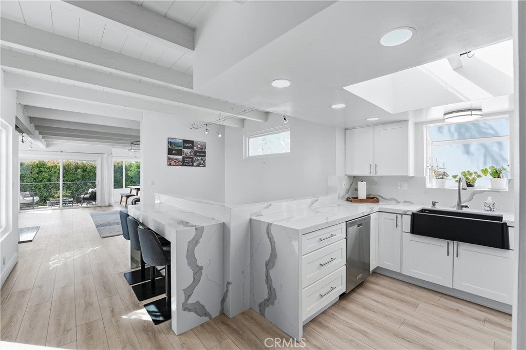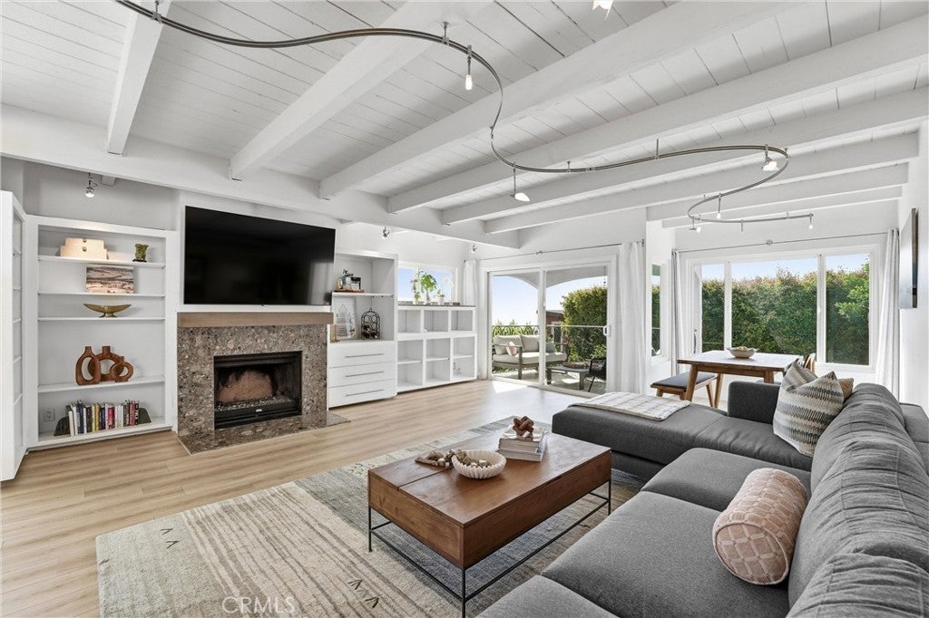 Perched in the desirable Arch Beach Heights neighborhood of Laguna Beach, this beautifully updated 3-bedroom, 2-bath coastal home offers sweeping ocean and hillside views along with the privacy and charm of hillside living. Light-filled interiors feature an open living area with fireplace, large windows, and seamless indoor-outdoor flow ideal for relaxing or entertaining. The updated kitchen includes modern finishes, ample cabinetry, and a functional layout that connects easily to the main living spaces. Multiple balconies and outdoor patios provide the perfect setting to enjoy coastal breezes, sunset skies, and peaceful surroundings. Additional features include a two-car garage with direct access, built in storage, and central air conditioning. Conveniently located near public transportation and just one block from Moulton Meadows Park, which offers basketball courts, tennis courts, open fields, and scenic trails. World-class beaches, restaurants, galleries, and all that Laguna Beach coastal living has to offer are only minutes away. A wonderful opportunity to enjoy ocean views, natural beauty, and the relaxed Laguna Beach lifestyle in one of the area's most sought-after hillside neighborhoods.