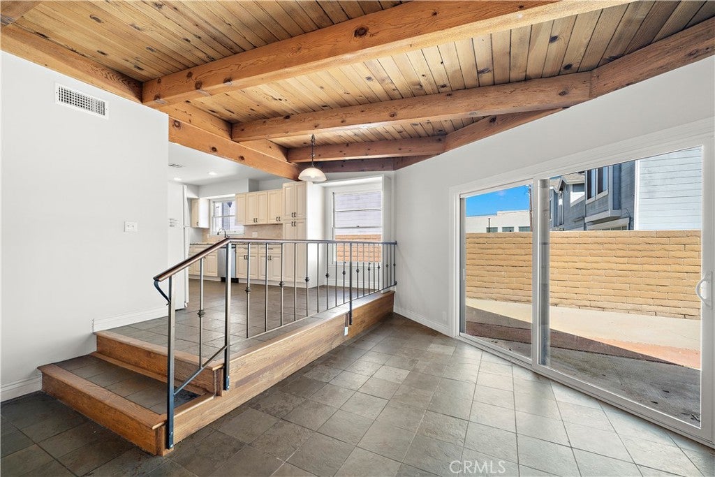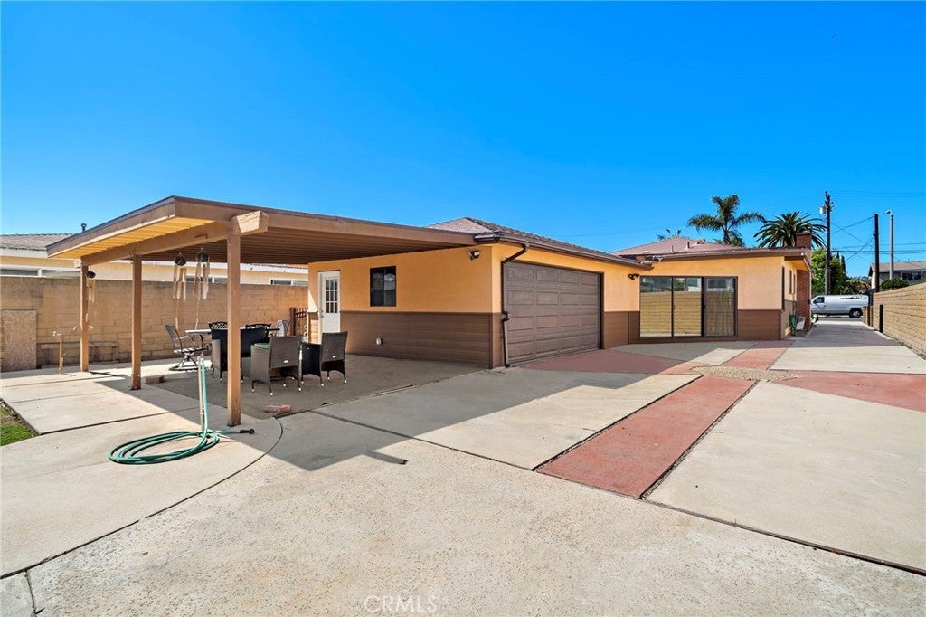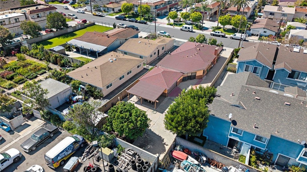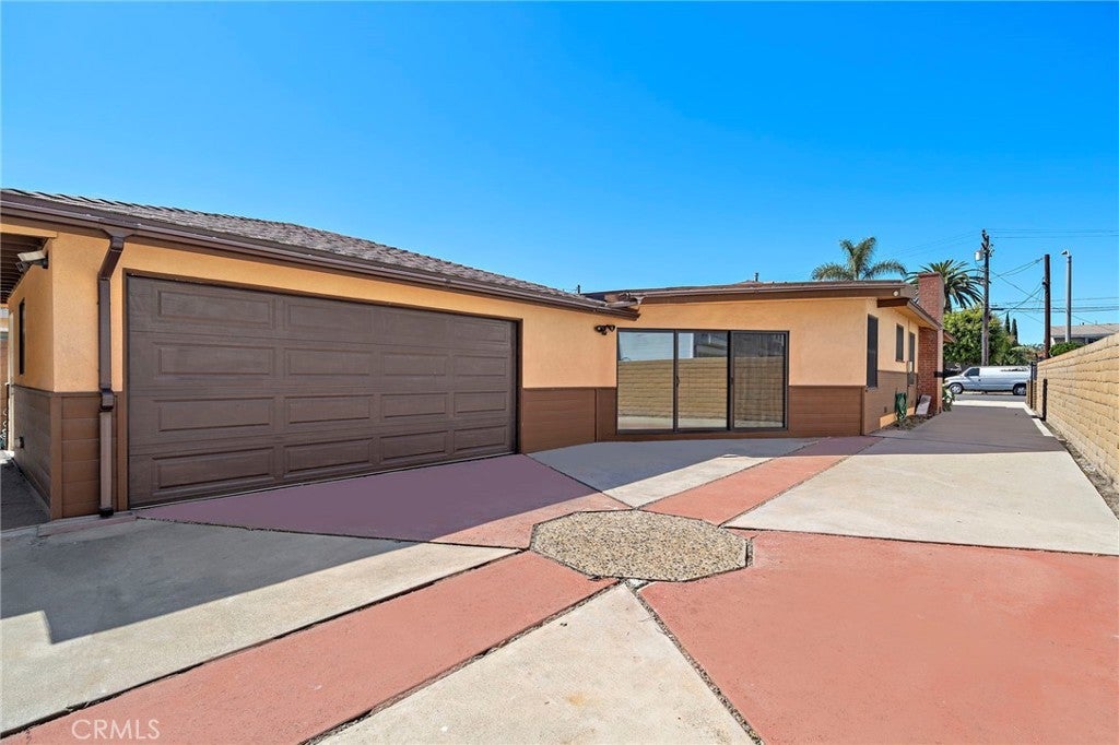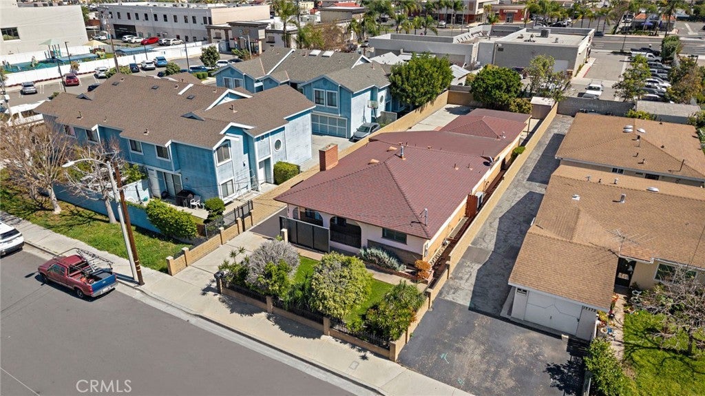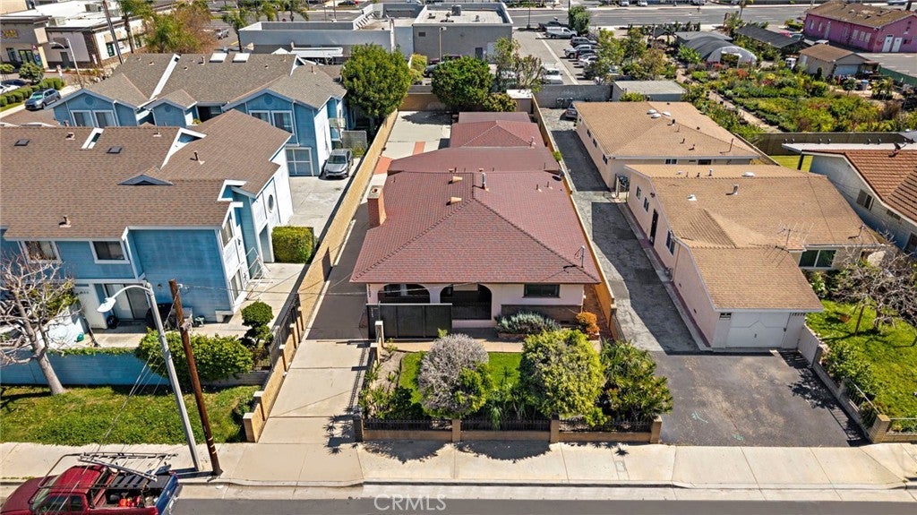 Charming early Huntington Beach bungalow expanded to approximately 1,900 square feet and beautifully upgraded in recent years, situated on a rare 8,160 square foot lot with an incredible 160-foot gated driveway that extends past the two-car garage to the rear of the property, offering exceptional potential to add both an ADU and JADU with existing multi-residential zoning. This versatile residence showcases a welcoming front porch with graceful Spanish arches overlooking a lush grassy front yard framed by wrought-iron fencing and pristine landscaping. Step inside to an extra-large light-filled living room featuring refinished hardwood flooring, crown molding, and a majestic fireplace with handcrafted surround and mantel. Major upgrades include central heating and A/C installed in 2025, fresh interior paint, and a 200-amp electrical panel added in 2021. The kitchen is a true showpiece, completely remodeled with granite countertops, tumbled marble subway tile backsplash, custom antique-finish soft-closing cabinetry, deep stainless sink, recessed lighting, and stainless appliances including a gas range, microwave, dishwasher, and refrigerator. Slate tile flooring flows into the dining area overlooking a step-down 500 square foot family room with stunning open-beam wood ceiling and entertainer’s wet bar, an inviting contrast to the elegant formal living room and perfect for relaxed everyday living or lively gatherings. Sliding glass doors open to an expansive wrap-around outdoor living space featuring a 315 square foot solid patio cover, a large open patio area, planter areas, a storage shed, and an orange tree, surrounded by high privacy walls. The home offers 3 bedrooms and 2 bathrooms, including two bedrooms connected by a Jack & Jill bath with walk-in shower, plus a spacious hall bathroom upgraded with new vanity, slate tile flooring, and tiled tub/shower combo; all bedrooms include ceiling fans. Direct access from the family room leads to the oversized two-car garage with washer and dryer hookups and a new garage door. Built in the 1950s with a raised foundation and solid construction, this home radiates timeless retro charm and is ideally located in the heart of Huntington Beach close to shopping, dining, parks, excellent schools, and just minutes from the iconic white-sand beaches.