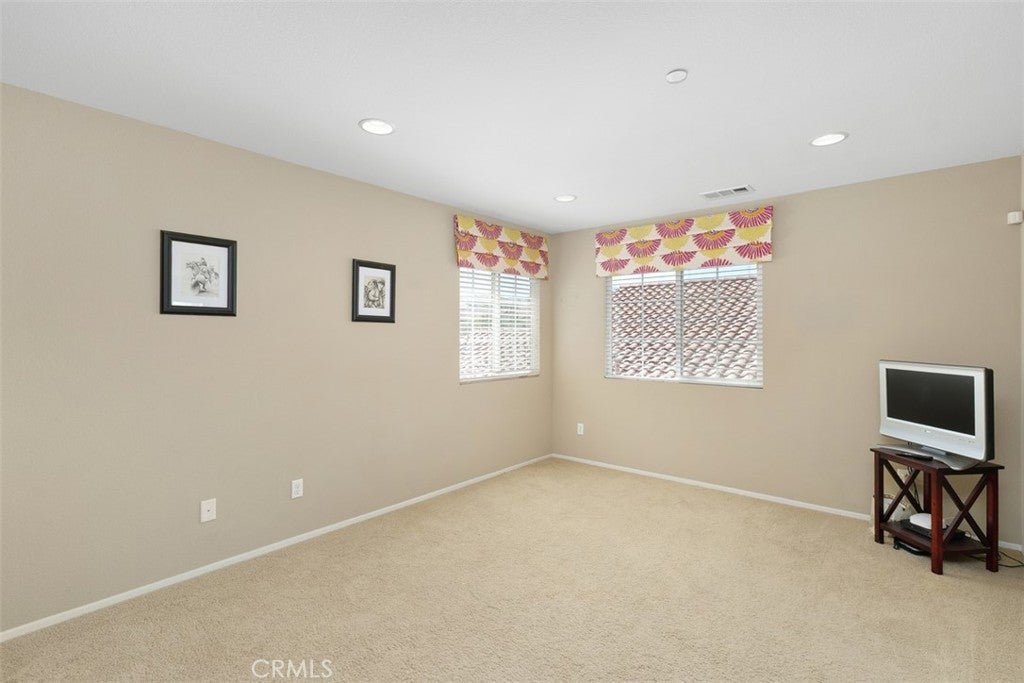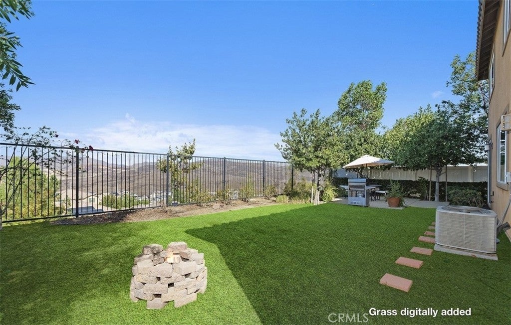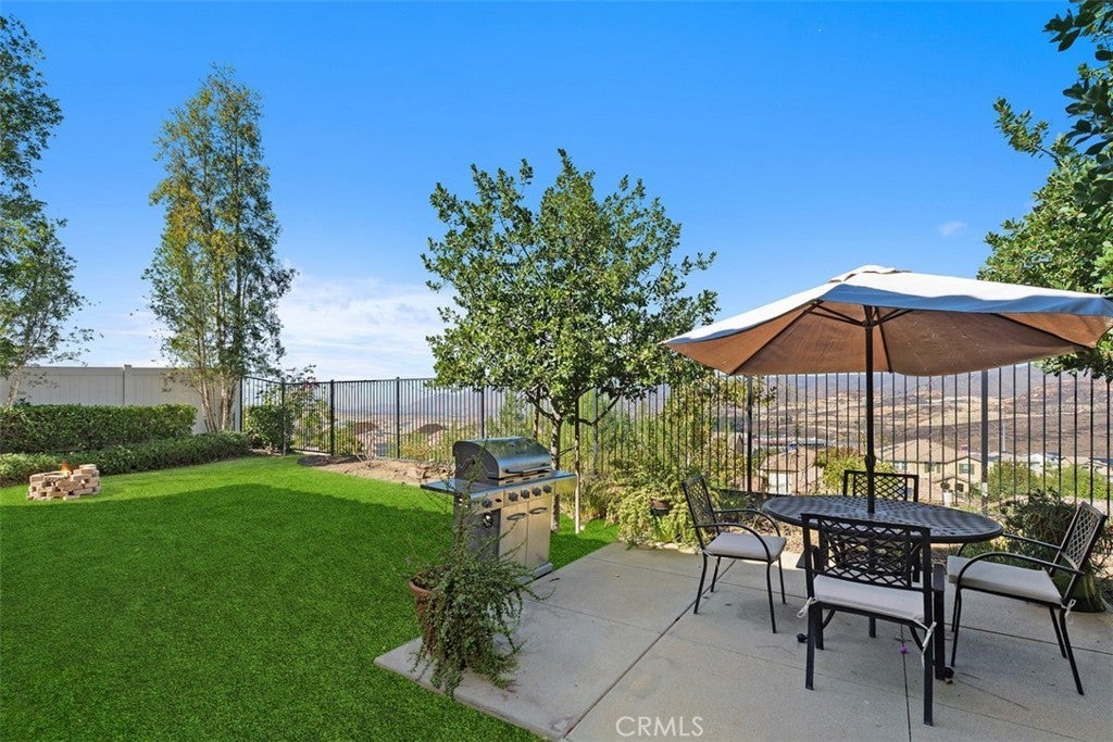 This stunning former model home in Amberhill Ranch offers panoramic mountain views from its elevated 5,663 sq ft lot and features five spacious bedrooms, (including a main-floor suite), plus a versatile upstairs loft. The formal dining room has a butler's pantry and flows seamlessly into a gourmet kitchen equipped with rich wood cabinetry, wood floors, granite countertops, stainless steel appliances, a large island, and abundant storage. The great-room style family room boasts surround sound, a cozy fireplace, and breathtaking views. The nearby main floor bedroom with en-suite bathroom is great for guests. Upstairs, the luxurious upstairs primary suite includes crown molding, built-in speakers, and a spa-like bathroom with travertine floors, dual sinks, a soaking tub, separate shower, and oversized walk-in closet. Additional highlights upstairs include the large bonus room/loft, three additional bedrooms, dual-sink bathroom, an upstairs laundry room, whole-house fan, and dual-zoned A/C. The home has a security alarm system in each room that can be activated. The flat, usable backyard offers privacy, breezes, and space for a pool or play area. 3 car tandum garage offers convenient space options. Located within walking distance to a new elementary school and resort-style HOA amenities including a pool, splash zone, clubhouse, and parks, this home is just minutes from the I-15 freeway, Lake Elsinore Outlets, and the lake, plus offers easy access to Corona, 25 min to Temecula and 50 min to Orange County. This property is the perfect place to call home.
