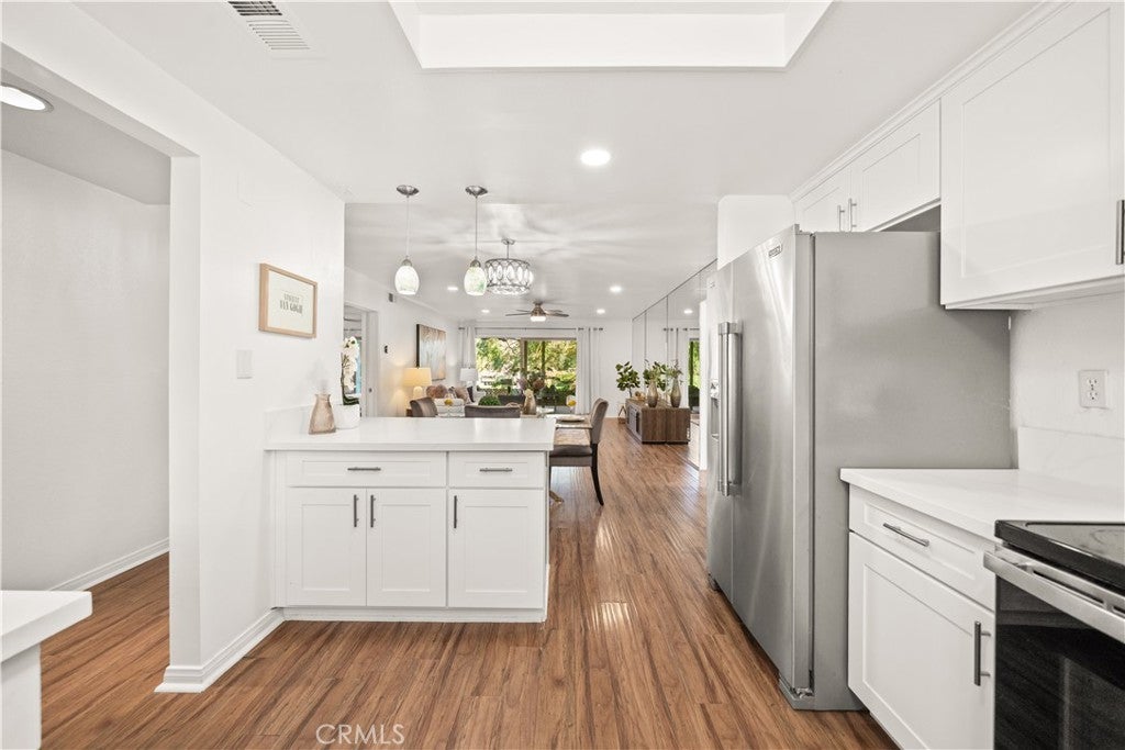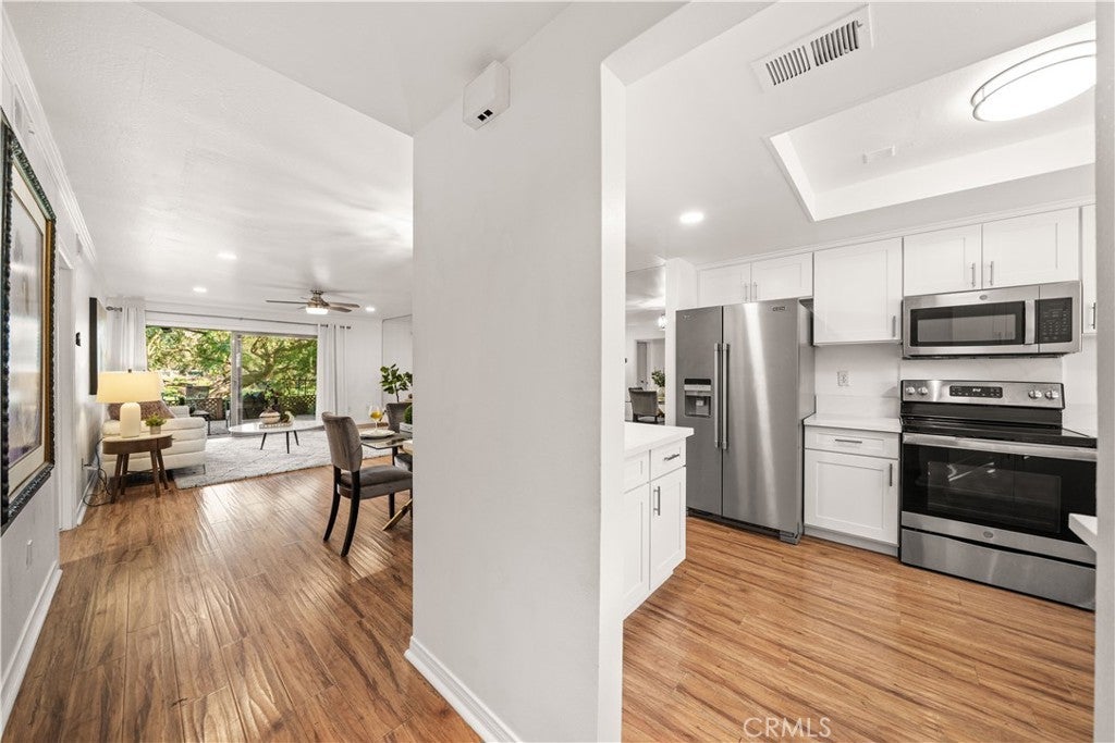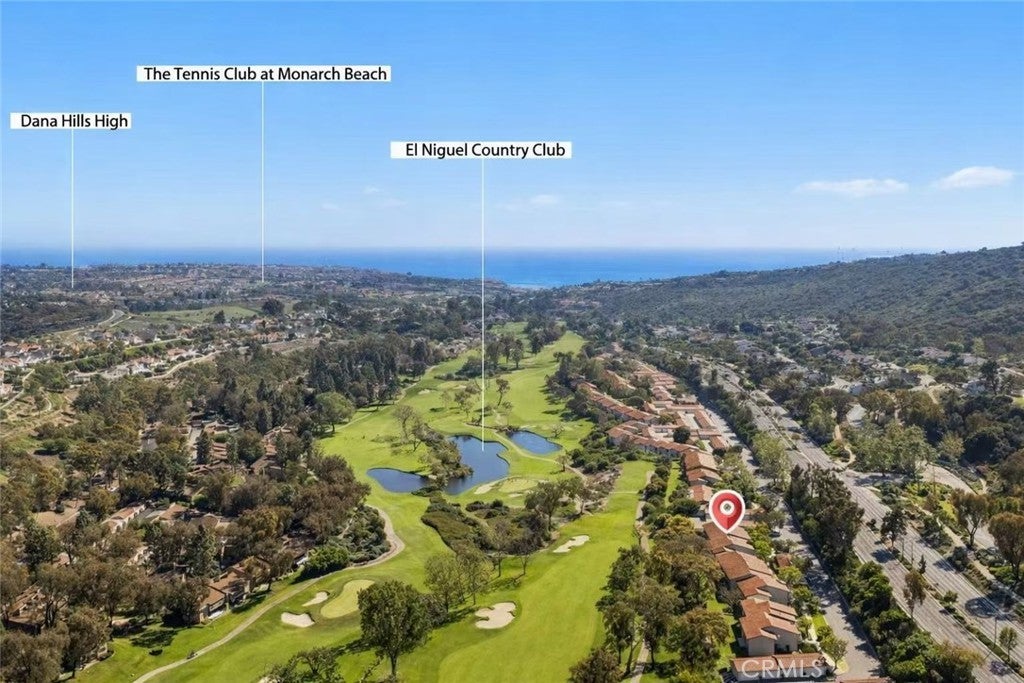 VIEW! VIEW! VIEW! One of the best view in the community! Wonderful opportunity to own this ground-level condo overlooking the beautiful El Niguel Country Club Golf Course, with serene views of the lush fairways, greenbelt, and mature trees. The home features a bright open-concept layout with a welcoming entry that flows seamlessly into the kitchen, dining area, and spacious living room. The living room opens through a large sliding glass door to a generously sized patio, creating an ideal indoor-outdoor living experience. From the patio, enjoy peaceful golf course views framed by mature trees and lush landscaping. The remodeled kitchen showcases beautiful new cabinetry, new countertops, and stainless steel appliances, opening directly to the dining area and living space, making the layout both functional and inviting. The well-designed floor plan offers 3 bedrooms and 2 bathrooms. One bedroom is positioned on one side of the home with a nearby bathroom and enjoys views toward the golf course and greenery. On the opposite side are two additional bedrooms and a second bathroom, with one currently set up as a home office but easily functioning as a third bedroom. Additional features include hard flooring throughout with no carpet, LED recessed lighting and ceiling fan installed in every room, and dual-pane windows and sliding patio doors that bring in abundant natural light. The property includes a detached two-car garage nearby with ample guest parking. HOA dues cover water and trash services. No Mello-Roos tax. The community features beautifully maintained landscaping throughout. Ideally located just minutes from Dana Point Harbor, Laguna Beach, Salt Creek Trail, beaches, parks, shopping, dining, schools, Pacific Coast Highway, toll roads, and world-class resorts including Waldorf Astoria, Ritz-Carlton, and Montage.