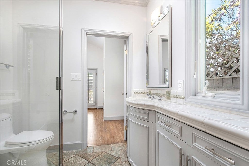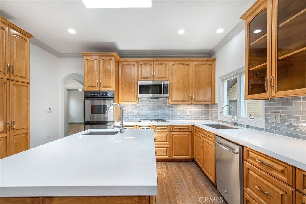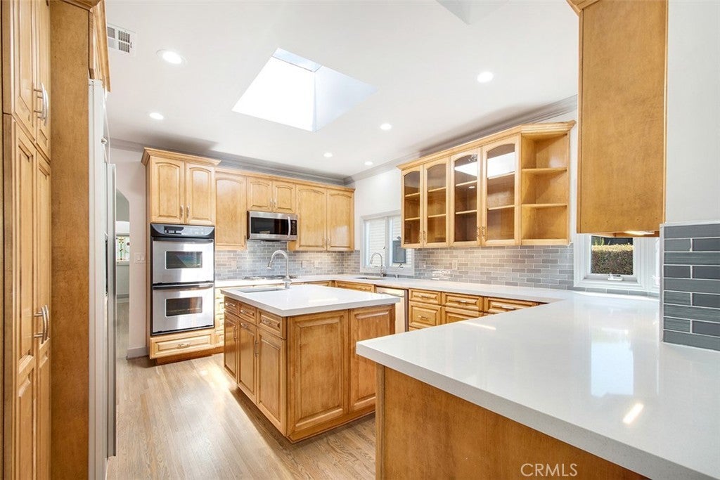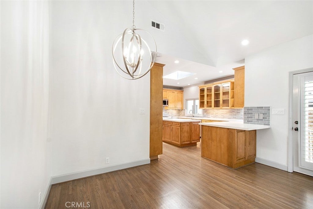 WELL MAINTAINED BEAUTIFUL SPANISH DESIGN SINGLE FAMILY HOME IN THE HEART OF WEST HOLLYWOOD! Completely Upgraded throughout. Enter into this beautiful home with REAL HARDWOOD FLOORS THROUGHOUT THE HOME! As you enter into the Formal Living Room with a Wood Burning Fireplace. HUGE and very OPEN UPGRADED Kitchen with NEW QUARTZ COUNTERS, GLASS BACKSPLASH AND CABINTRY --LOTS OF CABINETS FOR STORAGE. All Stainless Steel appliances. NEW GAS COOKTOP, Microwave and Dual Oven. Dishwasher and Refrigerator. HUGE CENTER ISLAND with a Single Basin Sink and lots of STORAGE. Skylight in the Kitchen brings in lots of NATURAL LIGHT! Home comes with WASHER AND DRYER (in Kitchen in cabinets). Great BREAKFAST BAR with room for a couple of bar stools. GREAT AREA FOR ENTERTAINING! OPEN from the Kitchen is the very SPACIOUS, LARGE FAMILY ROOM WITH A SEPARATE AREA FOR YOUR DINING ROOM. This room has a big closet for more storage. Very HIGH VAULTED CEILINGS IN Family room with recessed lights. You have 2 BACK Doors off the Family room which makes it great for ENTERTAINING and access to the very "private backyard with grass, rose garden with a patio for outside dining". The other door provides access to the extra wide driveway. The home has 2 MASTER SUITES (both EN-SUITES) with HIGH CEILINGS AND CEILING FAN, MIRRORED CLOSETS (very deep closets). The larger Master Bedroom Bathroom has a Tub/Shower combo and a Skylight bringing in lots of NATURAL LIGHT. The other Master Bedroom is a Jack and Jill shared with the Family room and has a "large, enclosed shower" 3/4 shower. Both bathrooms are very spacious! ALL UPGRADED! OTHER FEATURES: NEW 2 ZONE AC!! ALL RAISED CEILINGS THROUGHOUT! SHUTTERS ON BACK WINDOWS. LOTS OF WINDOWS THROUGHOUT BRINGING IN LOTS OF NATURAL LIGHT. AUTOMATIC GATE OPENER. ROSE GARDEN IN BACKYARD. GRASS AREA! GARDENER INCLUDED! Access to a SINGLE CAR GARAGE **FOR STORAGE ONLY** One of the best locations in West Hollywood. Close Proximity to fine dining & shopping. This home is located steps to Beverly Hills and West Hollywood favorites such as Cragis, Cecconi's, Gracias Madre, Robertson Plaza.