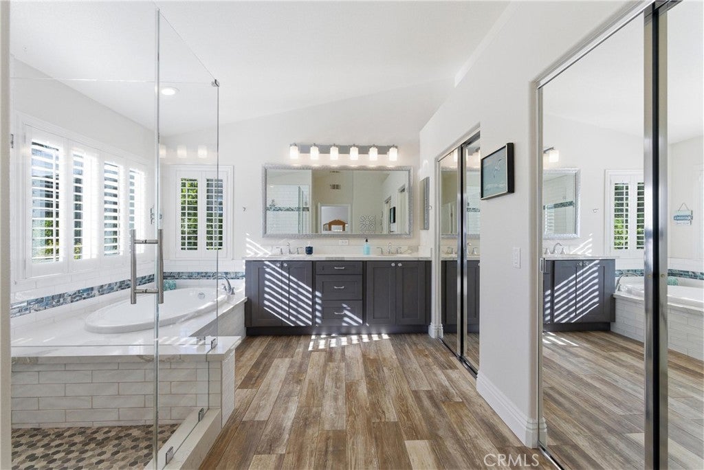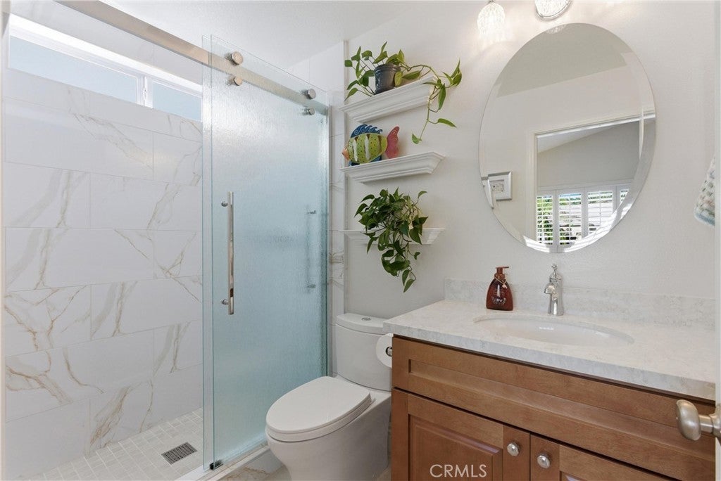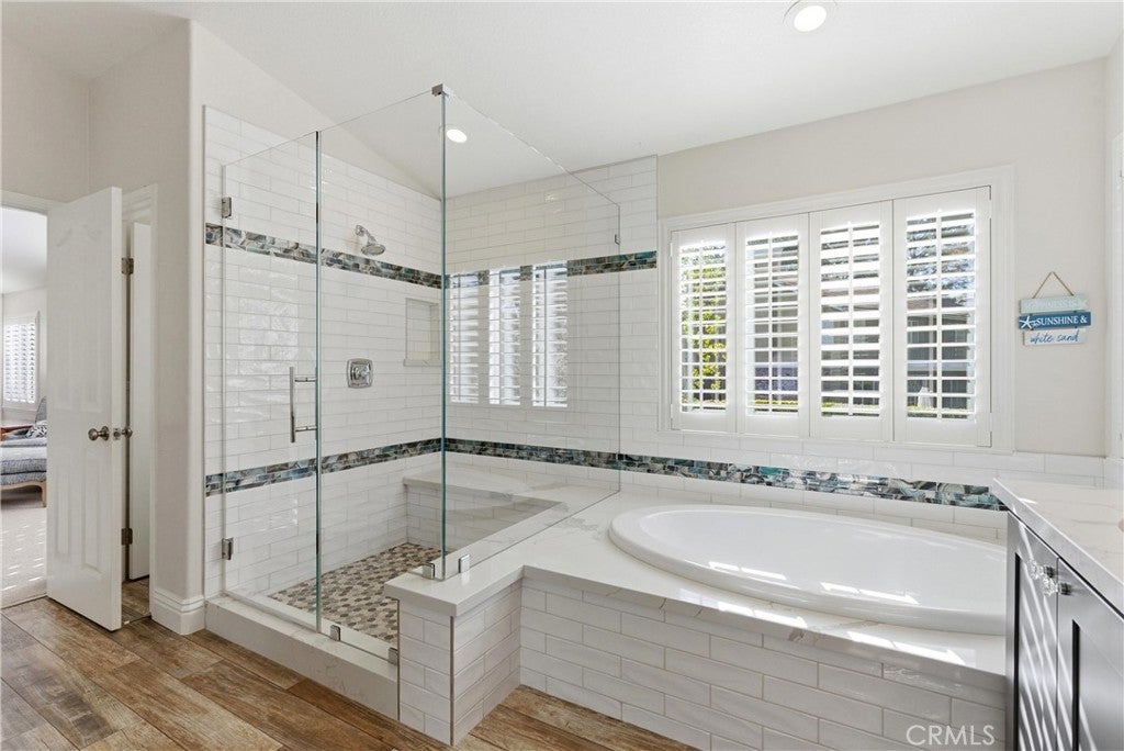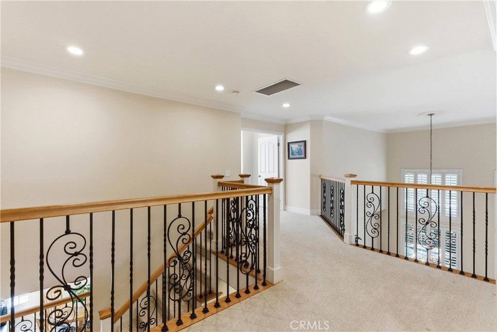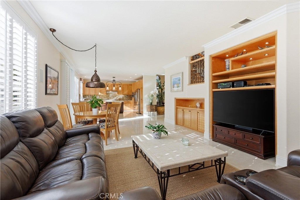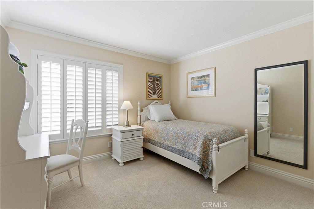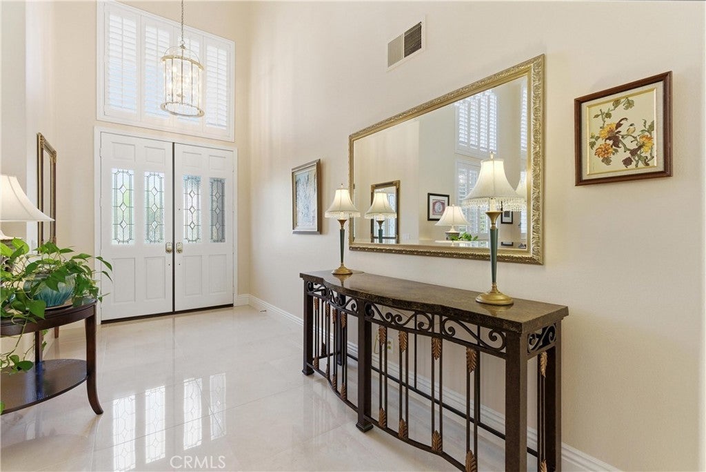 Nestled at the end of a quiet cul-de-sac in the prestigious gated community of Canyon Crest, this meticulously maintained residence showcases true pride of ownership and a rare level of privacy. Spanning 3,400 square feet on an oversized 8,050 square foot lot, a size seldom found within the neighborhood community, the home offers an expansive environment designed for both sophisticated living and grand-scale entertaining. The backyard serves as a private oasis, featuring a saltwater pool with solar heating and a spa, all framed by beautifully curated landscaping that extends to the front of the property. Inside, the open floor plan is bathed in an abundance of natural light and accented by plantation shutters throughout. The gourmet kitchen is a chef’s delight, featuring stainless steel appliances, sleek soft-close shaker-style cabinetry, and a beautiful blend of granite and quartz countertops. The main level is thoughtfully designed for accessibility and versatility, offering a downstairs bedroom and full bathroom with no steps, perfect for guests or multi-generational living. The second level is equally impressive, featuring brand-new carpet and a large bonus room that provides flexible space for a home office, bonus room, or play area. The spacious primary suite is a dedicated retreat, boasting two walk-in closets and a spa-inspired bathroom complete with a soaking tub, a large walk-in shower, and a dual vanity featuring slow-close cabinetry and quartz finishes. The home’s exceptional maintenance is further evidenced by significant high-value upgrades, including a full repipe with PEX piping and a circulating pump for instant hot water throughout. Modern comforts are integrated throughout the home, including a whole-house fan for energy-efficient cooling and ample storage solutions to keep the living spaces organized and serene. From the pristine interior finishes to the resort-style exterior, this home represents a premier opportunity to experience the very best of the Mission Viejo lifestyle. PLUS, this property is less than a mile from the beaches, boats, and summer concerts on Lake Mission Viejo, and it is zoned for the award-winning schools of Capistrano Unified.