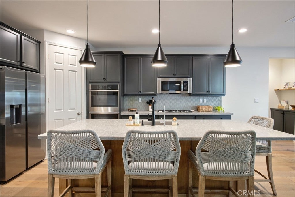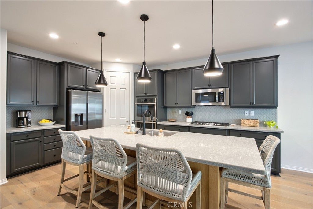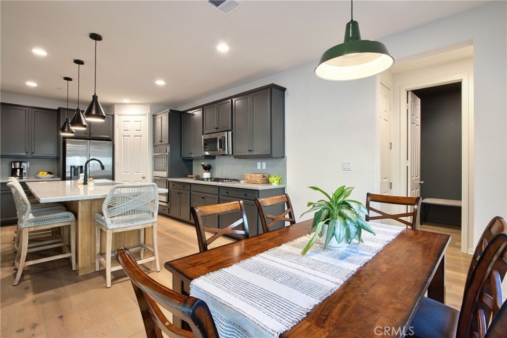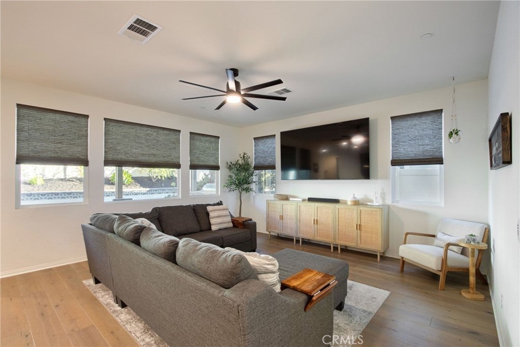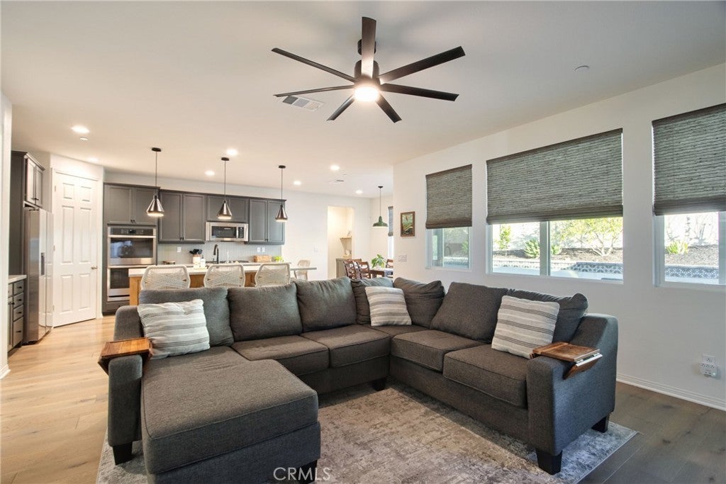 Welcome to the beautiful Sommers Bend community in the heart of Temecula. This spacious 4-bedrooms home, with a den that can easily serve as a 5th bedroom, offers the perfect combination of comfort, style, and everyday functionality. Even better, the home comes with paid-off solar panels, helping you enjoy energy efficiency from day one. As you enter the home, you’ll immediately notice the warm and welcoming feel created by the gorgeous white oak wood flooring throughout the downstairs and the abundance of natural light that fills the space. The thoughtfully designed floor plan includes a convenient downstairs bedroom and full bathroom, perfect for guests or multi-generational living. The den provides flexible space that can be used as a home office, playroom, or additional bedroom depending on your needs. The heart of the home is the open and inviting kitchen, featuring stainless steel appliances, a double oven, walk-in pantry, quartz countertops, and a large center island that doubles as a breakfast bar. It’s a wonderful space for cooking, gathering, and entertaining family and friends. Upstairs, you’ll find three additional bedrooms, including the spacious primary suite with a walk-in closet and a relaxing en suite bathroom with dual sinks, a soaking tub, and a separate shower. One of the secondary bedrooms even includes its own walk-in closet. The upstairs also offers a large laundry room with sink and cabinetry, adding convenience to your daily routine. Step outside to your private backyard retreat, where you can relax under the covered patio or host gatherings around the BBQ island and fire pit while enjoying the peaceful sound of the fountain. The backyard also features low-maintenance artificial grass and a side yard ready for your garden plus self watering feature with low maintenance for your plants. The 3-car tandem garage provides plenty of room for parking, storage, or even a workshop or hobby area. Living in Sommers Bend means enjoying wonderful community amenities, including a clubhouse, resort-style pool, event spaces, a 21-acre sports park, fitness center, and scenic walking trails, all within a friendly and welcoming neighborhood. This exceptional home truly offers the best of Temecula living. Come see it for yourself and imagine making it your forever home. Seller is offering a $20,000 credit toward buyer’s closing costs or interest rate buy-down.