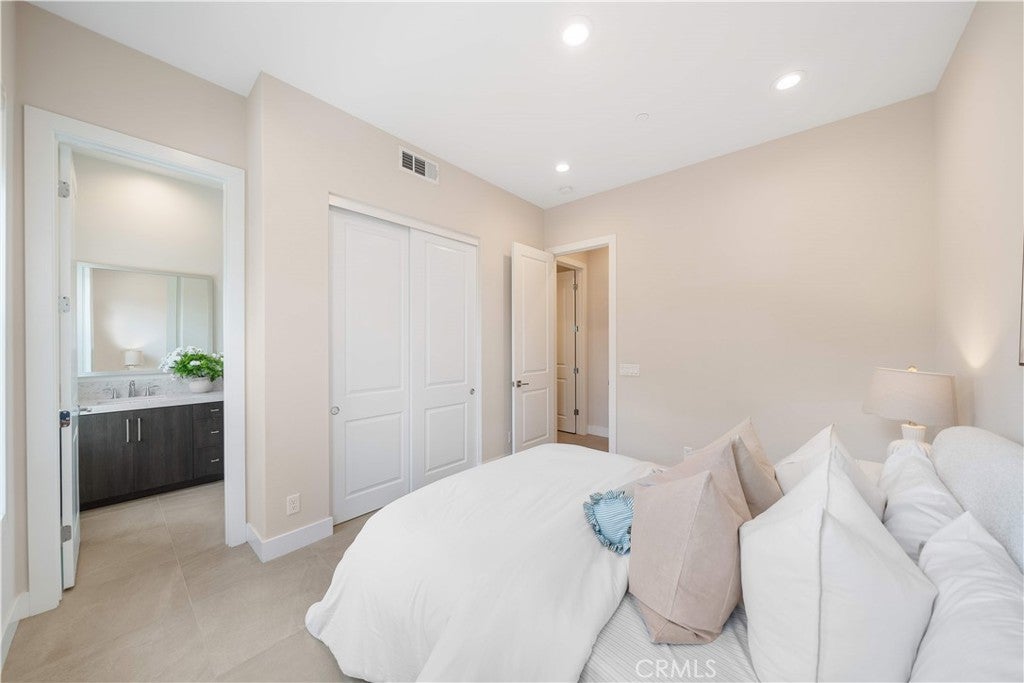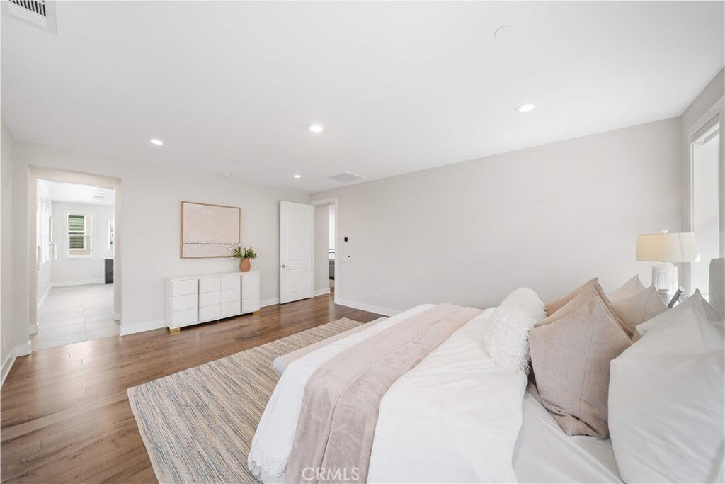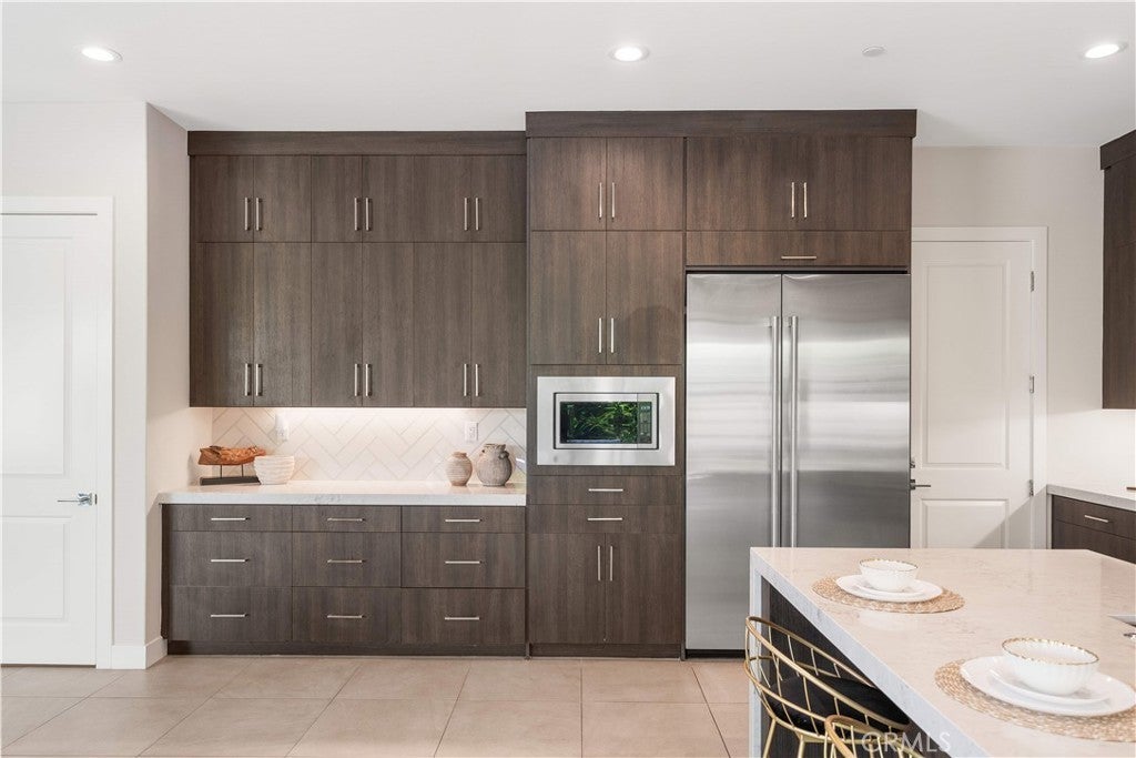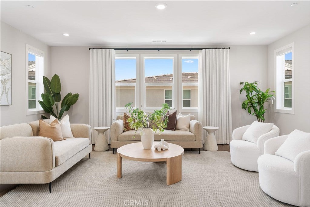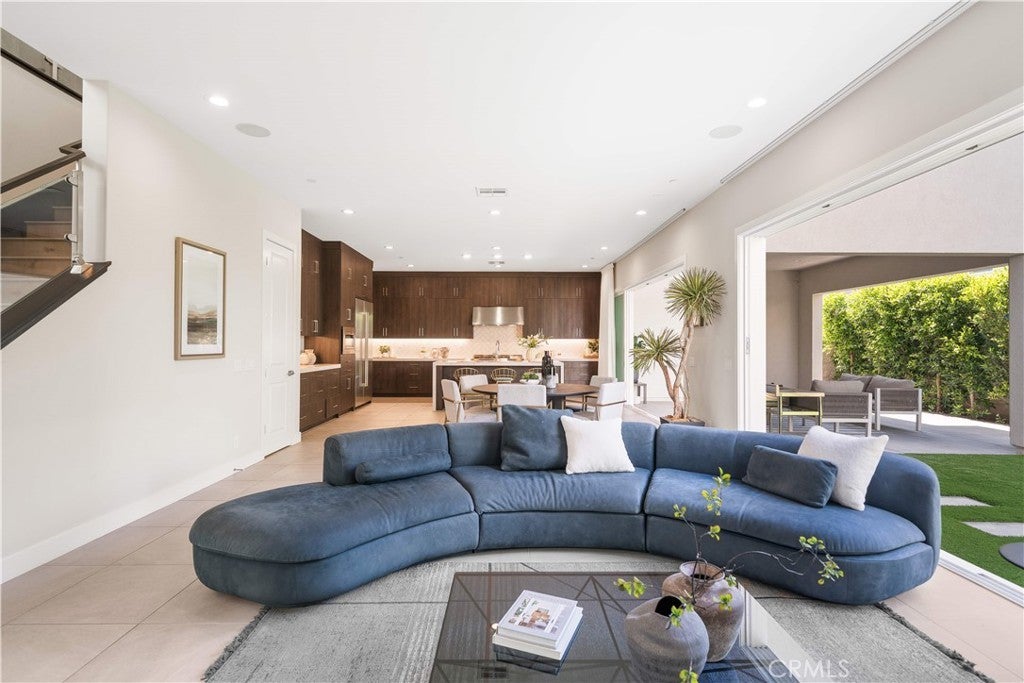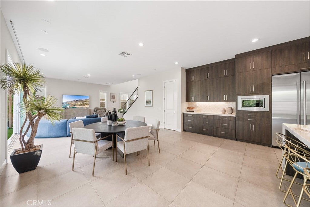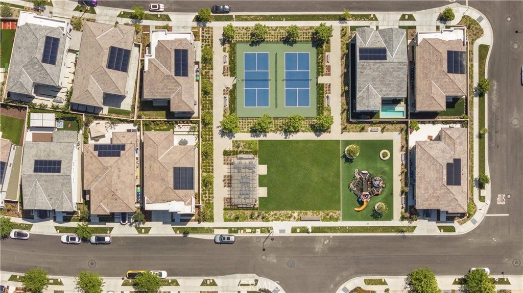 A truly exceptional opportunity in one of the most desirable front-row locations in The Meadows, this exceptional Toll Brothers Beechwood residence offers direct park and resort-style pool views with rare privacy and no homes directly in front. Featuring over $400,000 in architectural and designer upgrades, the home combines luxury finishes, an enhanced layout, and abundant natural light throughout.Perfectly positioned across from the community clubhouse, pool, and park, the residence showcases large-format designer tile flooring, engineered wood flooring upstairs, and a modern staircase with sleek glass panel railings, creating a bright and contemporary living environment.Located in the highly desirable Evergreens at The Meadows, the home welcomes you with an extended front porch and dramatic two-story foyer opening to a bright flex room and an expansive great room designed for modern living and entertaining. The gourmet chef’s kitchen features a waterfall-edge center island, quartz countertops, upgraded cabinetry, and professional-grade stainless steel appliances including a built-in oversized refrigerator, 6-burner gas cooktop, built-in oven and microwave, and a spacious walk-in pantry.A first-floor bedroom with en-suite bath provides flexibility for guests or multi-generational living. Upstairs, the primary suite offers a large walk-in closet and spa-inspired bathroom, while secondary bedrooms each include private bathrooms and generous closets centered around a spacious loft.Additional highlights include paid-off solar panels, EV charging readiness, powder room, laundry room, and ample storage. The property also benefits from No Mello-Roos and a low property tax rate of approximately 1.06%.Residents of The Meadows enjoy resort-style amenities including pools, spas, a dog park, and community gathering and co-working spaces, with convenient access to Irvine, major freeways, shopping, and dining.