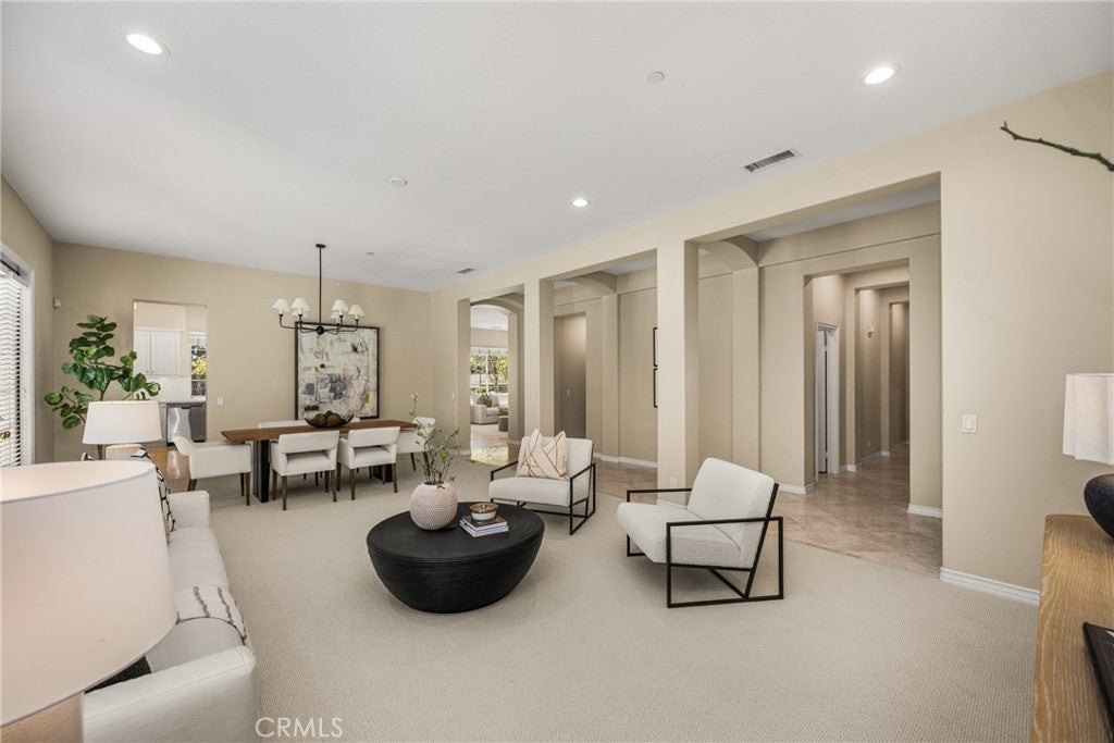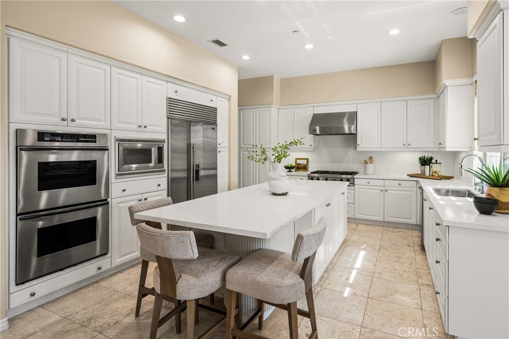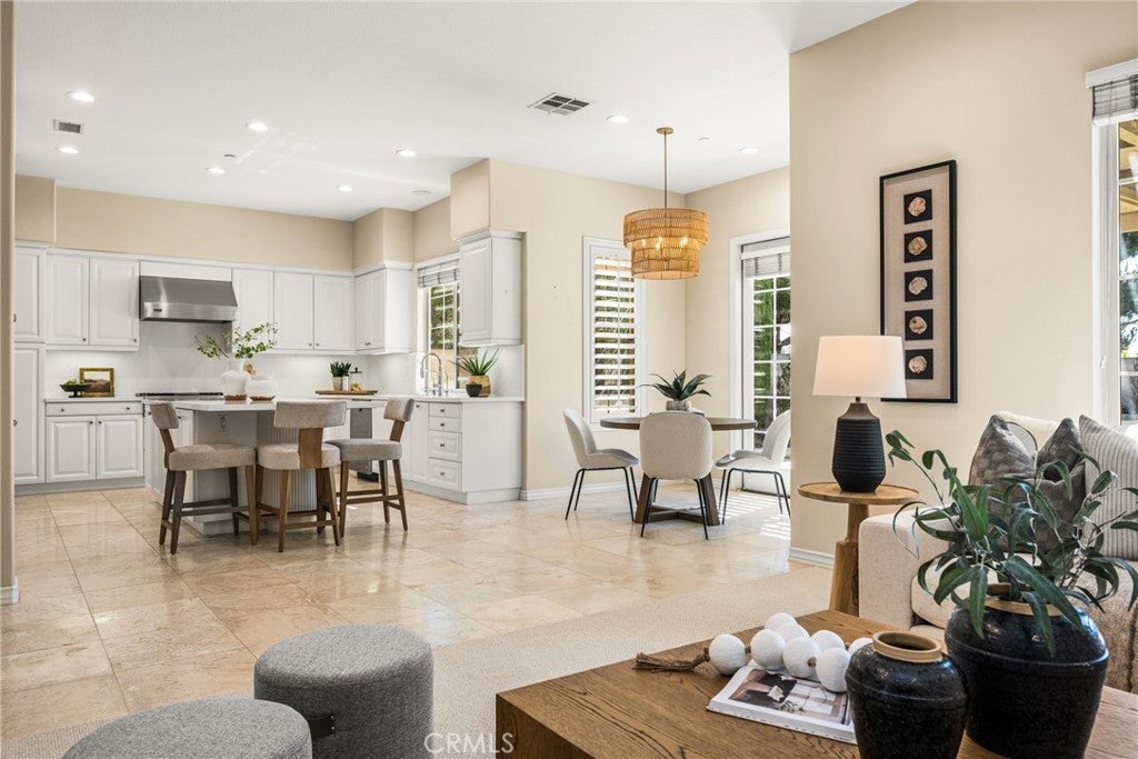 Nestled within the prestigious gated enclave of Emerson, this beautifully refreshed single-story VIEW estate offers refined living, privacy and an exceptional lifestyle in one of Tustin Ranch’s most sought-after communities. 10533 Emersond Bend is approximately 3,318 square feet and is perched upon an expansive 11,000 square foot lot. The thoughtfully designed floor plan offers private living wings creating an opportunity for extended family to have their own space. The home features four spacious bedrooms, a dedicated office and 3.5 bathrooms. Upon entering, guests are welcomed by elegant travertine flooring, fresh neutral paint, brand-new neutral carpet and newly upgraded lighting throughout. The light-filled kitchen is appointed with white cabinetry, brand-new quartz countertops, a new stainless steel sink/faucet, stainless steel appliances, built in SubZero refrigerator and a premium Viking cooktop & hood—creating a stylish and functional space for everyday living and entertaining. Double doors from the kitchen open to the backyard, creating seamless indoor-outdoor flow. The bedrooms are thoughtfully positioned throughout the home for privacy, all feature their own en-suite bathrooms, creating comfortable retreats for family and guests. The spacious primary suite serves as a private sanctuary and features double doors that open to the backyard showcasing peaceful views. A large laundry room provides additional practicality and storage. Step outside to a private backyard retreat designed for entertaining and relaxation. Enjoy a spacious covered patio seating area, a large grassy lawn, a fire pit lounge area, built-in barbecue center and plenty of space to add a pool if one desires. The backyard captures tranquil views overlooking the community’s avocado groves along with a peekaboo skyline view. Additional highlights include a two-car garage plus a separate single-car garage which can be turned into additional living space, along with newly refreshed landscaping in both the front and backyard. Ideally located near the scenic hiking and biking trails of Peters Canyon Regional Park, top-ranked schools, and the exceptional shopping and dining at The Market Place and Irvine Spectrum Center. With convenient freeway access and a central Orange County location, this home offers easy proximity to Newport & Laguna coastal beach cities, Anaheims baseball and hockey venues, South Coast Plaza/Fashion Island shopping and world-class Segerstrom performing arts.