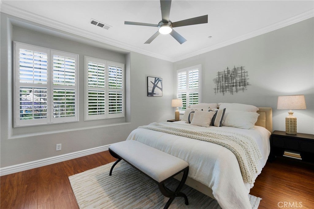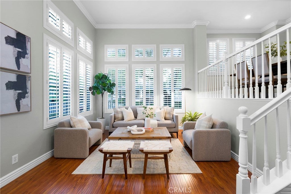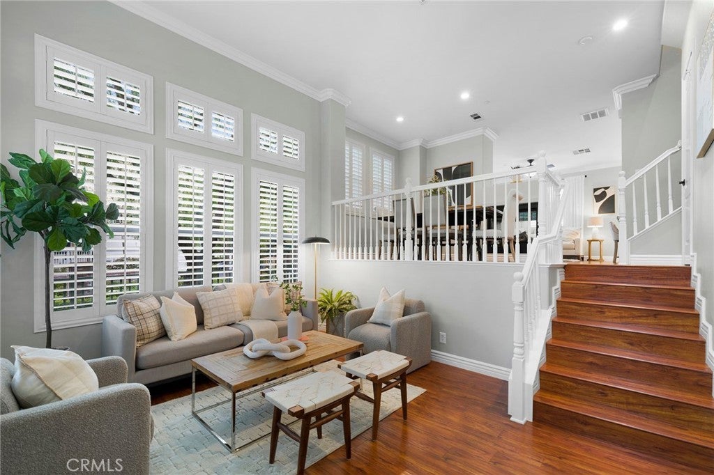 **HIGHLY DESIRABLE END UNIT and RARELY AVAILBLE PARK-FACING LOCATION** This timeless style home offers an abundance of natural light, park-facing, and 1,761 square feet of living space with 3 Bedrooms and 2.5 Baths. As one of the most sought-after floor plans and locations in Briar Rose, it has high ceilings with a separate formal living room and dining room featuring a peninsula fireplace adjacent to the family room and gourmet-style kitchen. The kitchen features an oversized island perfect for entertaining and is equipped with stainless steel appliances, generous cabinet space, subway tile backsplash and beautiful granite counter tops. The primary bedroom has a dual entry walk-in closet and primary bath with dual sinks with separate soaking tub and shower. Charming secondary bedrooms are both light and bright with generous closet space; full hallway bath adjacent. Dedicated upstairs laundry room with linen cabinet and folding counter offer ample storage space. The generously sized 2-car garage includes a bonus storage area. As you tour the home, you will also find many upgrades which include crown molding, tall baseboards, quartz counter tops in bathrooms, hardwood style and ceramic flooring, plantation shutters, recessed lighting, custom paint, tankless water heater and re-piped with Pex piping. Walking distance to Oso Grande Elementary. Enjoy the award-winning community amenities that Ladera Ranch has to offer!