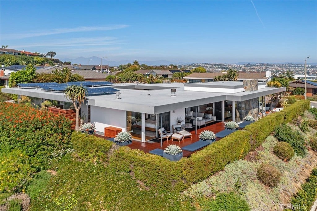 This architectural gem was custom designed by Harold B. Zook, in the 1960s and draws inspiration from the Eichler-style movement of the central open-air atrium exemplifying the timeless “indoor/outdoor” concept. Large windows and doors of glass, voluminous rooms, and striking open spaces showcase spectacular panoramic ocean views, including beach and whitewater waves crashing below the Ritz Carlton & The Dana Strand. Home was taken down to the studs and completely rebuilt over a 3 year period when it was upgraded to current code and maximum efficiency. Finishing the project in 2018, the owners stayed true to the original design but used all new materials and high end technology. A lot line adjustment with the house next door was approved and increased the lot size to 12,546. The 5th bedroom was opened to the outdoors to create a California Room. Walls were removed in the kitchen/dining areas to create a double kitchen island and bar seating for 8. Twin wine coolers, beer fridge, and extra fridge and ice makers are found at the cocktail/bar area. Wolf Range, Subzero Fridge and coffee bar at main kitchen area. Terrazzo floors, Walnut paneling and "Rift Cut" White Oak floors and cabinetry, Cantara home automation and Fleetwood windows and doors. All outdoor decking that completely surrounds the home is IPE (also known as Ironwood). Spectacular landscape design by Mike Sullivan. The home is ideally situated on a quiet and premium location in MBT and retains design elements of a bygone era. A highly desirable single-level residence that is fresh and inviting from the moment you enter as the rooms/spaces seamlessly flow from one to another. The 4 bedroom, 5 bath residence features 3 en suite bedrooms plus 2 powder baths featuring gorgeous Heath tile, including the master suite with an ocean-facing deck to enjoy Catalina Island and magnificent year-round sunsets. This is one of the larger homes offered in the community and captures ocean views from nearly every single room.