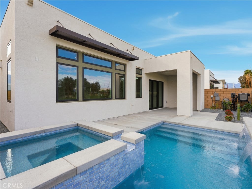 Welcome to NOLA at Escena, a modern new community in Palm Springs where contemporary architecture, resort-style amenities, and a premier golf course setting define desert luxury. Ideally located just minutes from downtown Palm Springs, dining, and Palm Springs International Airport, NOLA offers the perfect blend of style, comfort, and convenience. Homesite 12 – The Pablo floorplan with Mid-Century exterior elevation is a stunning new construction home. This 2-bedroom, 3-bath residence features a spacious great room with an upgraded 15' x 8' multi-stack sliding door, fireplace, and wet bar, creating the perfect space for entertaining and indoor-outdoor living. The thoughtful layout includes a large open flex room that enhances the home’s airy feel, a private exterior entrance to Bedroom 2, and a convenient interior wet bar. The primary suite offers a spa-inspired bath complete with a Hydrorail shower column. Enjoy the ultimate desert lifestyle outdoors with a large upgraded flush pool and spa, outdoor fireplace, and seamless indoor-outdoor flow. Community amenities include walking trails, a dog park, and access to the Escena Golf Club’s renowned mid-century clubhouse and restaurant.