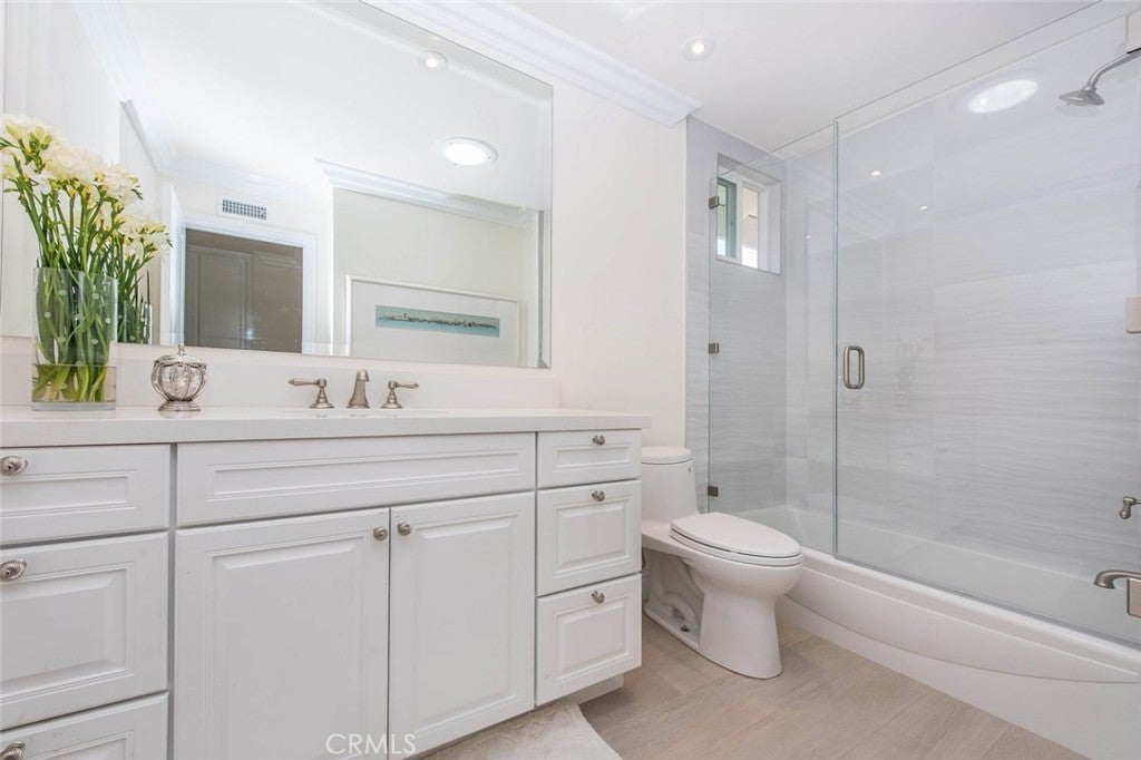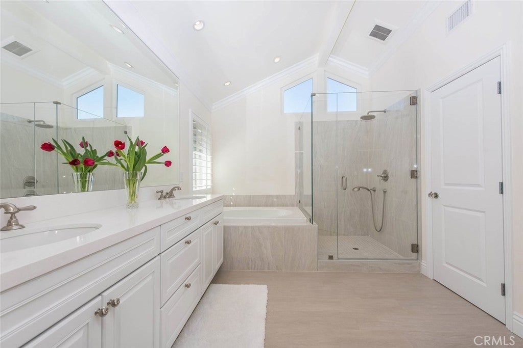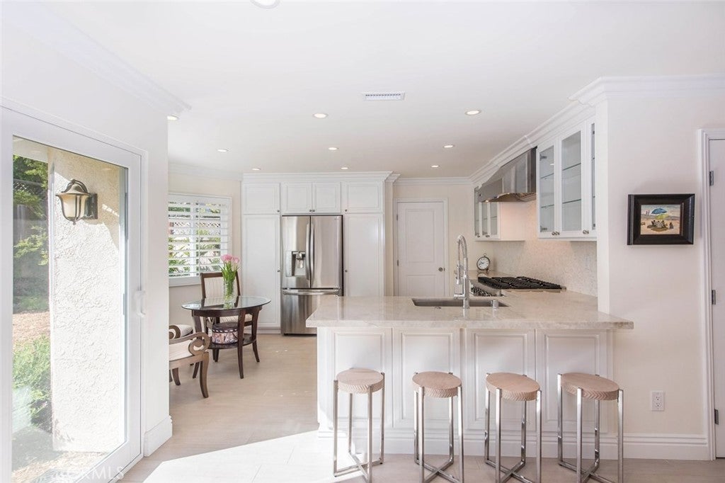 This home definitely has the WOW factor! No stone is unturned in this complete remodel from top to bottom! A perfect floor plan with one bedroom and bath down and single level (no steps) downstairs living. Hundreds of thousands have been spent making this like brand new. Enter your home through the "dutch" doors to a room full of light and charm with volume ceilings, added solar tubes, new vinyl windows & patio door, plantation shutters, and recessed lighting. The downstairs has the newest "wood-like" tile floors and upstairs the plushest carpet ever! Doors have been replaced, custom crystal styled doorknobs, all bathrooms with quartz counters, new low-flow toilets & shower heads, all new lighting and cabinets, tubs and showers......need I go on? Even the laundry room has quartz counters at the deep sink. And you can't beat this kitchen with granite counters, custom cabinetry with pull out drawers and glass doors, VIKING appliances include a 6 burner commercial-style range & hood. Casual breakfast nook, formal dining or "bar eating" in the kitchen. All new baseboards, crown molding, lighting and more. The master bath is something to see! Dual sinks, soaking tub, extra-large shower, private toilet room, walk-in closet and all top-end upgrades. This environmentally friendly backyard is oversized and loaded with color! All of this and the Northwood High School District too! No pets please, don't ask, sorry!