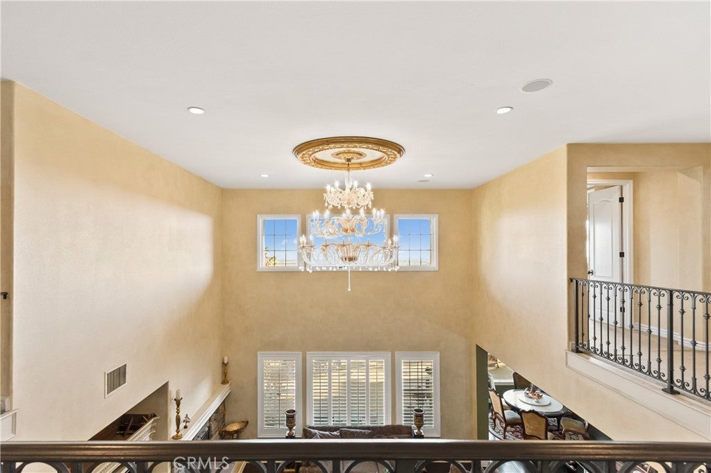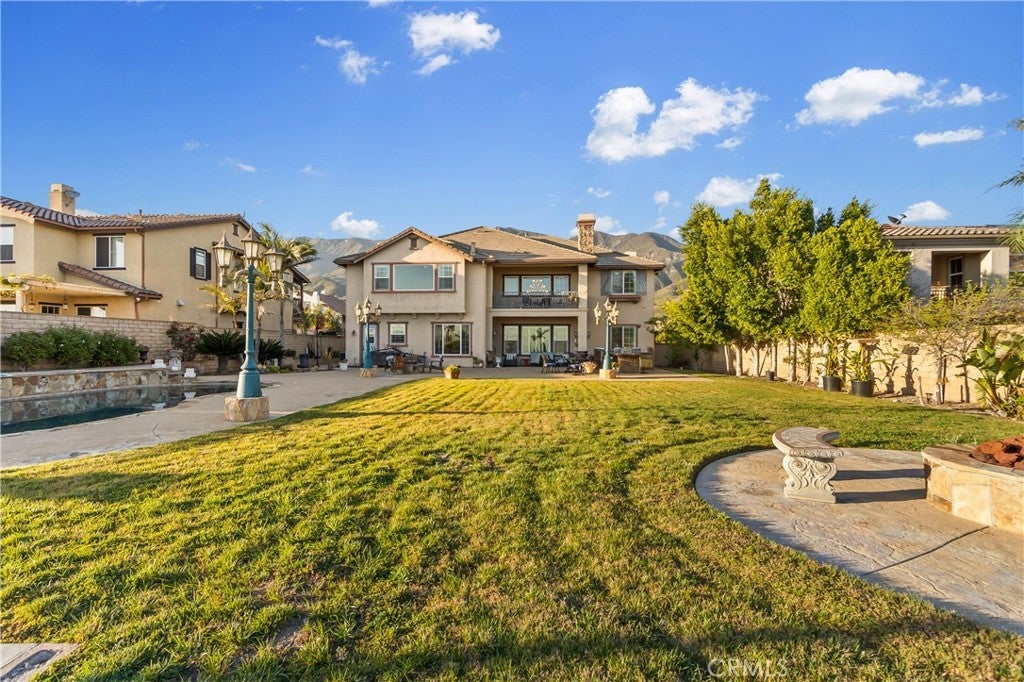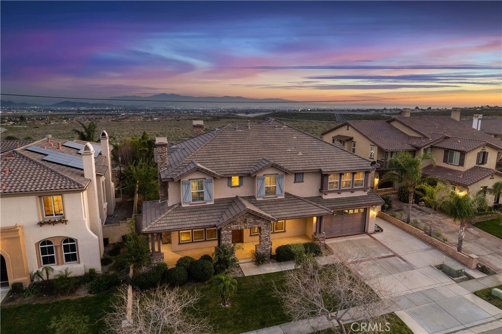 Perched in the prestigious North Etiwanda community of Rancho Cucamonga, this north facing view home showcases breathtaking panoramic city lights, sunset, and mountain views, including snow capped peaks during the winter months. Set on an expansive 0.37 acre lot, this luxury property offers exceptional privacy and a peaceful setting in one of the area’s most sought after neighborhoods. Inside the home features 4,297 sq ft of well designed living space with soaring ceilings, abundant natural light, and a spacious open floor plan ideal for modern living.The gourmet kitchen is equipped with granite countertops, a large center island, breakfast bar, stainless steel appliances, and a built in refrigerator, opening to expansive living and entertaining areas perfect for gatherings. Step outside to a resort style backyard designed for true indoor outdoor living, complete with a sparkling pool, multiple fire pits, seating areas, and glass view fencing that captures sweeping city lights and vibrant sunset views across the valley, an ideal entertainer’s backyard. A rare opportunity to own a panoramic view home offering space, privacy, and elevated living in one of Rancho Cucamonga’s premier neighborhoods.