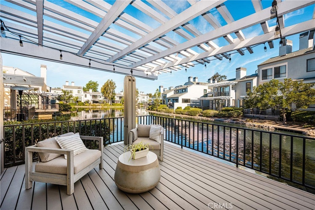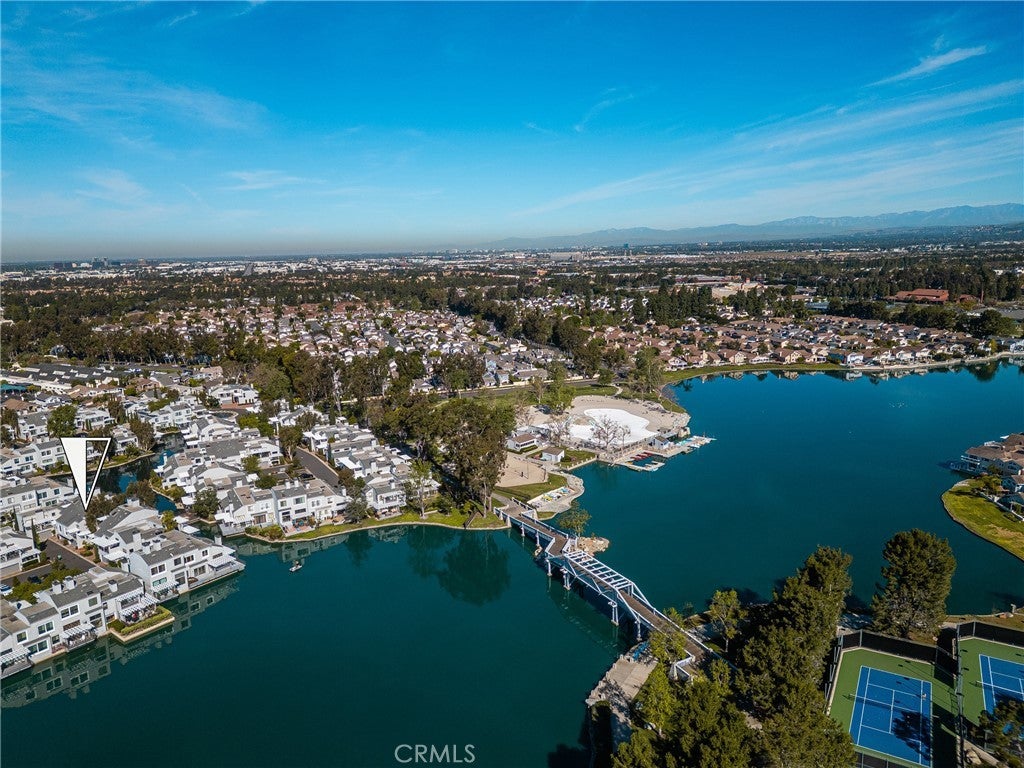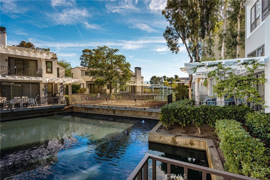 Beautiful waterfront residence in Irvine’s highly sought-after Woodbridge community, offering tranquil lagoon views and exceptional lake proximity in one of the neighborhood’s most desirable locations. This spacious 2-bedroom, 2-bath home with approximately 1,947 square feet features dramatic architecture, vaulted ceilings, and abundant natural light throughout. Step into the inviting living room showcasing soaring vaulted ceilings, luxury vinyl plank in the kitchen and wood flooring throughout, except freshly laid carpeting in primary suite. , and a fireplace, creating a warm and open atmosphere ideal for both everyday living and entertaining. The multi-level layout adds architectural character while large windows fill the home with natural light. The remodeled kitchen is thoughtfully designed with quality finishes and premium appliances, including a Viking range top, Wolf exhaust hood, Dacor double ovens, Thermador refrigerator freezer, and Bosch dishwasher. The space also features white shaker cabinetry, quartz countertops, faucets by Newport Brass, and a 7-stage reverse osmosis water filtration system, combining functionality with clean modern design. The kitchen opens to the dining area and breakfast bar, creating an ideal layout for gatherings and daily living. Close to South Lake beach. Upstairs, the primary suite offers generous space, high ceilings, and peaceful lagoon views, along with a spacious en-suite bathroom featuring dual vanities, a soaking tub, and a large walk-in closet. Additional highlights include a spacious interior laundry room with utility sink, recessed lighting, and a large two-car garage with storage. Also plenty of guest parking. One of the home’s standout features is the large waterfront deck overlooking the lagoon, providing a peaceful setting for relaxing or entertaining. From the deck, you can look across the water and see the iconic South Lake Woodbridge bridge, one of the community’s most recognizable and picturesque landmarks. Located in the resort-style Woodbridge community, residents enjoy access to two lakes with docks and beach lagoons, multiple pools, tennis courts, pickleball courts, parks, and scenic walking paths, all within the award-winning Irvine Unified School District. A rare opportunity to enjoy waterfront Woodbridge living with lagoon views and close lake proximity in the heart of Irvine.