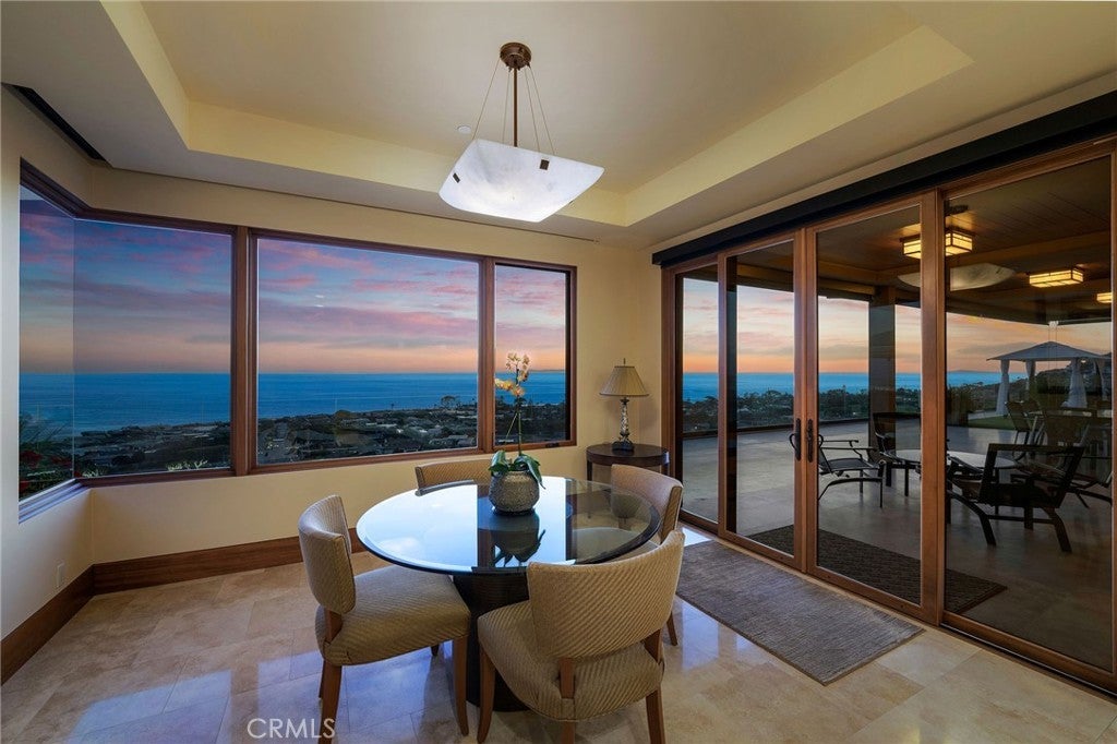 Absolutely one of the finest and most "meticulously maintained" custom built, soft-contemporary single level residences on the market today in the coveted "Ocean-close community" of Monarch Bay Terrace! This "newly constructed" custom home is positioned on a 19,000+sqft site and offers spectacular panoramic ocean & "white water" views, inclusive of the Salt Creek beach shoreline, Catalina Island, the Waldorf Monarch Beach Golf Course and the Emerald Ridge greenbelt! This approximate 3900sqft residence consists of 4 bedrooms, 4 bathrooms, (inclusive of a private entry guest casita w/patio), 2 fireplaces (one wood burning), oversized 2-car garage, vaulted ceilings, a very open and spacious floor plan offering an incredible abundance of natural light & spectacular ocean and coastal views, a 39-foot wide covered loggia featuring a Weiland bi-fold door system, 9 skylights--3 motorized, custom electric sunscreens and an "outdoor grilling station" with a Wolfe 36-inch grille and side burner. Additional custom features include: Subzero, Wolfe and Miele appliances, whole-home interior fire sprinkler system, Hansgrohe faucets, premium Navien tankless water system, a 24-panel solar system, exterior copper light fixtures, custom Mahogany cabinetry doors, baseboards and a tongue & groove Mahogany ceilings. Natural Stone Materials include: Travertine, Emperado, Cafe Forest & Calcutta Gold Marble, Black Galaxy & Mascarello Granite & Crema Limestone. Full stone slab showers and LumenAria Faux Alabaster Interior Light Fixtures. The amenities are difficult to exhaust! This incredible custom designed & built residence contains mechanical, electrical and drainage systems designed for "long term" performance and "low maintenance" coastal living. This residence is located within minutes of both the Ritz Carlton and Waldorf Astoria Resorts & the renowned Salt Creek Beach! Equally close is the Montage Resort & the Dana Point Harbor and the Lantern District containing numerous dining and shopping establishments. Nearly every component of this home was deliberately selected & engineered far beyond standard practice, that is felt more than it is announced. The "floor plan" and interior spaces emphasize wide structural spans, an abundance of natural light, and seamless indoor/outdoor transitions oriented toward the panoramic ocean and Catalina Island views. Truly a phenomenal opportunity located within the coveted coastal community of Monarch Bay Terrace!! THIS IS NOT A REMODEL!