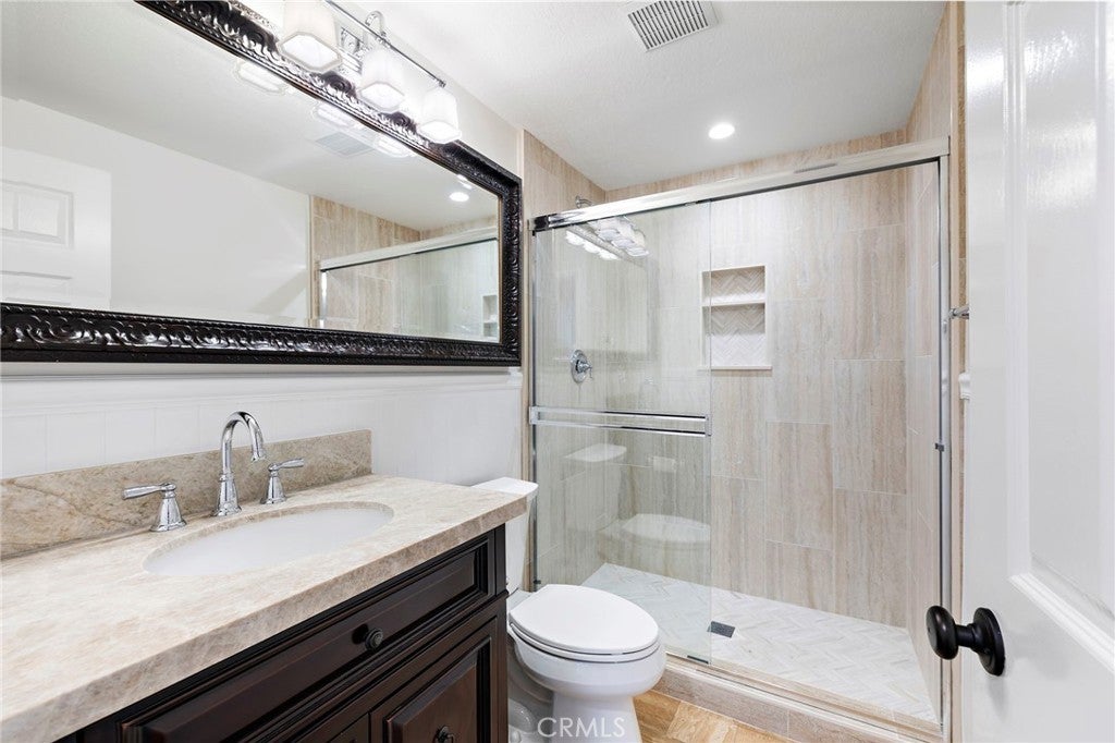 Experience elevated living and exceptional entertaining in this beautifully upgraded home on a quiet single-loaded cul-de-sac in the prestigious guard-gated Canyon Crest Estates of Mission Viejo. Enjoy breathtaking city lights views and front-row views of Mission Viejo’s Independence Day fireworks, all just moments from the clubhouse and resort-style amenities including pools, spa, sauna, tennis, pickleball, fitness center, playgrounds, BBQ and picnic areas, with 24-hour guard-gated security and roving patrol. Designed with quality and comfort in mind, the home showcases a remodeled chef’s kitchen featuring premium Thermador appliances including a double convection oven, five-burner gas cooktop and dishwasher, complemented by under-cabinet LED lighting and Hunter Douglas electric shades. Additional highlights include dual and triple-pane Milgard windows and doors, in-wall JBL surround sound, and zoned HVAC with separate upstairs and downstairs thermostats and three remote controls. All three bathrooms have been stylishly remodeled with updated fixtures and finishes. The spacious primary suite offers remote-controlled Hunter Douglas shades and access to a private deck finished with a durable waterproofing system. The backyard is a true private resort, featuring a PebbleTec saltwater pool and spa with therapeutic jets, Pentair heating system and variable speed pump. The outdoor kitchen is fully equipped with a 32” Bull BBQ with rotisserie, griddle, dual burners, refrigerator, and sink with hot and cold water. Multiple covered entertaining areas include radiant heaters, a fireplace, and a large gathering structure for year-round enjoyment. Additional highlights include a brand new roof, fresh exterior paint, whole-house PEX repipe, drip irrigation, LED landscape lighting, garage storage, attic access, and a game room with refrigerated beverage drawers. Lake Mission Viejo membership enhances the lifestyle with access to boating, paddleboarding, seasonal events, and summer concerts. Ideally located near premier shopping, highly regarded schools, and convenient access to the 5 Freeway and 241 Toll Road, this exceptional residence offers the best of Southern California living.