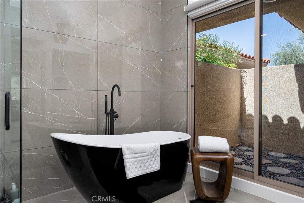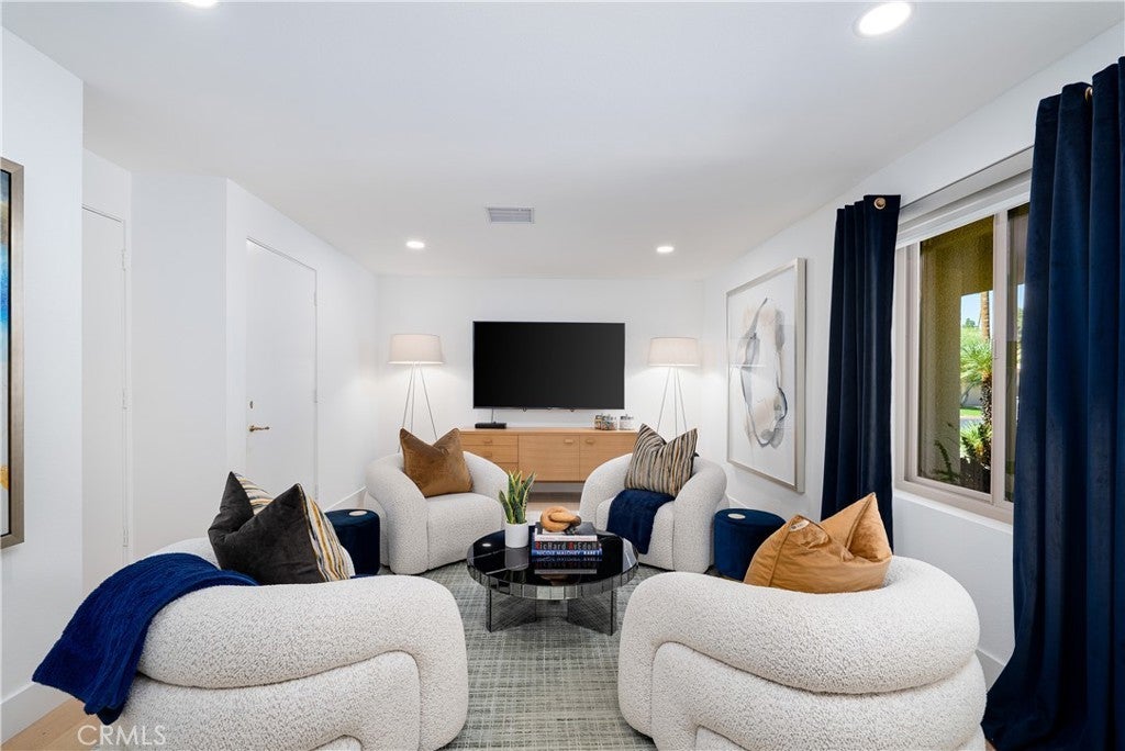 Discover unparalleled sophistication in this stunningly reimagined former model home, nestled within the prestigious Rancho Mirage Country Club. Spanning 3,250 sq. ft., this 3-bedroom, 3.5-bath masterpiece seamlessly blends timeless elegance with modern luxury. Showcasing rare red cedar tongue-and-groove vaulted ceilings in the entry, living room, stairwell, and primary suite, the home exudes warmth, character, and architectural charm. Every detail of this home has been thoughtfully designed and meticulously updated to create an inviting yet stylish retreat. The kitchen, a true chef's dream, boasts contemporary finishes, sleek cabinetry, an extended center island, and modern appliances. Perfect for entertaining or casual dining, this space effortlessly complements the open-concept floor plan. Wide plank white oak flooring graces the main living areas, while solid core oversized pocket doors connect each space seamlessly, flooding the home with natural light. No element has been overlooked in the home's extraordinary transformation. The bathrooms have been fully updated with modern fixtures and finishes, reflecting a refined design aesthetic. Fresh interior paint highlights a neutral, sophisticated color palette, while updated electrical systems, including can lighting, elevate functionality and ambiance throughout. Every room has been curated to balance style with comfort, making this home truly turnkey. Step outside and experience the ultimate in desert living. The backyard is a private oasis featuring a newly replastered pool and spa with updated tile, perfect for relaxation or entertaining. An integrated mister system ensures comfort even on the warmest days, while the inviting patio area provides a serene escape for outdoor gatherings or quiet solitude. Additional upgrades include energy-efficient windows, modernized flooring, and enhanced appliances and equipment, all designed to ensure an effortless living experience. Located within one of the desert's most coveted communities, this home epitomizes elegance, functionality, and attention to detail. Whether hosting lively gatherings or savoring peaceful moments, this property offers the perfect blend of beauty and practicality. Don’t miss this rare opportunity to own a home that is more than a residence—it's a sanctuary of style and sophistication. Your dream home awaits.