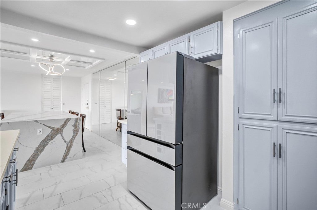 Wake up to sweeping panoramic views that capture the beauty of the Pacific Ocean, Catalina Island, and the sparkling city lights that define coastal Southern California living. Enjoy views from nearly every room in this beautifully updated two-bedroom, two-bath condo, offering a front row seat to some of Newport’s most breathtaking scenery, where sunsets melt into the ocean and evenings glow with dazzling night views stretching across the coastline. Designed for effortless indoor outdoor living, the open concept floor plan is filled with natural light and ocean breezes, creating a relaxed and inviting atmosphere that perfectly reflects the coastal California lifestyle. The spacious living areas flow seamlessly to a private balcony, an ideal place to enjoy morning coffee with Catalina on the horizon or unwind while the city lights begin to shimmer below. Inside, thoughtful upgrades bring a modern, elevated feel throughout the home, including designer lighting and updated flooring. The beautifully upgraded kitchen features quartz countertops and a custom backsplash. Just off the kitchen, the dining area is highlighted by an oversized island crafted from the same quartz, complete with striking waterfall edges that extend down the sides, creating a dramatic focal point perfect for gathering and entertaining. Additional conveniences include two parking spaces with an EV charger, a highly desirable feature for modern coastal living. Located within the gated Versailles community in Newport Heights, residents enjoy tranquil grounds with reflecting pools, fountains, tennis courts, BBQs, and access to a private clubhouse and fitness center. Just moments from scenic coastal trails, world-class beaches, and the vibrant shops and restaurants of the Balboa Peninsula, this home offers the perfect balance of serenity and convenience. Whether enjoying the ocean views by day, the glowing skyline by night, or the effortless walkability to the beach and nearby trails, this residence captures the essence of the Orange County coastal dream.