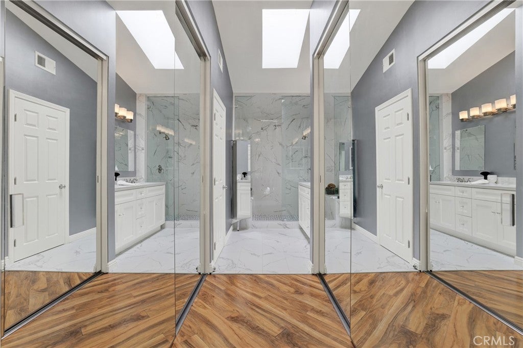 Nestled within the Windwards enclave of Aliso Viejo, 69 Conch Reef presents a rare opportunity to own a beautifully appointed residence. This desirable two-story corner home shares only one common wall and showcases thoughtful design, where high-quality materials and refined finishes create an atmosphere of modern European-inspired elegance. Upon entry, soaring ceilings and an abundance of windows fill the home with natural light, framing picturesque views of trees and colorful skies. The living room exudes sophistication, centered around a gas fireplace with a marble surround and dramatic vertical space. The kitchen is equally impressive, featuring sleek marble countertops, upgraded stainless steel appliances, and custom storage tailored for both function and style. Upstairs, the spacious primary suite offers carefully integrated built-ins for organized living. The ensuite bath is a true retreat, complete with dual floor-to-ceiling mirrored closets, marble finishes, and a beautifully remodeled walk-in shower. Located down the hall, the private secondary suite is enhanced with thoughtfully designed built-ins—including a discreetly integrated refrigerator—making it ideal as a guest room, office, or flexible living space. Blending contemporary European design with versatility, this exceptional home caters to a variety of lifestyles. Ideally situated in the sought-after community of Aliso Viejo, residents enjoy access to top-rated schools and close proximity to Laguna Beach, Newport Beach, John Wayne Airport, scenic wilderness parks, and a wide array of amenities.