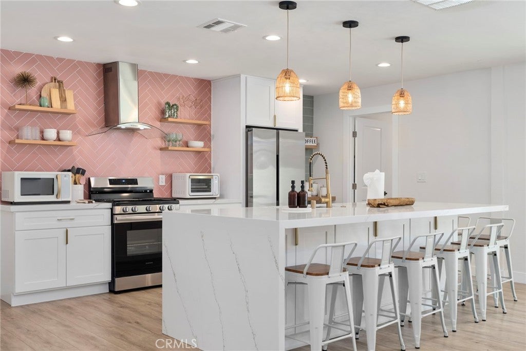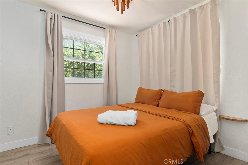 Welcome to this thoughtfully remodeled residence in the desirable Edna Park community. This four-bedroom, three-bathroom home has been fully renovated from the ground up, offering modern comfort, style, and functionality for today’s lifestyle. Inside, you’ll find open and inviting living spaces with new laminate flooring throughout. The gourmet kitchen is equipped with quartz countertops, stainless steel appliances, and a built-in coffee bar, creating the perfect setting for both daily living and entertaining. All bathrooms have been elegantly updated with custom tile work and high-end finishes, while new lighting enhances the warm and inviting atmosphere. The home has been upgraded with a new roof, HVAC system, electrical, and a refinished garage with epoxy flooring. For added security and peace of mind, the property is equipped with a modern camera system. The backyard serves as a private retreat, featuring a completely refinished pool surrounded by manicured landscaping, fruit trees, and decomposed granite pathways framed by privacy hedges. A rare highlight of this property is the fully permitted Junior ADU—complete with one bedroom, one bathroom, an optional kitchenette, and a private entrance with direct access to the pool. This versatile space is ideal for guests, extended family, or as a potential rental. Additional conveniences include available stylish furnishings, allowing the home to be offered fully furnished if desired, making for a seamless move-in experience. This home combines luxury finishes with practical upgrades, making it an excellent rental opportunity in a prime location.