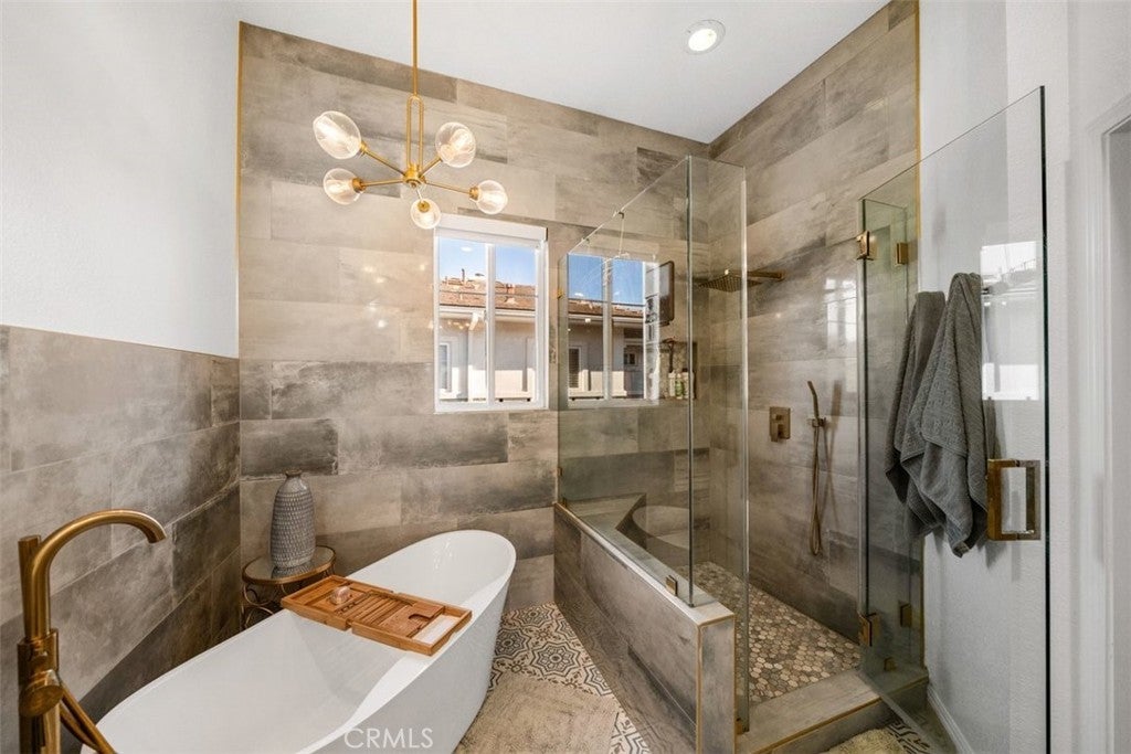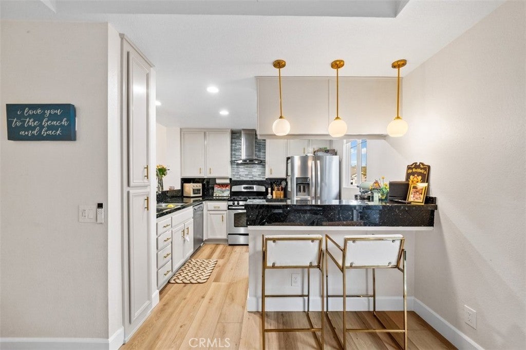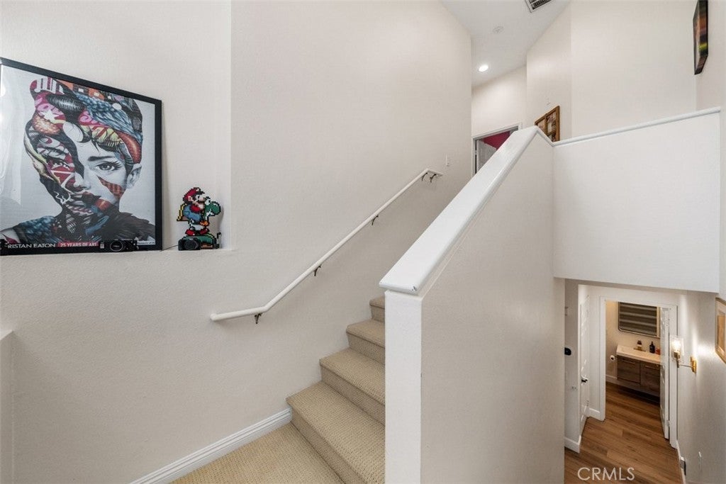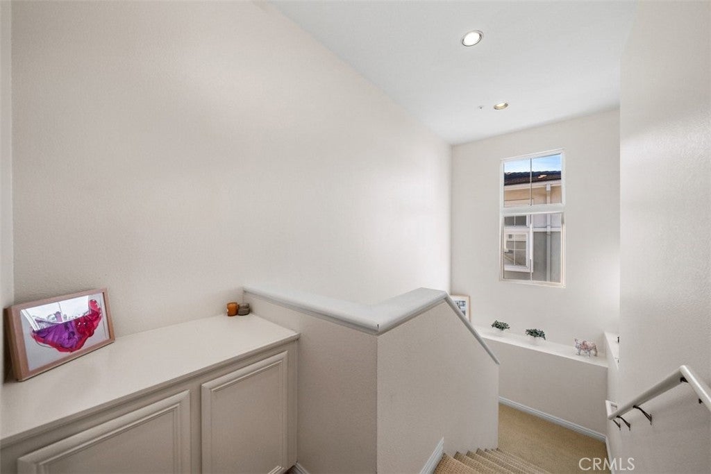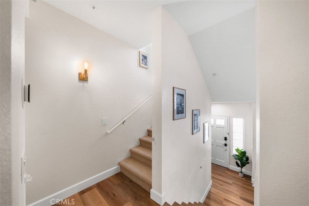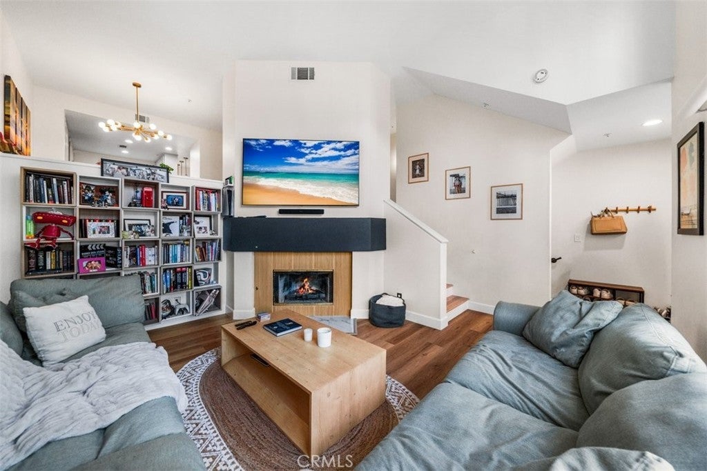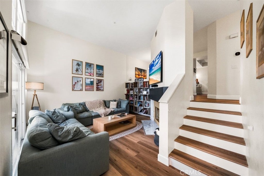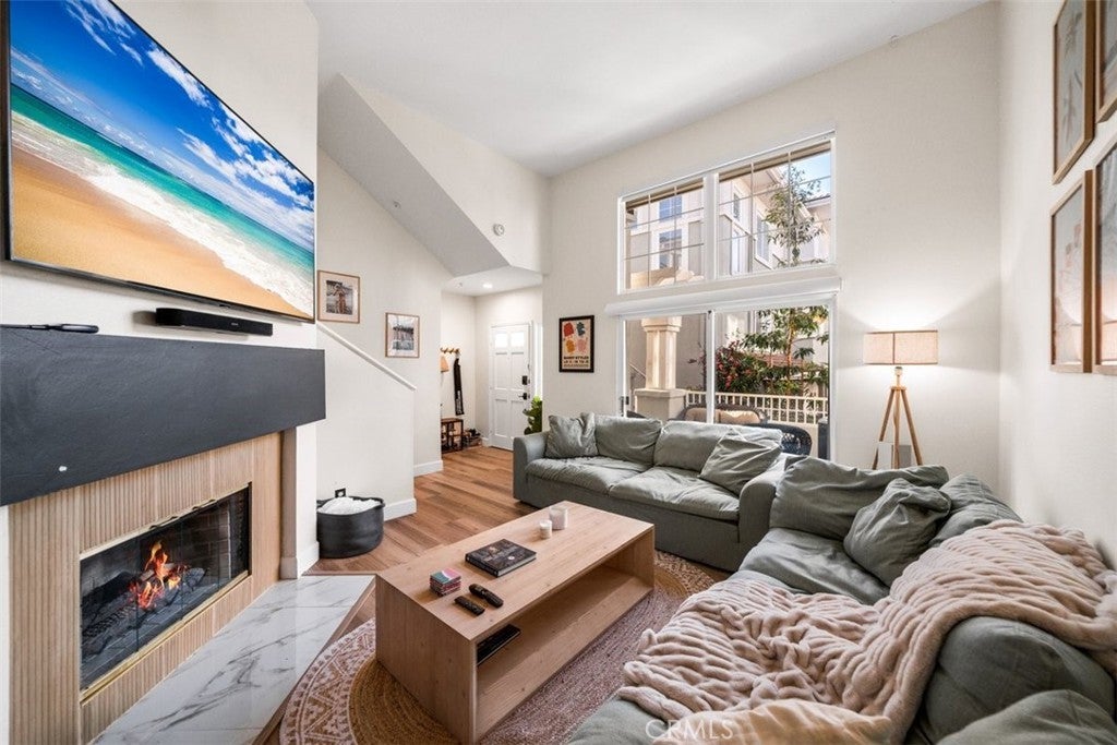 Step into refined coastal living in this fully upgraded condo, ideally located in the ocean-close community of Pacific Park Villas. Thoughtfully enhanced with modern finishes and designer touches throughout, this home effortlessly blends comfort, style, and functionality. Upon entry, you’re welcomed by a spacious living room with soaring ceilings, abundant natural light, and a cozy fireplace—creating the perfect setting for both relaxing and entertaining. Expansive windows enhance the bright, airy feel, while new hardwood flooring adds warmth and sophistication throughout the main level. The beautifully updated kitchen is a true centerpiece, featuring granite countertops, newer cabinetry, stainless steel appliances, upgraded fixtures, ample storage, and a breakfast bar for casual dining. Step outside to your private balcony—an ideal space to unwind or entertain while enjoying peaceful surroundings. Upstairs, you’ll find two generously sized en suite bedrooms, each offering comfort and privacy. The primary suite showcases a stunning, fully remodeled bathroom complete with dual sinks, a standalone soaking tub, and a spacious walk-in shower, all finished with exceptional attention to detail. Plush new carpet throughout the upper level adds an extra layer of comfort. Additional upgrades include a new AC system, remote-controlled blinds, new fixtures and finishes throughout, and an attached two-car garage with direct access, extra storage, and EV charging capability. Residents of Pacific Park Villas enjoy access to a community pool and spa, all just minutes from the beach, shopping, dining, and award-winning schools. This is a rare opportunity to own a turnkey coastal retreat with elevated design and modern conveniences.