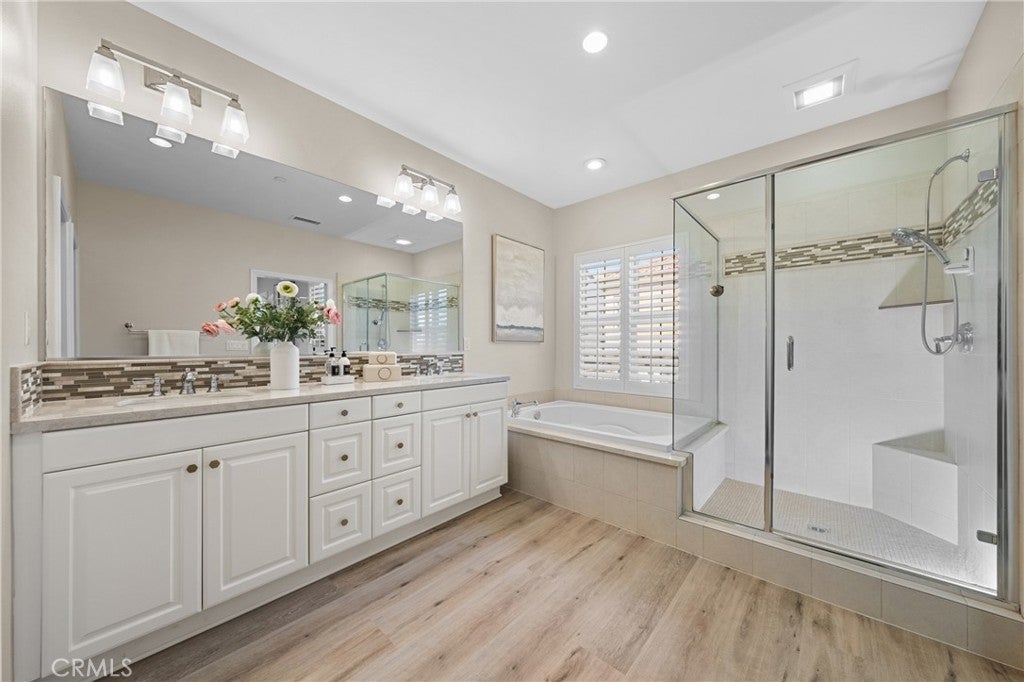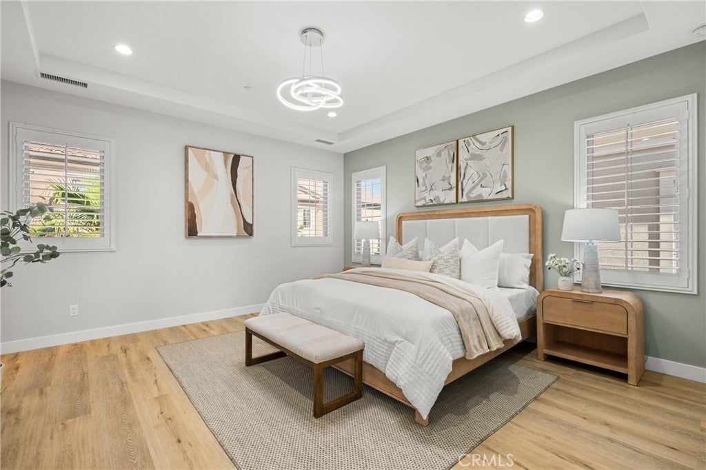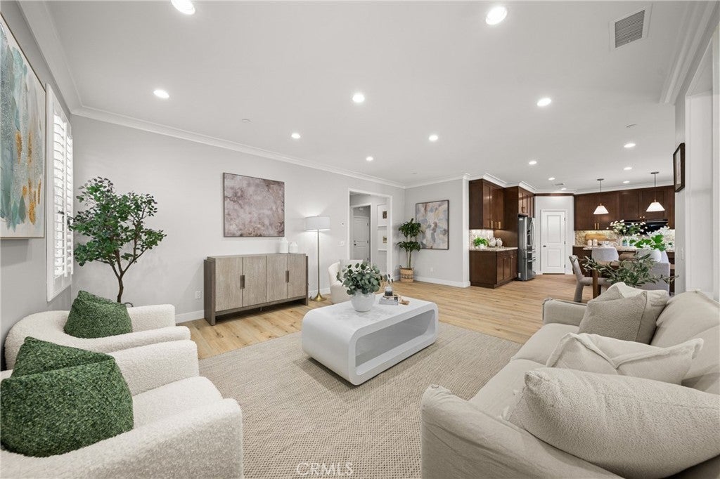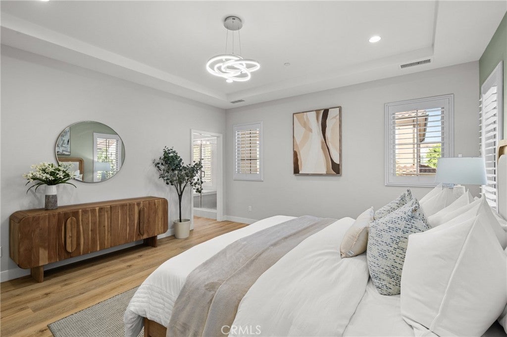 Located at the Village of Stonegate, this detached Mendocino home features a functional 4-bedroom, 4-bathroom floor plan. The residence is characterized by an open-concept layout and includes a sunroom converted into a dedicated office space, providing a quiet environment for remote work. The main level is further enhanced by a conveniently located bedroom and a full bathroom, suitable for guests or multi-generational needs. The second floor opens to a notably sized loft that serves as an ideal secondary office space, complete with a dedicated desk space for study or administrative use. Two additional secondary bedrooms are situated upstairs, each featuring its own en-suite bathroom. The primary suite includes a well-appointed bathroom with dual sinks, a soaking tub, a step-in shower, and a walk-in closet. With brand-new vinyl flooring, fresh interior paint, epoxy garage flooring, and modern lighting upgrades, this home presents a bright, like-new appearance that sets it apart from others. Beyond your doorstep, residents enjoy an exceptional location within walking distance to Stonegate Elementary School, a recipient of multiple Blue-Ribbon and California Distinguished School awards. And easy access to community amenities, including swimming pools, spas, parks, clubhouses, tennis courts, and playgrounds. This home is also served by top-rated Sierra Vista Middle School and Northwood High School. Outdoor enthusiasts will appreciate the close proximity to the Jeffrey Open Space Trail for hiking and cycling, as well as easy freeway access for a seamless commute.