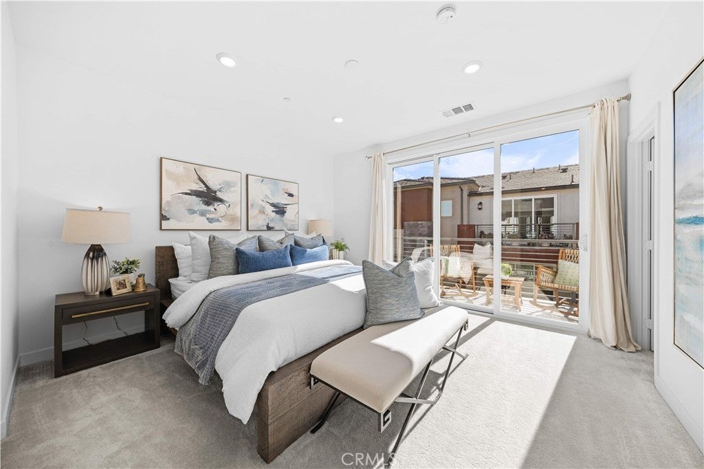Best-Priced 3-Bed Condo in Great Park! Discover this beautifully designed three-story townhome in Irvine’s coveted Great Park Neighborhoods, offering 3 bedrooms, 3.5 bathrooms, and over 2,000 square feet of bright, contemporary living space—enhanced by a fully paid-off solar system for energy efficiency and long-term savings. The entry level features a private bedroom with its own full bath, perfect for guests or a quiet home office. The main level showcases an open-concept layout where the gourmet kitchen, dining area and spacious living room connect seamlessly, enhanced by abundant natural light and a covered deck ideal for relaxed indoor-outdoor living. Upstairs, the luxurious primary suite provides a serene retreat with its own private balcony, accompanied by another well-appointed bedroom and bath. An attached two-car garage adds everyday convenience. Residents enjoy access to top-rated Irvine schools, including Solis Park K-8 and Portola High—both widely recognized for exceptional academic performance—along with nearby parks, trails, shopping and dining. This home blends modern elegance with comfort in one of Irvine’s most desirable communities.