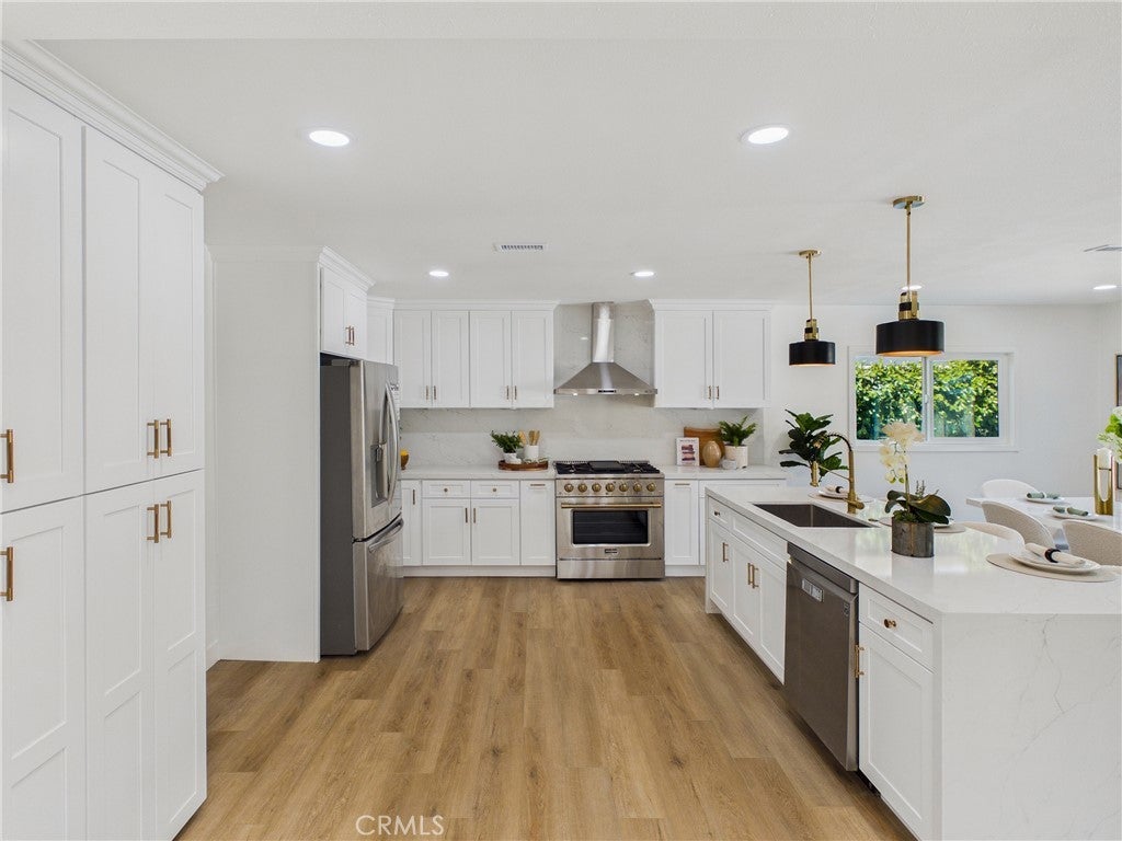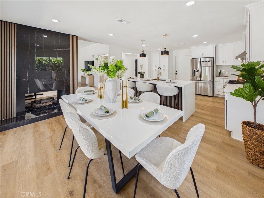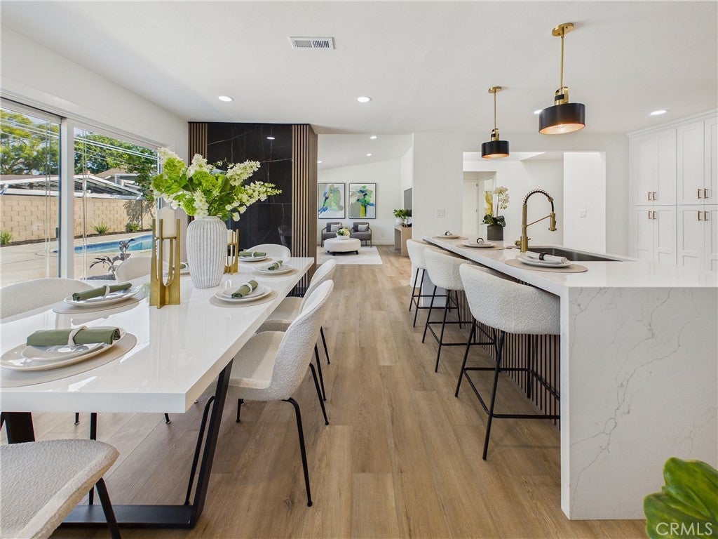 Welcome to 1547 E San Alto Place - a clean, modern, expertly renovated home that checks every box! Located in a quiet cul-de-sac within one of the cities most desirable neighborhoods, this single-level home blends thoughtful craftsmanship with contemporary touches. The home opens to a bright, flowing layout with 4 bedrooms and 2 bathrooms spanning across 1,606 square feet. Every detail has been thoughtfully reimagined. The expansive chef’s kitchen features soft-close white shaker cabinetry capped with stunning quartz countertops and a matching full-slab quartz backsplash, an oversized 6-burner range, and striking pendant lights. The oversized kitchen island houses the large vessel sink that overlooks the pass-through fireplace and sparkling pool in the backyard. The modern pass-through fireplace is a true statement piece, separating the dining area from the family room. The family room features a vaulted ceiling, and a large picture window overlooking the backyard. As you make you way down the hallway, you will find all 4 bedrooms, including the primary-suite and hallway bathroom. The primary suite features a large picture window and plenty of closet space (including a walk-in). The primary bathroom was thoughtfully designed with a double-sink vanity and an oversized shower with a ceiling-mounted rainfall shower head, a back-lit soap niche and a custom glass enclosure. The impressive hallway bathroom also features a dual sink vanity and a stylish tub/shower combination with a back-lit soap niche. Behind the walls and above the ceilings, important upgrades have been made, including a new roof, new electrical service panel, updated plumbing and a new A/C condenser unit and ducting for improved comfort and peace of mind. The sizable back yard features multiple mature citrus trees and a large patio area. The sparkling pool has updated equipment and is surrounded by tropical foliage. The home sits within very close proximity (short walk) to the Santa-Ana river trail, Eisenhower park, Olive Elementary School, shopping/dining options, and has excellent access to local freeways. This home presents a wide range of options, opportunities and amenities that are difficult to find anywhere else in Orange County.
