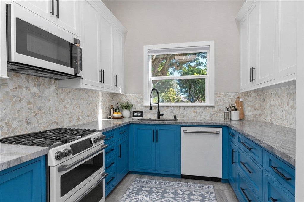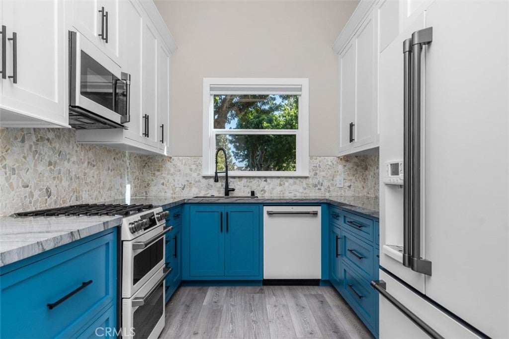 Welcome to 4482 Shorebird Drive—a rare opportunity to own a fully remodeled coastal condo in Huntington Harbour at an incredible price point, paired with exceptionally low HOA dues for the area. Just a 10-minute bike ride to the beach, this turnkey 2-bedroom, 2-bath home offers the ultimate Huntington Beach lifestyle, ideally located near Davenport and Humboldt beaches, Harbour View Elementary, and the Trader Joe’s shopping center—putting everyday convenience and coastal living right at your doorstep. Inside, the home has been completely reimagined with high-end designer finishes, featuring soaring vaulted ceilings, engineered hardwood flooring, and all-new windows and doors (2024) that flood the space with natural light. The open-concept layout creates effortless flow between the living, dining, and kitchen areas—perfect for both everyday living and entertaining. The chef’s kitchen is a true standout, showcasing GE Café smart appliances (2022), including a gas range, double oven, wine refrigerator, and dishwasher, complemented by custom soft-close cabinetry and stunning Brazilian Quartzite countertops. The primary suite offers a private retreat with a spa-inspired bathroom, heated floors, a multi-head shower, and custom cedar-lined closets. Additional upgrades include a Nest HVAC system (2021), motorized blinds, upgraded insulation, and thoughtful details throughout that elevate both comfort and efficiency. Set within an intimate 21-unit community, residents enjoy access to a pool, spa, clubhouse, gated dog park, and two garage spaces—all while benefiting from one of the lowest HOA dues in Huntington Harbour, making this home an exceptional value in a highly sought-after coastal location. If you’ve been waiting for a move-in ready home in Huntington Harbour at a compelling price, this is the one that checks every box.