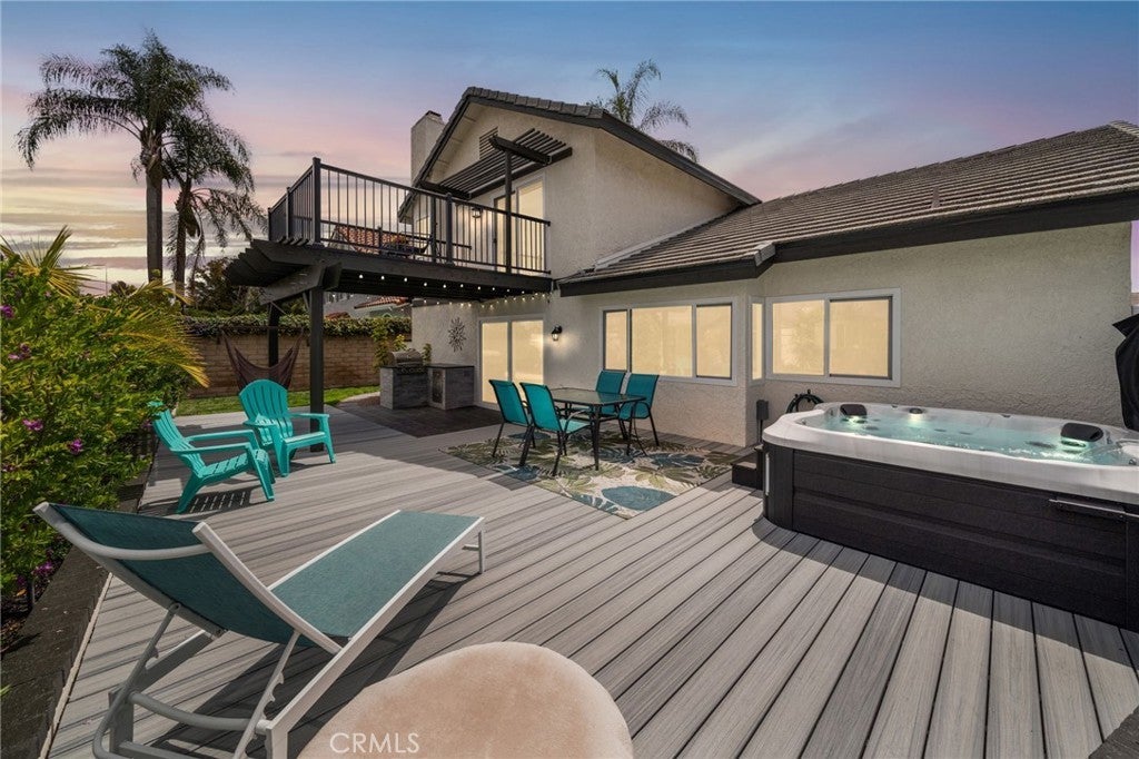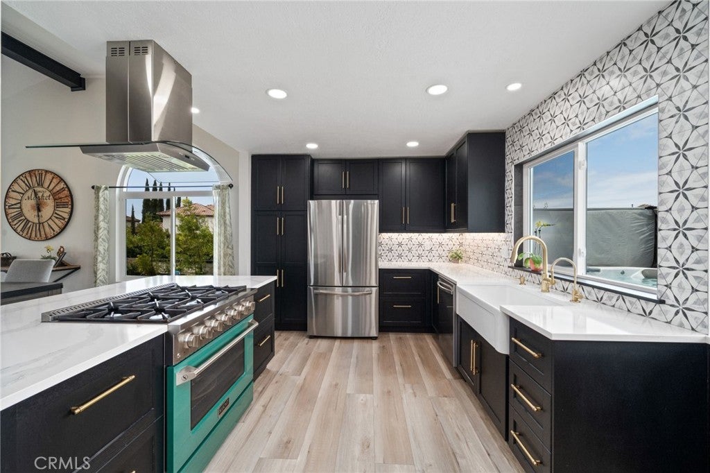 Modern View Home with Designer Finishes & Resort-Style Outdoor Living! Experience elevated living in this extensively upgraded four-bedroom, three-bath residence, ideally situated in a highly desirable and well-connected neighborhood. Thoughtfully renovated from top to bottom, this two-story home seamlessly blends modern design, functionality, and comfort. Step inside to a bright, open-concept layout highlighted by soaring vaulted ceilings, expansive new windows, new flooring throughout, and all-new lighting that creates a warm and inviting ambiance. The spacious living and dining areas are designed for both effortless entertaining and everyday living. The fully reimagined kitchen is the heart of the home, featuring a stunning open-concept design with new custom cabinetry, updated countertops, designer backsplash, a large center island with seating, and brand-new stainless steel appliances—perfect for gathering and hosting. All three bathrooms have been beautifully renovated with high-end finishes, offering a clean, modern aesthetic. The primary suite serves as a private retreat, complete with a walk-in closet, and direct access to a balcony showcasing sweeping mountain and city light views. Outdoor living is taken to the next level with newly added front porch and backyard patio/deck spaces, ideal for relaxing or entertaining. Enjoy resort-style amenities including a built-in outdoor gas grill and a private hot tub, all surrounded by a low-maintenance PVC fence for added privacy. This home also features major system and structural upgrades, including a new roof, full repipe, new garage doors, and a security system for peace of mind. The three-car garage has been enhanced with an upgraded finished floor coating and built-in storage cabinets, offering both functionality and style. Additional highlights include a cozy family room with a gas fireplace, a dedicated laundry room, and a full sprinkler system. Every detail has been carefully considered, making this home truly move-in ready. With close proximity to dining, parks, and everyday conveniences, this turnkey property offers the perfect combination of luxury, comfort, and location. A rare opportunity you won’t want to miss—schedule your private showing today!