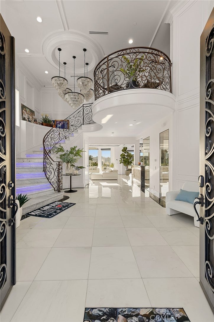 - Interior FeaturesBreakfast Bar, Built-in Features, Balcony, Breakfast Area, Crown Molding, Separate/Formal Dining Room, High Ceilings, Open Floorplan, Pantry, Recessed Lighting, Wired for Data, Bar, Wired for Sound, Bedroom on Main Level, Dressing Area, Entrance Foyer, Primary Suite, Walk-In Closet(s), Coffered Ceiling(s), Wine Cellar