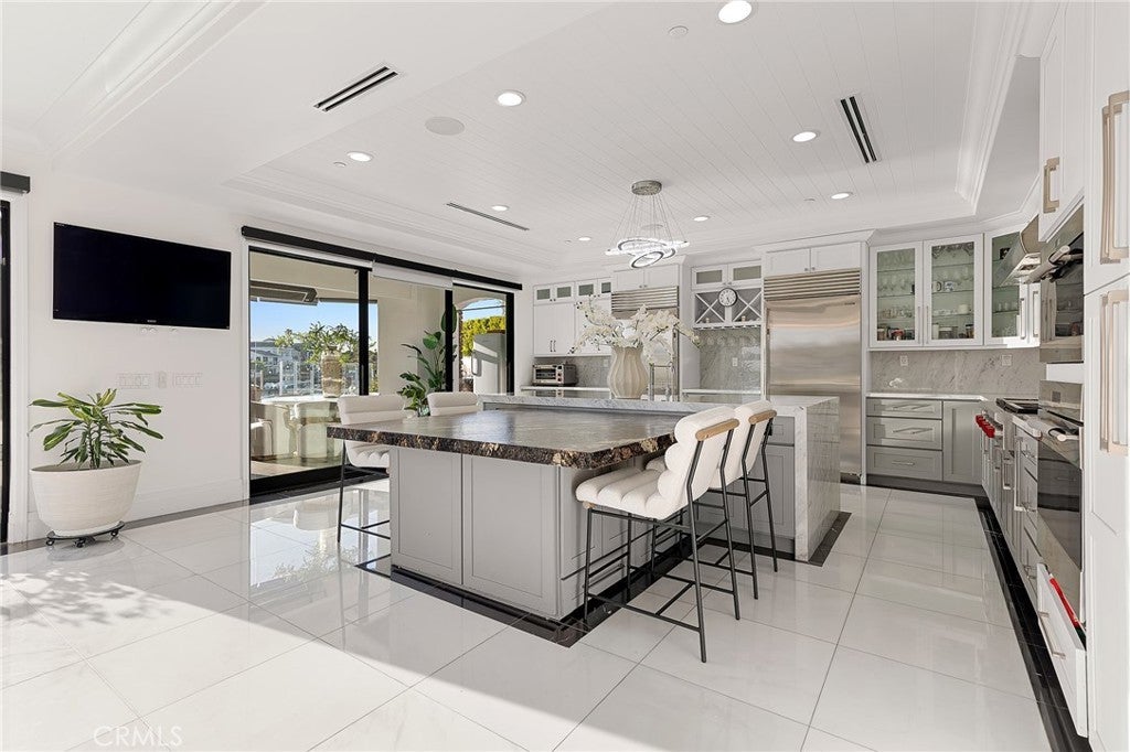 Set in Coral Cay - Huntington Harbour’s most coveted 24-hour guard-gated enclave of just over 100 properties. This contemporary waterfront masterpiece redefines luxury living. Completely rebuilt in 2021, the approximately 4,800-square-foot residence blends modern sophistication with California Mediterranean warmth. It is perfectly situated on a premier 7,200-square-foot parcel, offering captivating bay views, dazzling nighttime lights, and spectacular south-westerly sunsets. Designed for both lavish entertaining and serene everyday living, the meticulously crafted floor plan features five bedrooms—including two spectacular waterfront primary suites—and 6.5 spa-inspired bathrooms. Oversized windows and walls of glass flood the interiors with natural light, highlighting exquisite finishes like imported stone, custom ceiling designs, and designer lighting. The chef's kitchen is fully equipped with top-tier Wolf, Bosch, and Sub-Zero appliances, complemented by a spacious, dedicated wine room. The outdoor living spaces are an effortless extension of the home. Boasting a rare 103 feet of water frontage, the exterior features an expansive water-level terrace, an elevated terrace off the bonus room, three balconies, and a glass-enclosed sunroom. Boaters will relish the exceptional private dock, capable of accommodating an 85-foot vessel. Residents of Coral Cay enjoy exclusive access to lush greenbelts, lighted tennis and pickleball courts, and a private beach. This exquisite home is a rare opportunity to enjoy the ultimate waterfront lifestyle, just minutes from Southern California’s premier dining, shopping, and recreation.