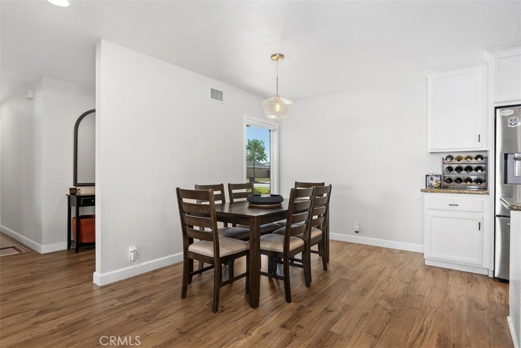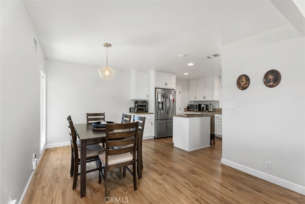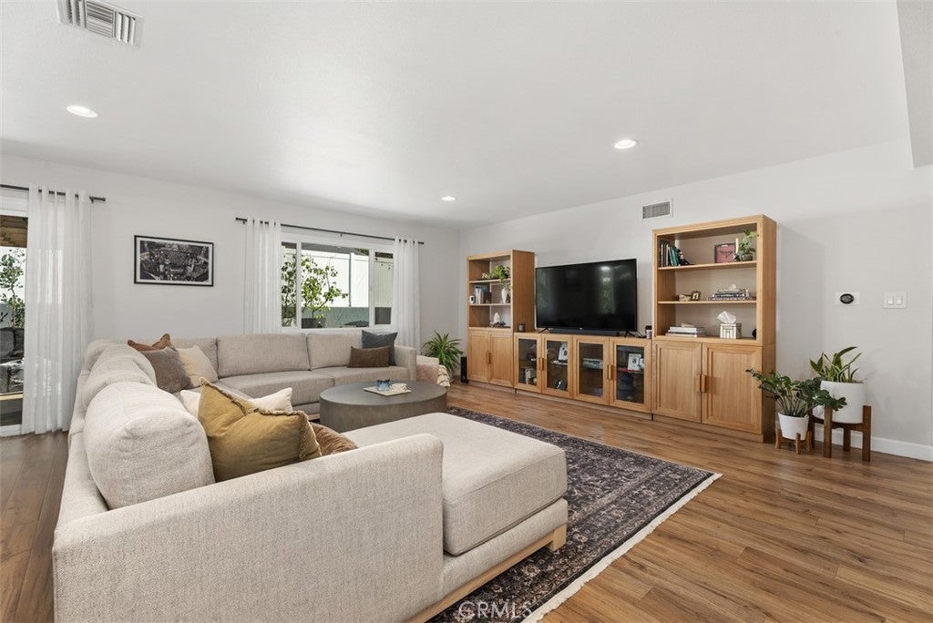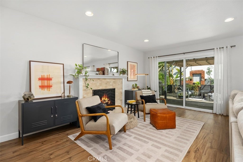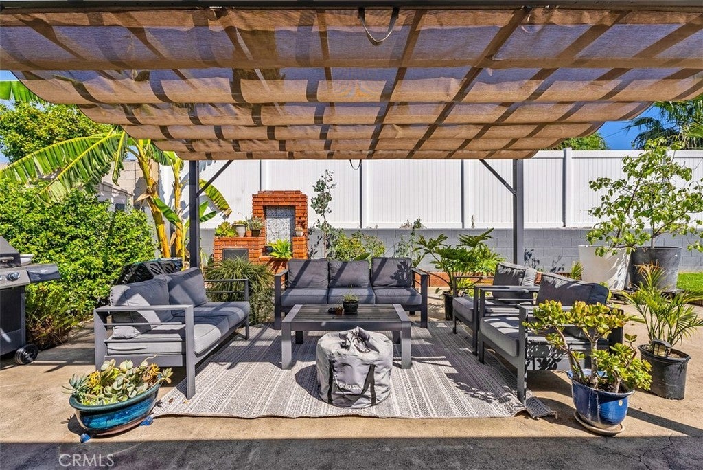 Beautifully updated single-level home showcasing an open-concept layout and thoughtfully curated finishes throughout. From the charming curb appeal—highlighted by a wood-grain garage door and custom window box planters—to the stylish interior details, this home blends comfort and design effortlessly. Inside, the light-filled living room offers a warm and inviting space with recessed lighting, custom window coverings, a cozy fireplace, and seamless access to the backyard—perfect for both relaxing and entertaining. The adjacent kitchen and dining area are designed for everyday living, featuring stainless steel appliances, a slide-in dual oven, French door refrigerator, granite countertops, a center island, and additional peninsula seating. The spacious primary suite serves as a private retreat with an ensuite bath showcasing dual sinks, a walk-in shower, and tasteful farmhouse-inspired finishes. Secondary bedrooms are generously sized and share a beautifully remodeled hall bathroom with updated fixtures and stylish tile flooring. Step outside to a peaceful backyard complete with a covered pergola, expansive patio, grassy area, raised garden beds, and block wall fencing—offering both privacy and functionality. This home delivers the perfect blend of style, comfort, and livability.