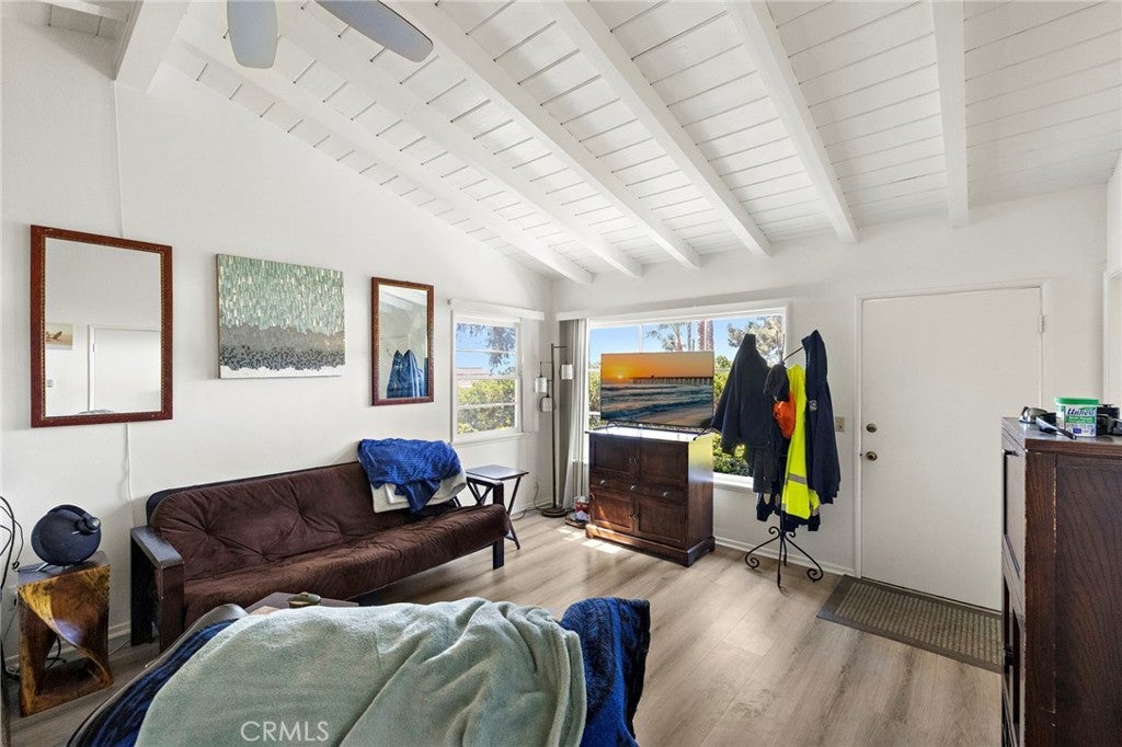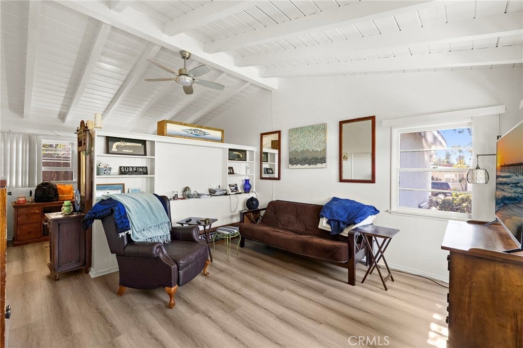 A very desirable duplex in the sought-after ‘Trestles District’ of Southeast San Clemente, this beachy single-level charmer occupies a special location within the neighborhood. Sited at the crest of the natural hilltop where ocean views are the most favorable (especially with a second level addition), this quintessential beach house sits near the Municipal Golf Course in the most desired location in Trestles District - outside the golf ball zone and distant from the freeway. Offering two identical one bedroom, one bathroom units with separate utilities, it’s the perfect investment property or home for an end user with some supplemental income. Flexibility to rent if/when needed with the secondary unit - a rare find for an income property being so ideally located. Recently updated in the front unit with new paint and new flooring, this unit offers vaulted white wood-beamed ceilings, a galley kitchen with retro-tiled counters, dishwasher, refrigerator, and newer gas range. This unit offers an original full bathroom and also includes a stackable laundry machine within the unit. The rear unit is an identical floor plan and mirrors the front unit, although much more original (no laundry). The rear unit features a slider door to a rear private patio. These units are unique in the way they lay out with one pony wall dividing the living to bedroom with ascending beamed ceilings spanning the full length of the space. This design gives a dramatic feeling to the size of each unit. Each apartment has separate access and its own one-car garage. From the driveway, there are peek ocean views to the south. With a second level addition, ocean views would be spectacular. Just a quick bike ride or hike to world-class surfing at Trestles nearby, golfing nearby at Municipal Golf Course, new shopping & eatery at the popular local Primos market, hiking/biking trails, walkable to highly-acclaimed Concordia Elementary and the 2.5 beach trail nearby, this home offers locals' favorite lifestyle amenities south San Clemente has to offer.