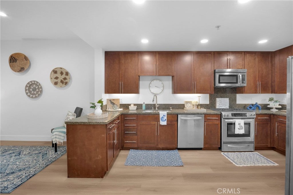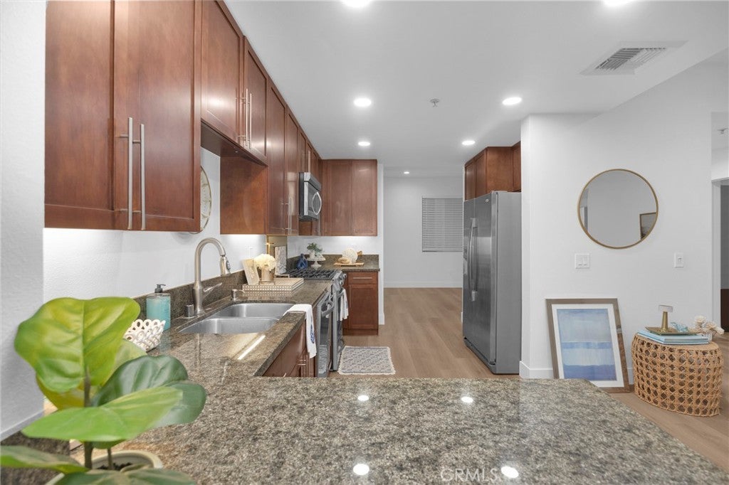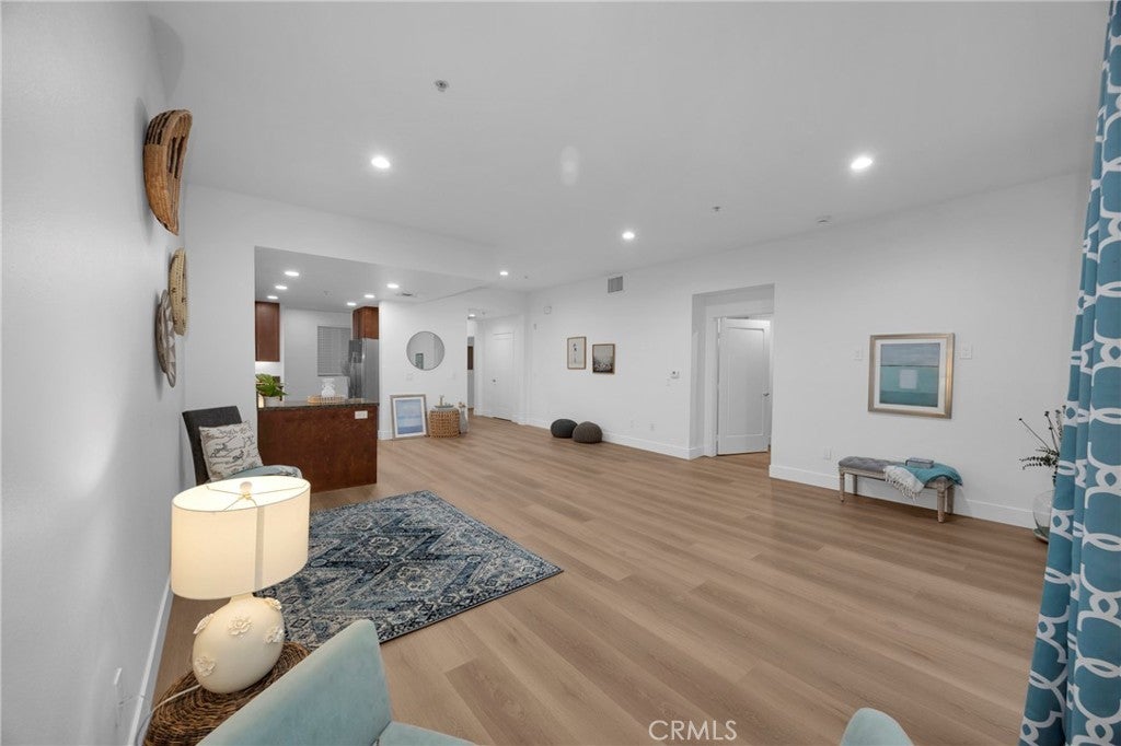 Welcome to Blu, a highly sought-after condominium community in the vibrant East Village Arts District in Downtown Long Beach. This spacious 2-bedroom, 2-bath condo plus office (optional 3rd bedroom) offers approximately 1,450 square feet of living space, a private patio, and beautiful upgrades throughout. The open-concept floor plan features a bright living area and a large kitchen with granite countertops, stainless steel appliances, and ample cabinet space, perfect for everyday living and entertaining. A bonus flex space off the kitchen is ideal for a home office, den, or additional sitting area. Recent upgrades include brand new luxury vinyl flooring, fresh paint throughout, recessed lighting, updated electrical outlets, and ceiling fans in the bedrooms. The primary suite features a walk-in closet and en-suite bathroom, while the second bedroom is generously sized and located near the second bathroom with a shower/tub combination. Additional features include in-unit laundry and two secure side-by-side underground parking spaces. Blu offers resort-style amenities including a courtyard with fireplace seating, BBQ area, putting green, outdoor lounge areas, fitness center, and a billiards club room/lounge with bar, pool table, TVs, and ample seating. Located just minutes from restaurants, shopping, entertainment, and the beach, this home offers the best of Downtown Long Beach living.